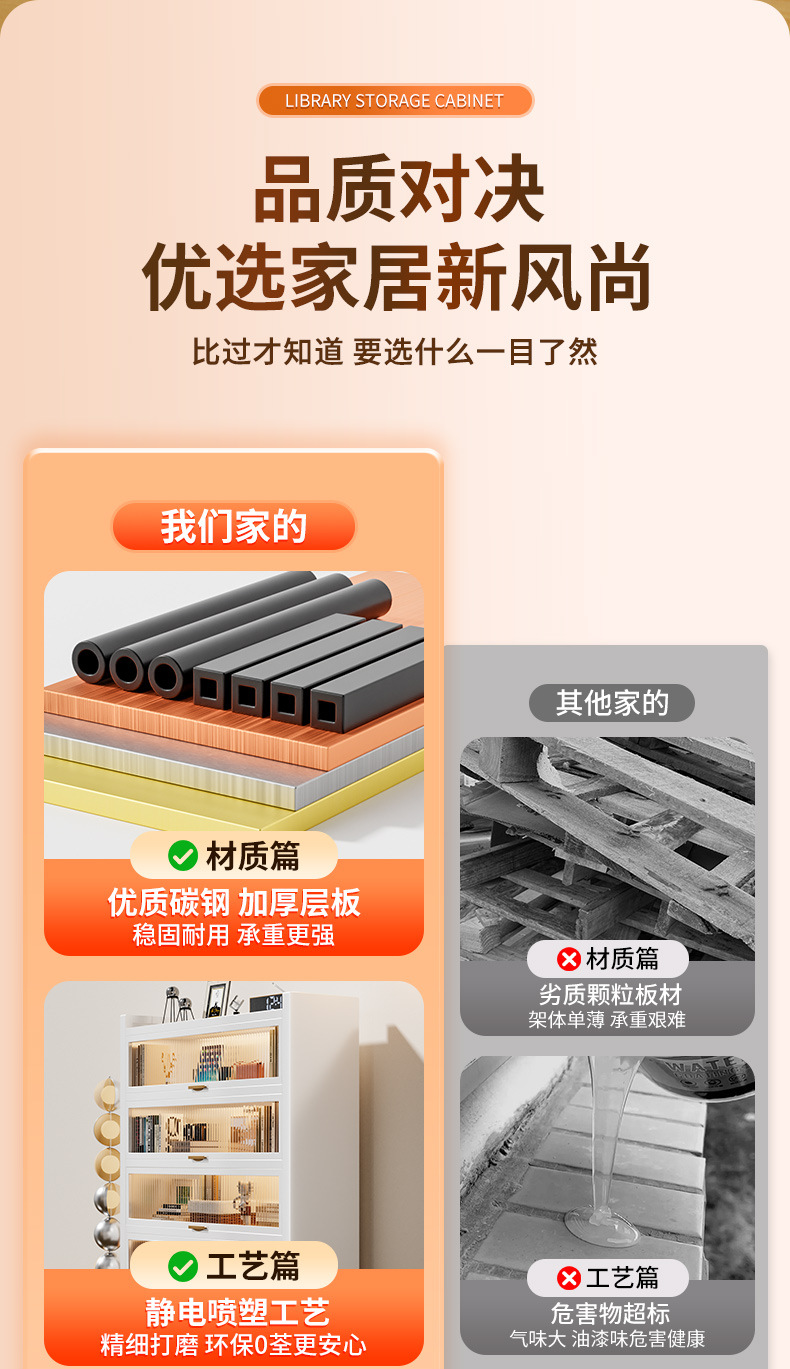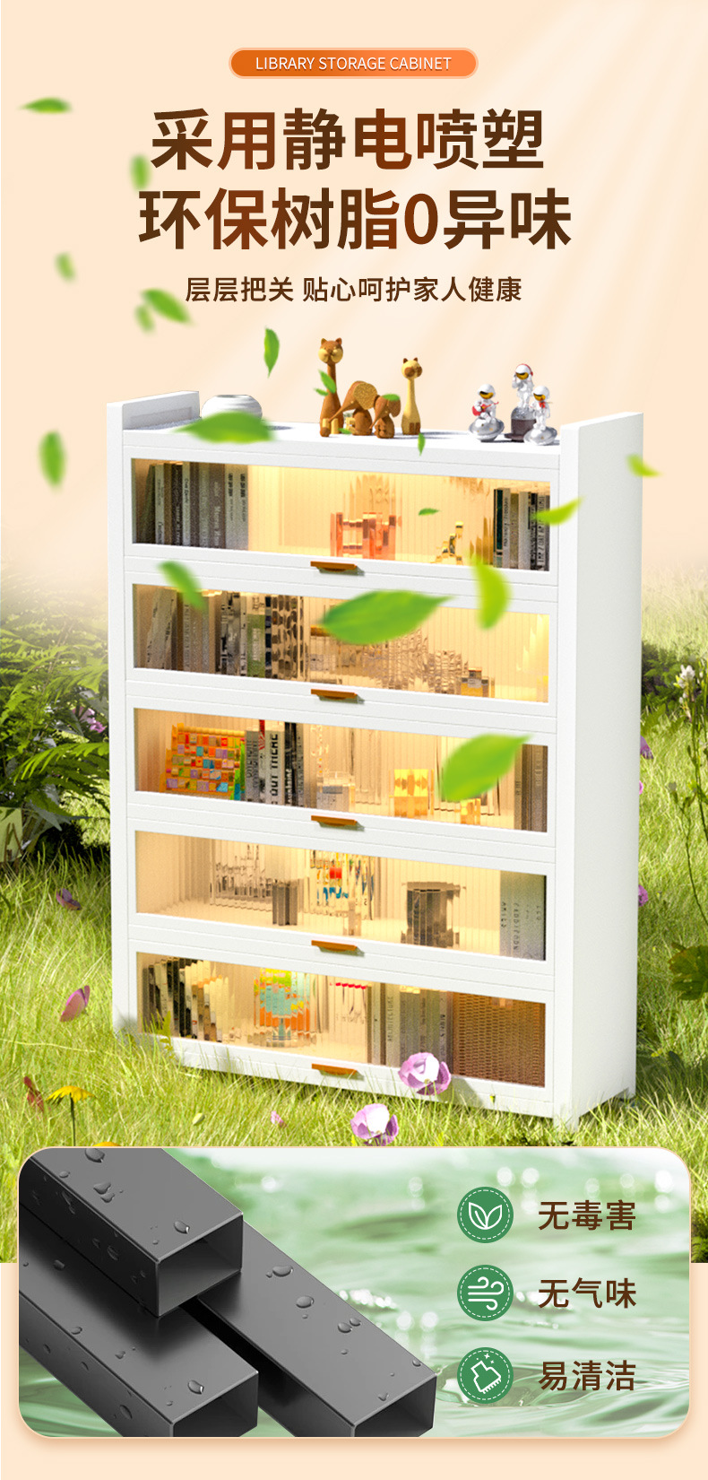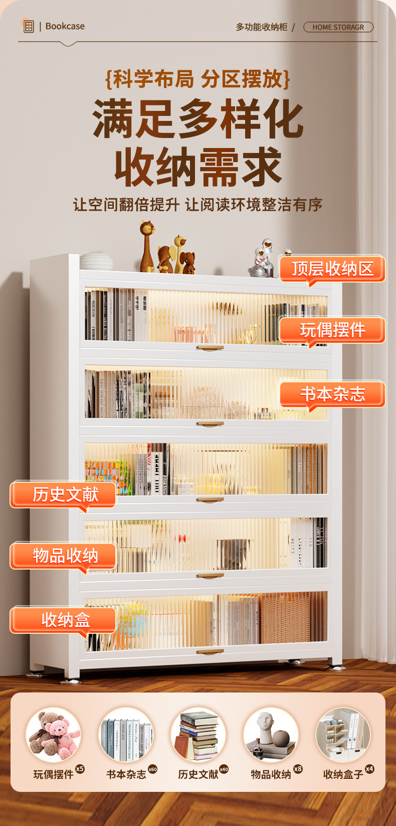 书架桌面置物架家用客厅防尘儿童书柜落地储物柜一体简易展示柜子