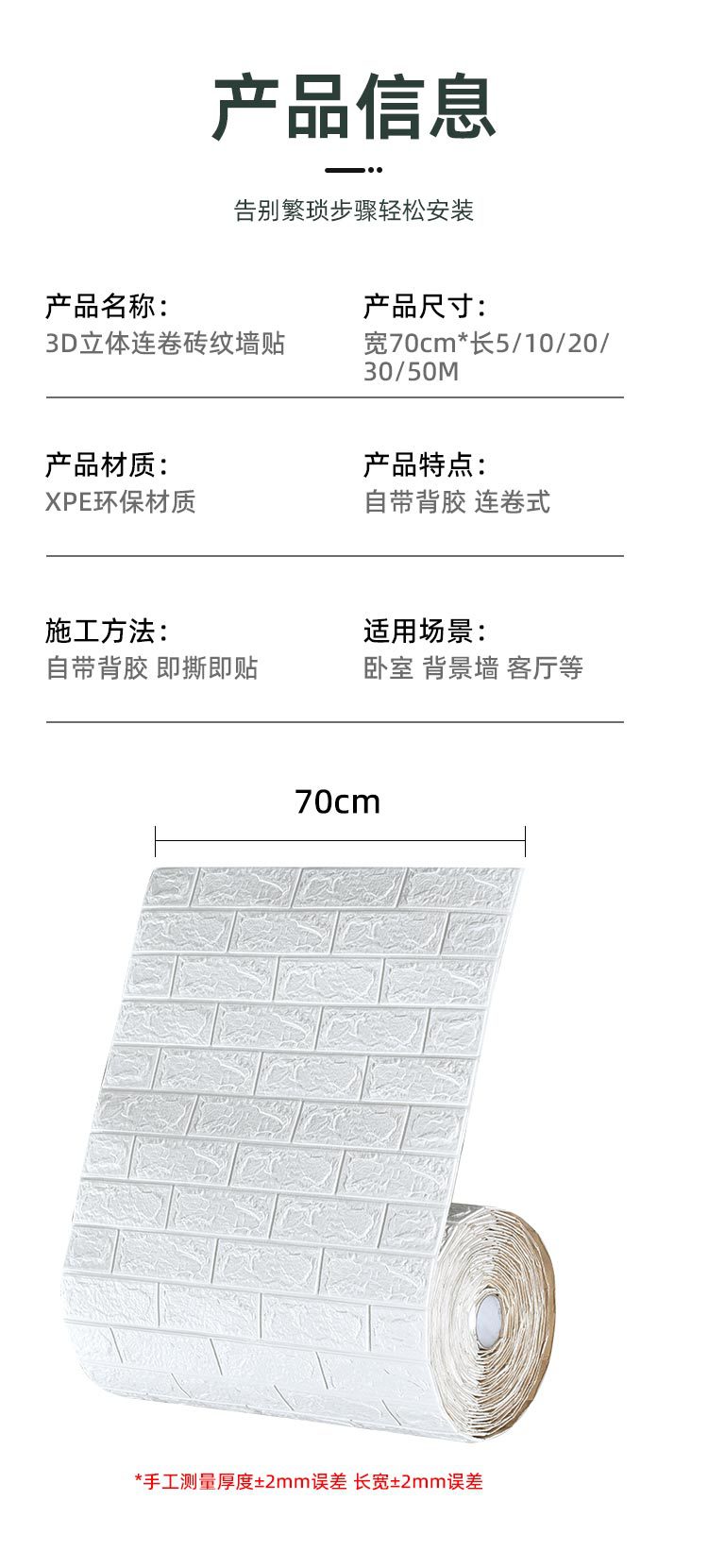 墙纸自粘3d立体墙贴出租房墙壁纸墙面宿舍装饰掉灰防水防潮可擦洗