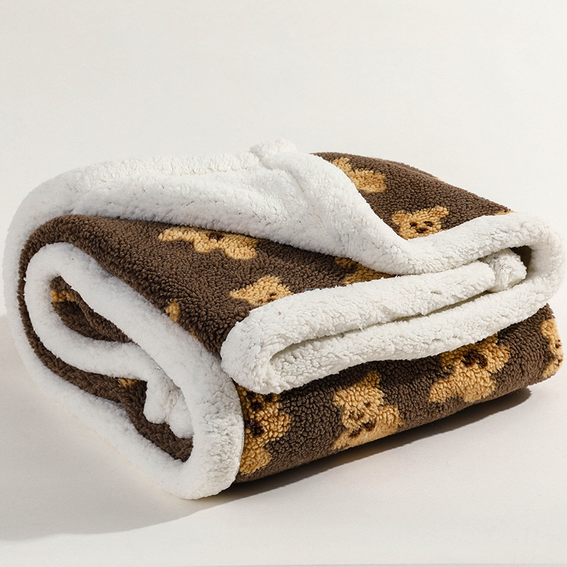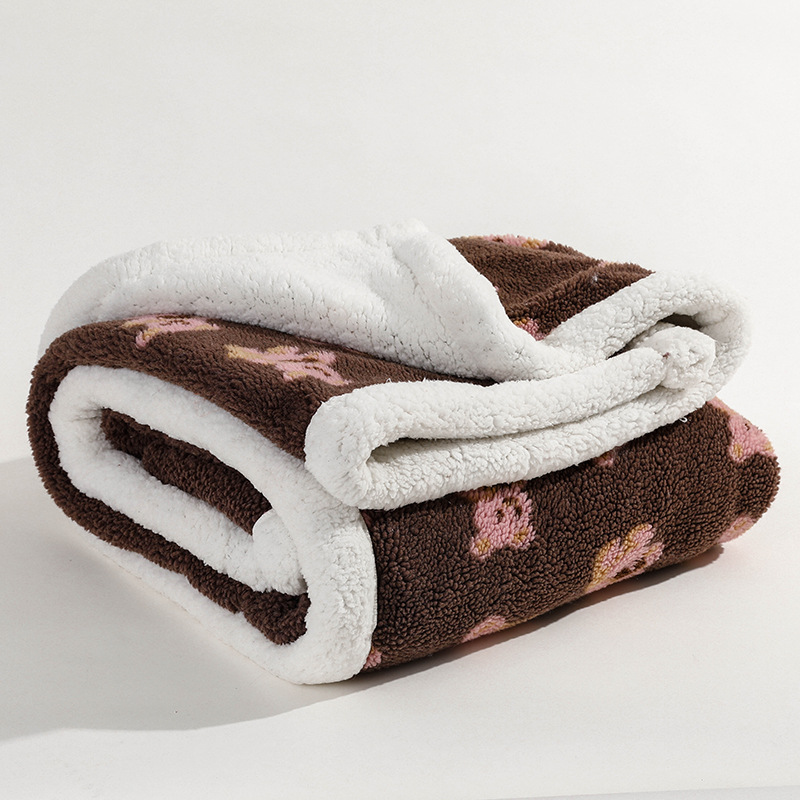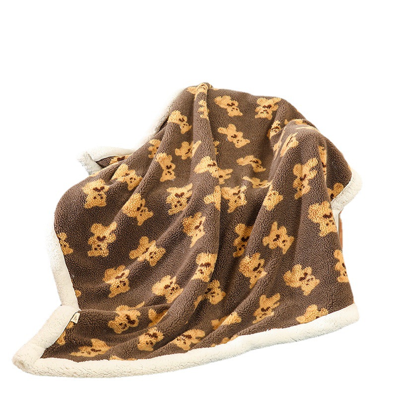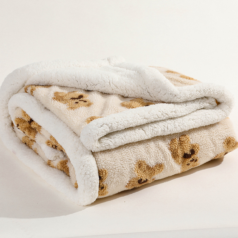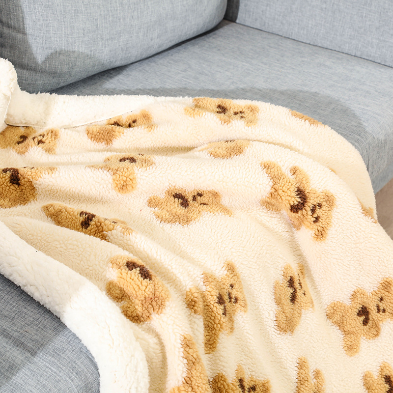 【跨境新款】颗粒羊绒小熊印花毛毯羊羔绒双层保暖盖毯沙发毯现货
