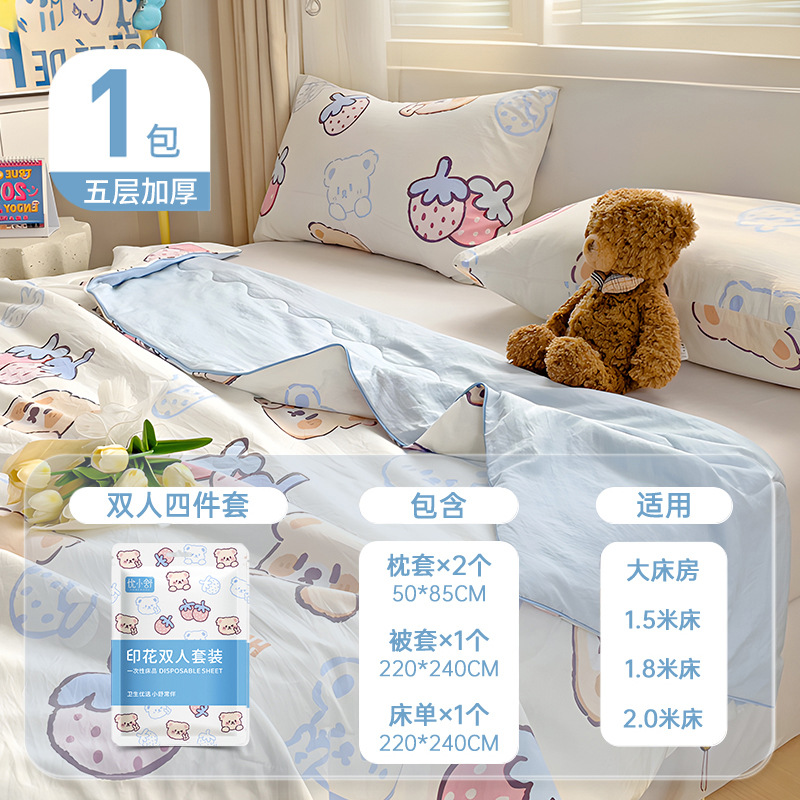 酒店一次性床单被罩枕套被套四件套旅行出差压缩便携宾馆床上用品