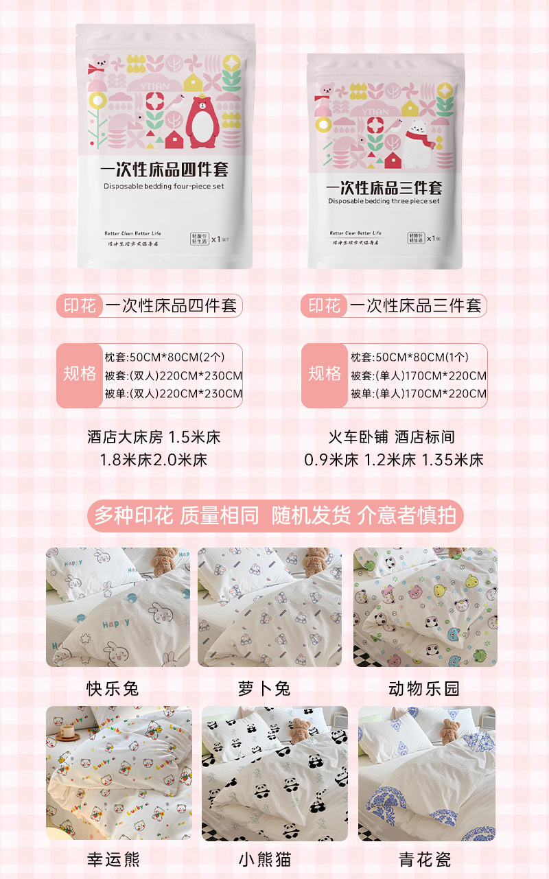 一次性旅行床单被罩枕套被套火车卧铺加厚印花三四件套酒店双人