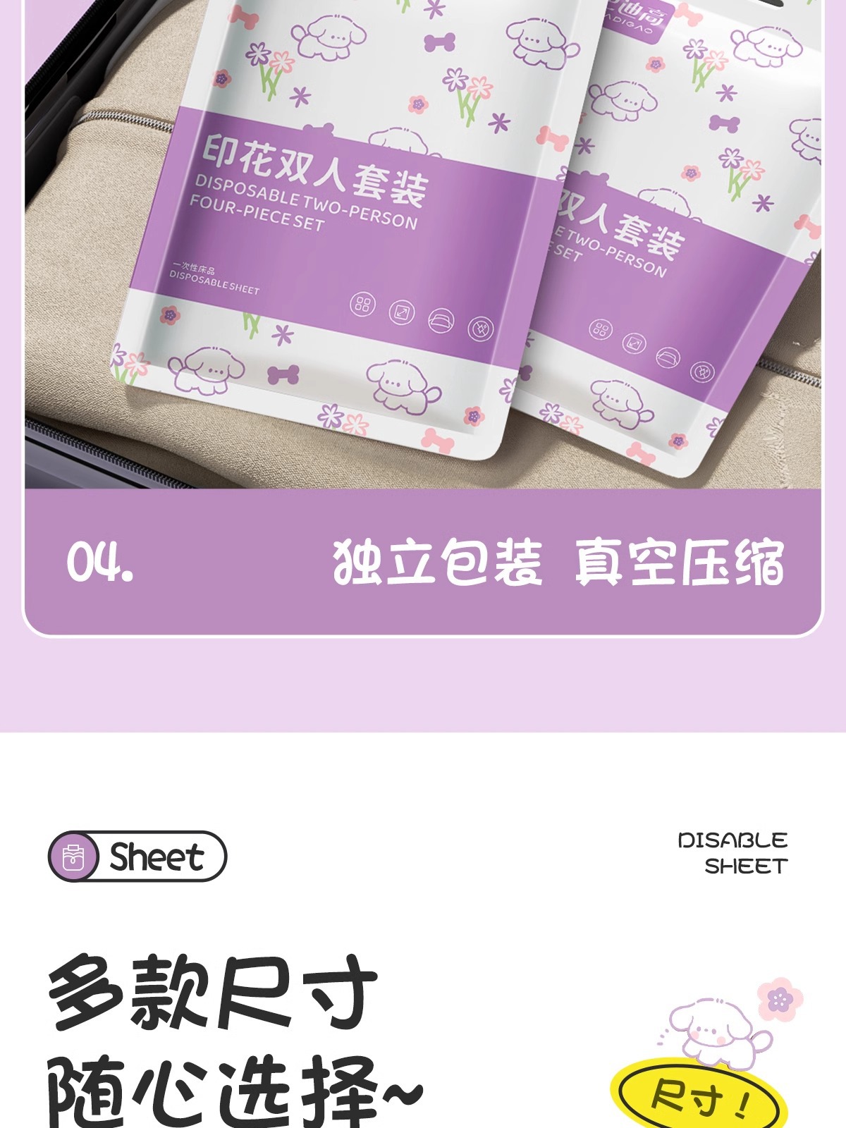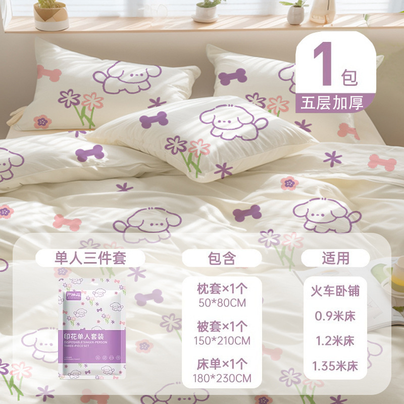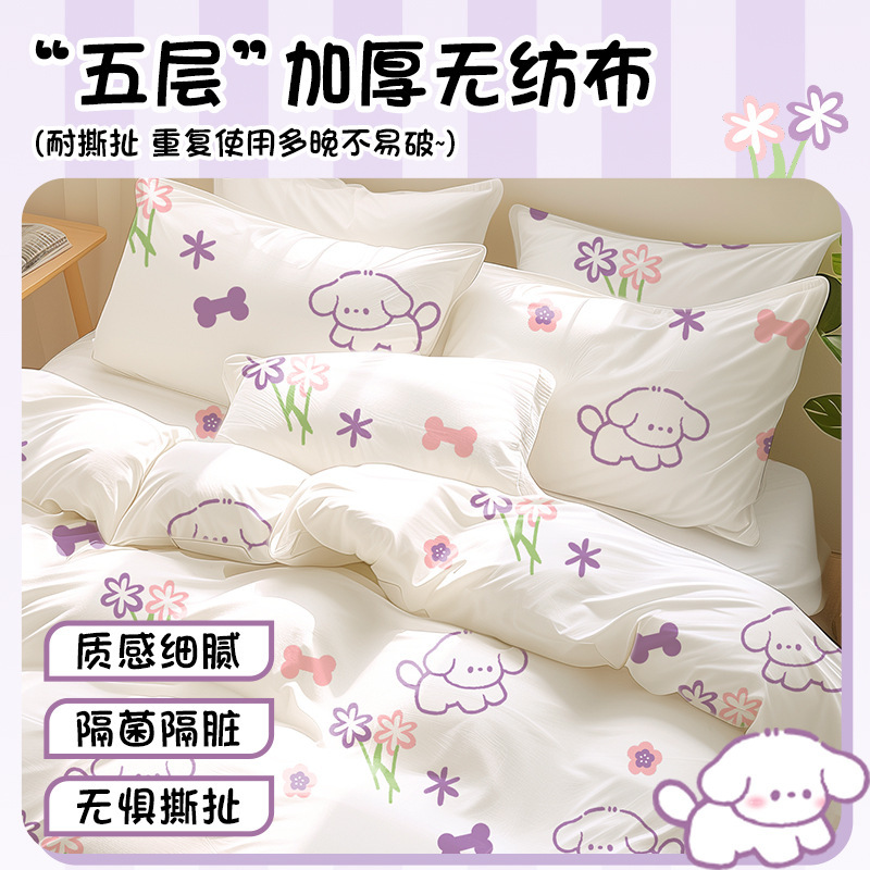 巴迪高一次性床单被罩枕套旅行游酒店四件套床上用品加厚隔脏便携