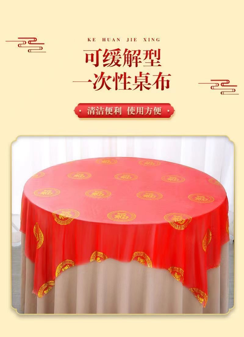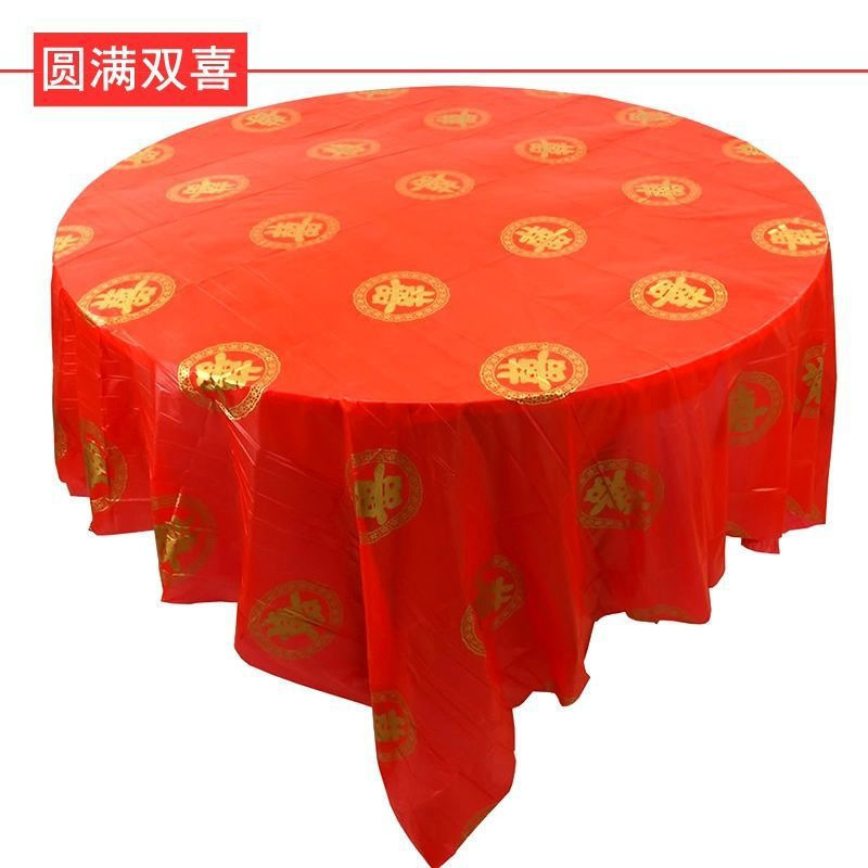结婚加厚一次性塑料台布喜庆字婚宴喜庆喜事酒席红色礼庆方圆桌布