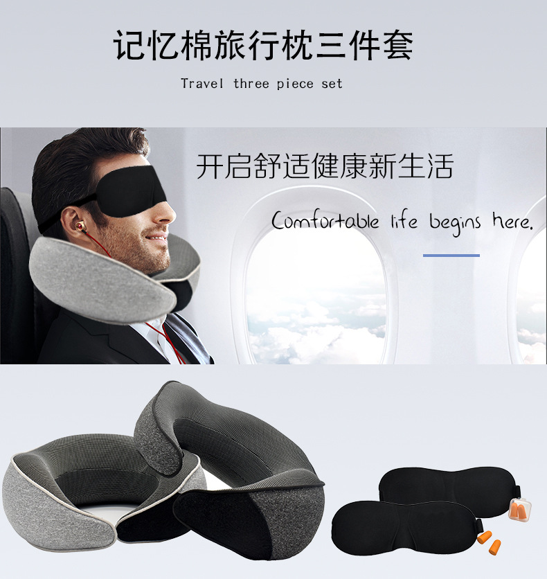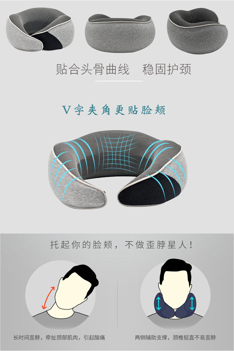 跨境热销u型枕慢回弹记忆棉午休睡觉旅行枕柔软亲肤u型护颈枕批发