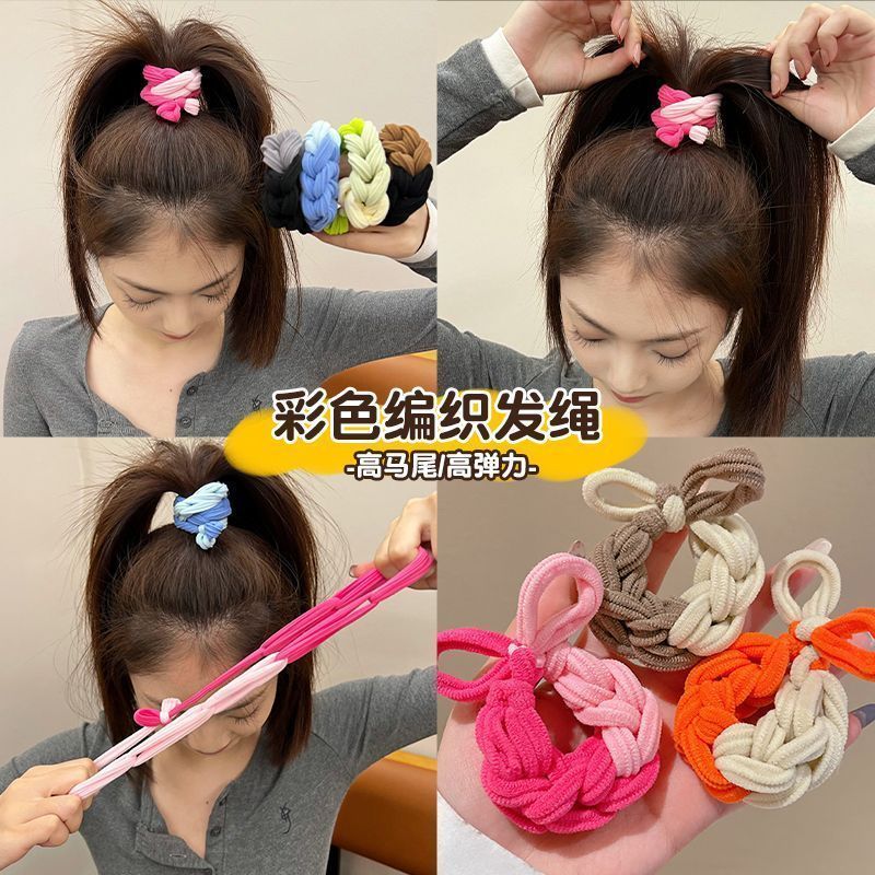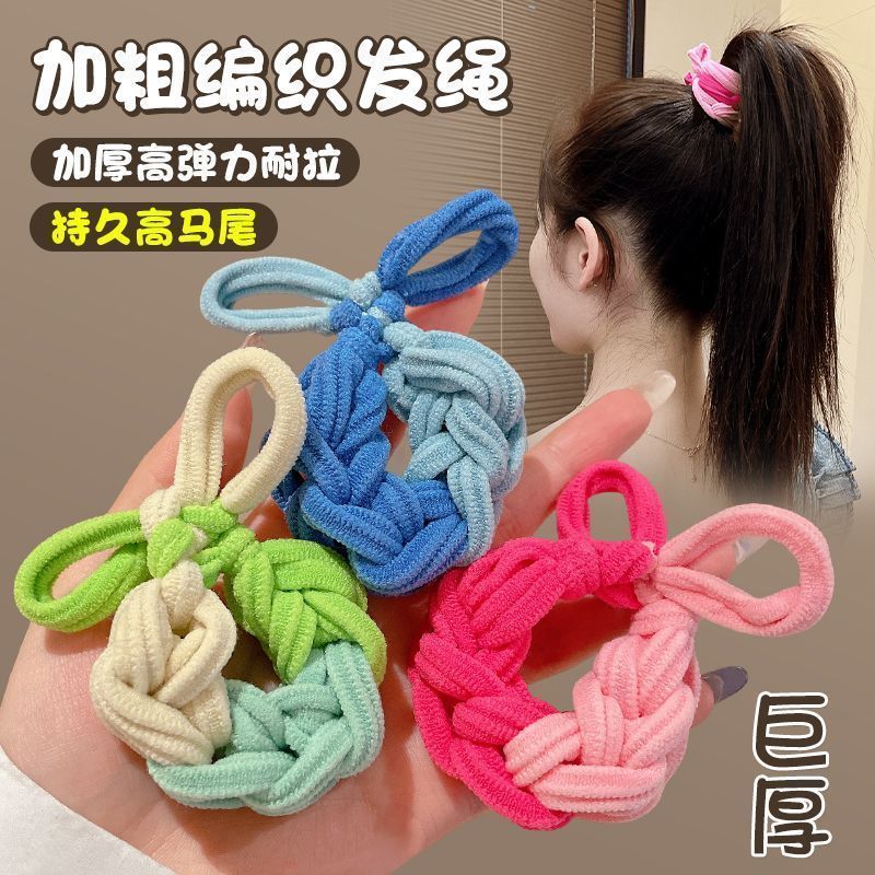 彩色编织加粗高弹力发绳耐用高马尾通勤必备2024新款百搭皮筋头饰
