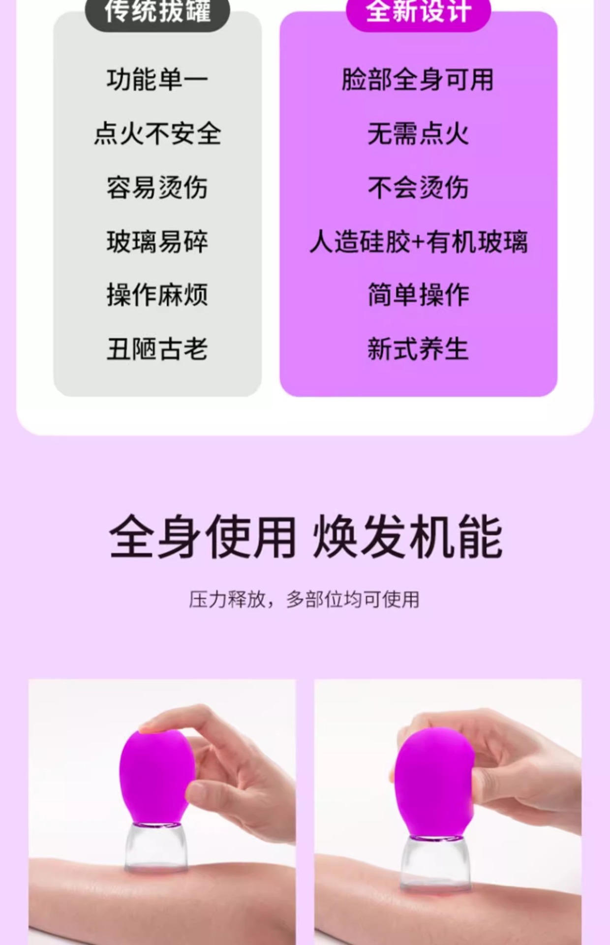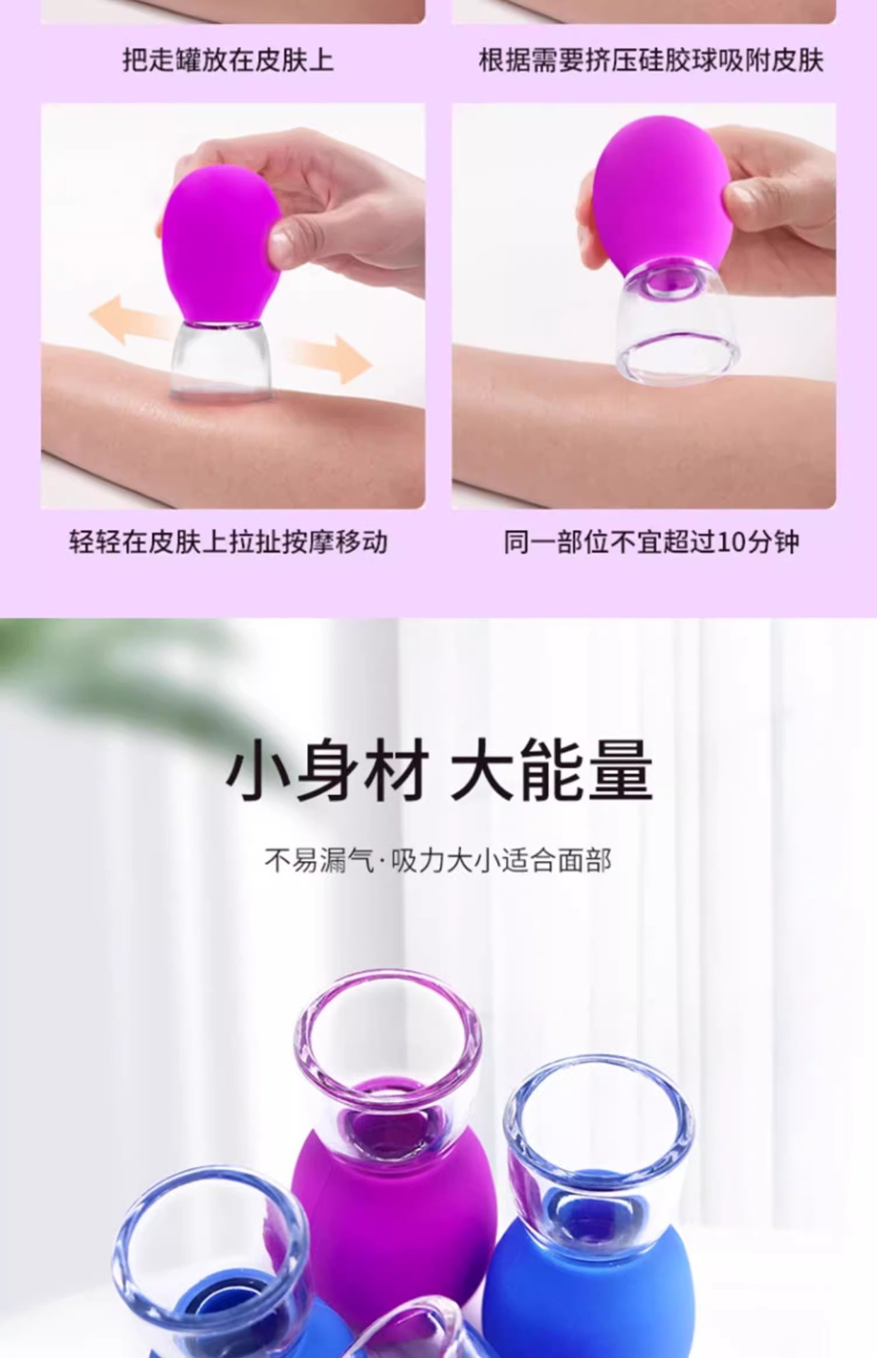 面部走罐器提升脸部拨筋提拉拔罐按摩经络疏通硅胶真空杯刮痧美容