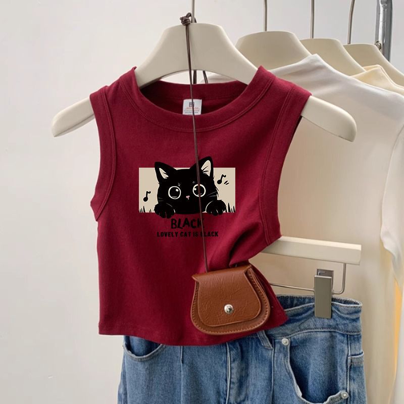又甜又辣短款背心女百搭新款辣妹酒红色设计感独特别致小上衣吊带