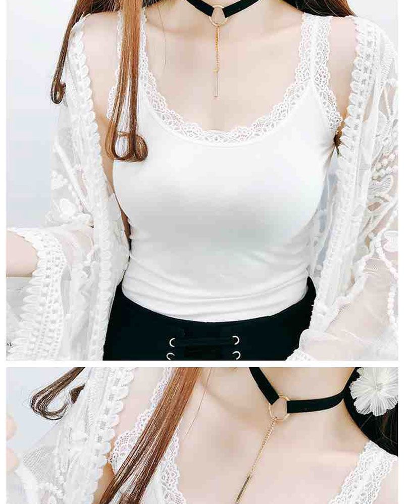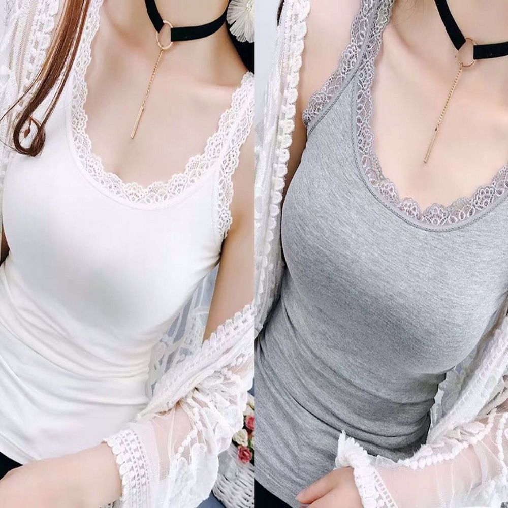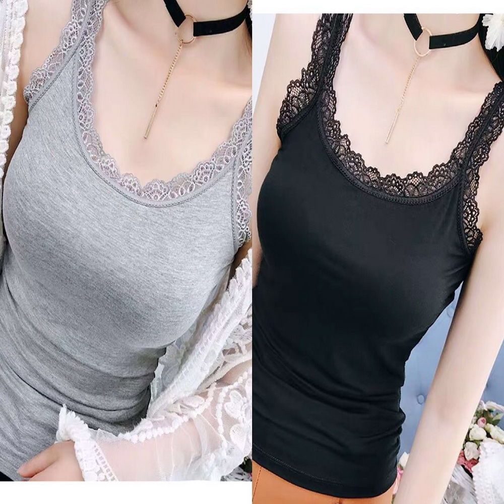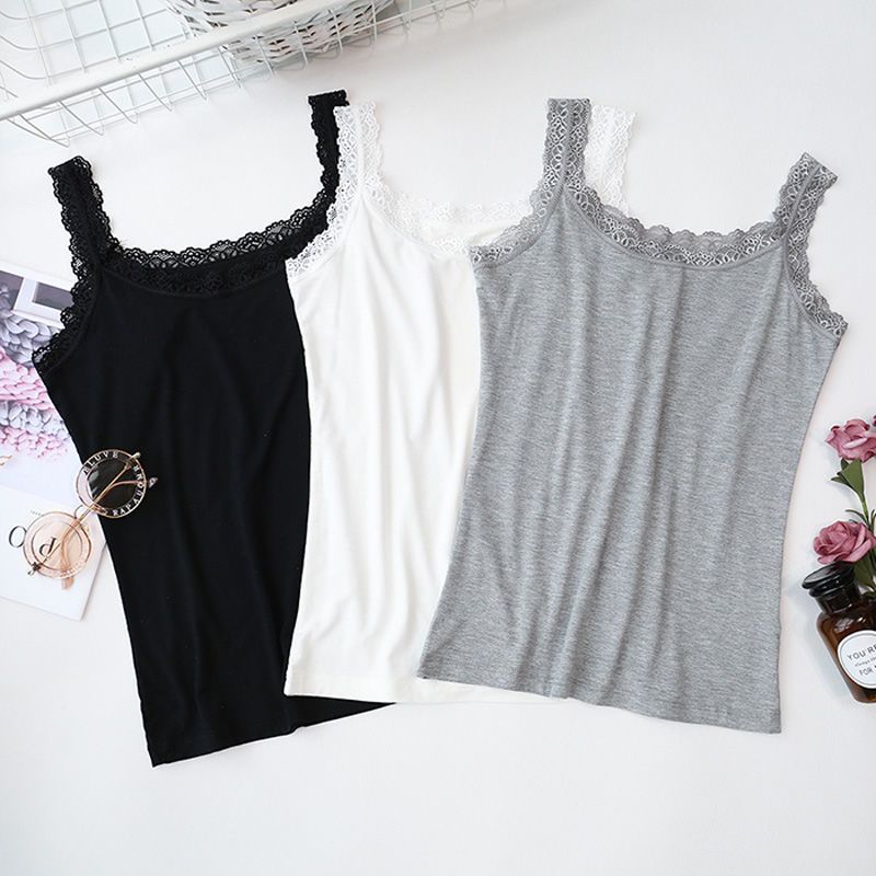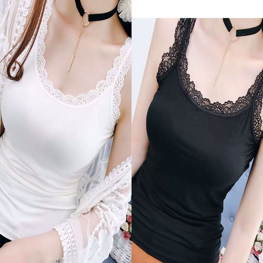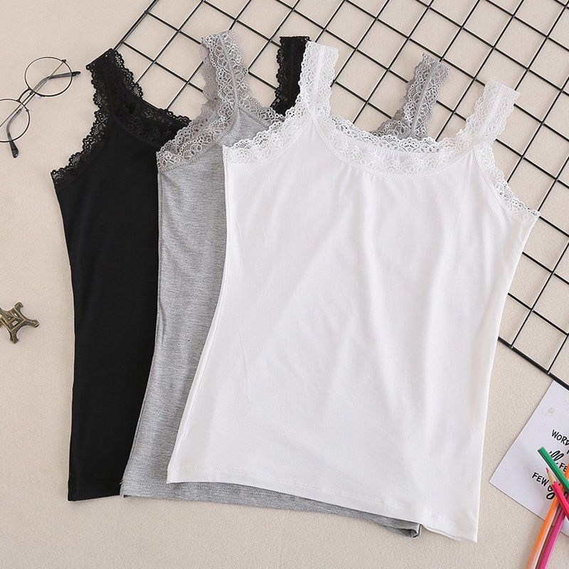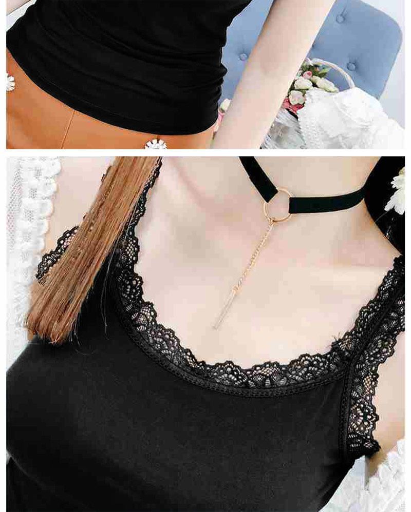 【两件装】甜美蕾丝边拼接吊带背心女春夏季薄款弹力内搭打底衫女