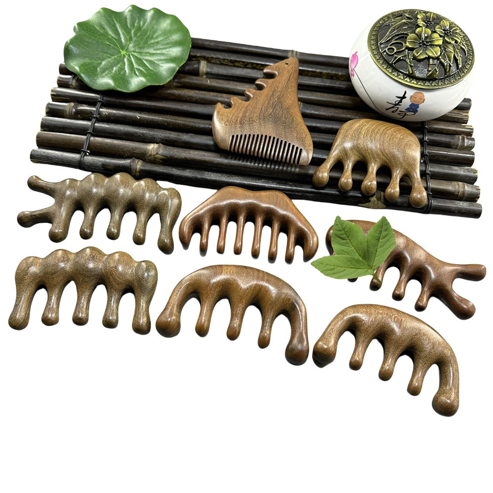定制按摩梳金丝绿檀木梳头部经络梳头疗刮痧大宽齿头皮按摩梳女