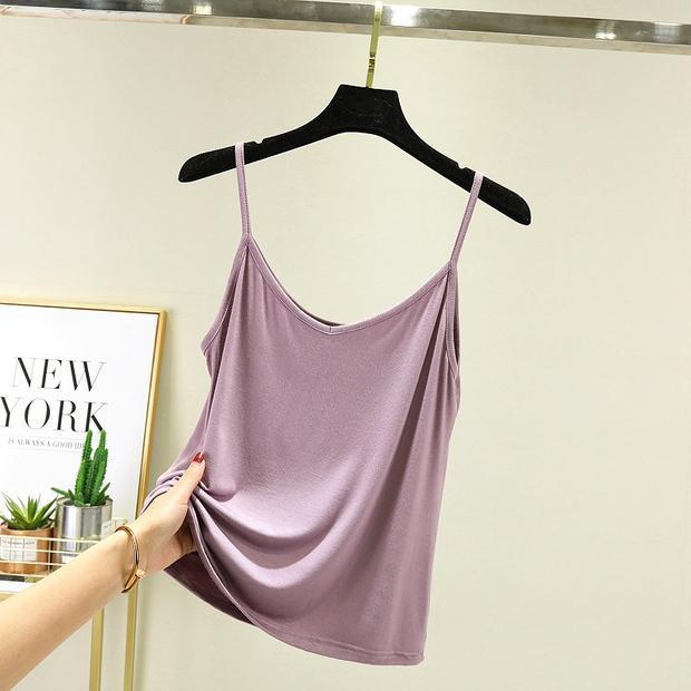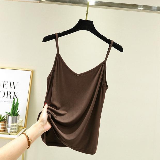女无袖V领莫代尔吊带春夏季外穿显瘦打底衫大码内搭薄款上衣背心