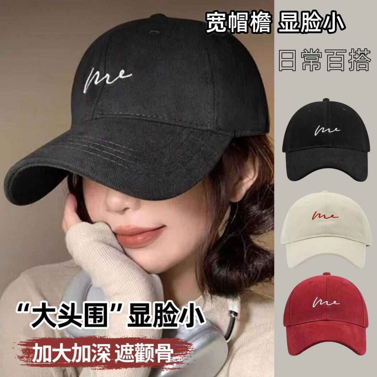 大头围棒球帽子女2025新款显脸小深顶韩版加大加深百搭鸭舌帽潮流