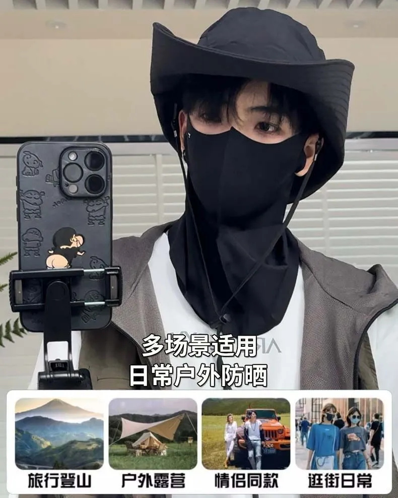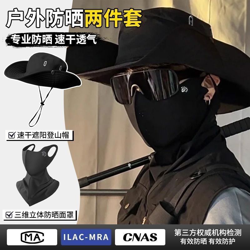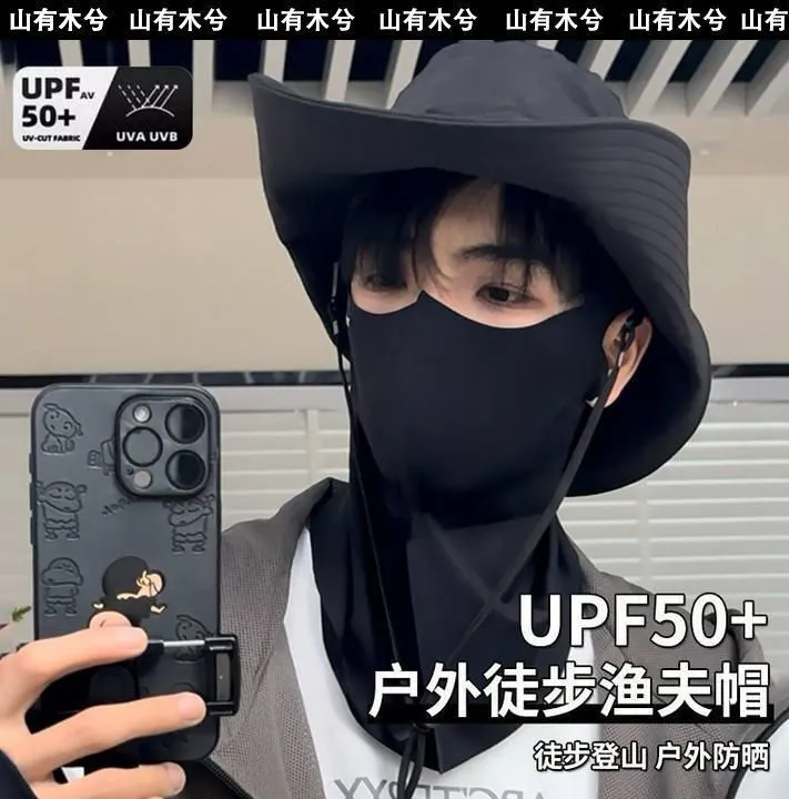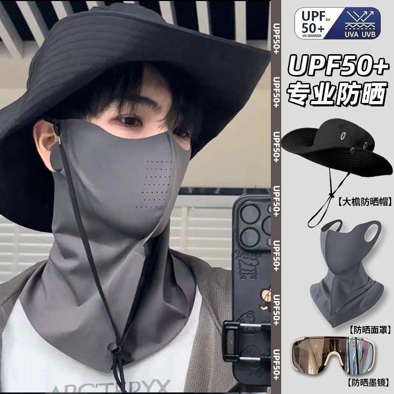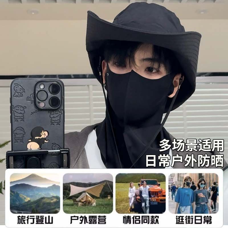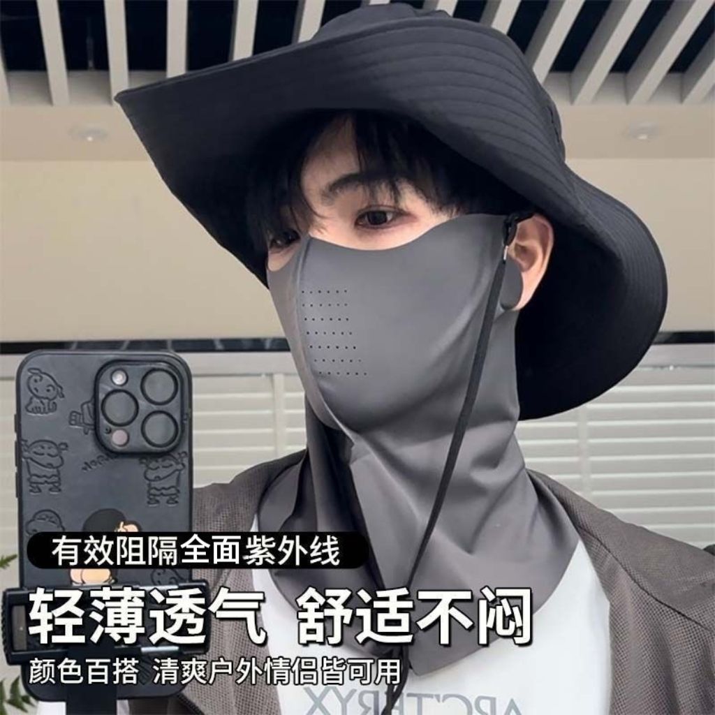 男士夏季防晒户外空顶遮阳帽紫外线潮流冰丝面罩街头遮脸太阳帽男