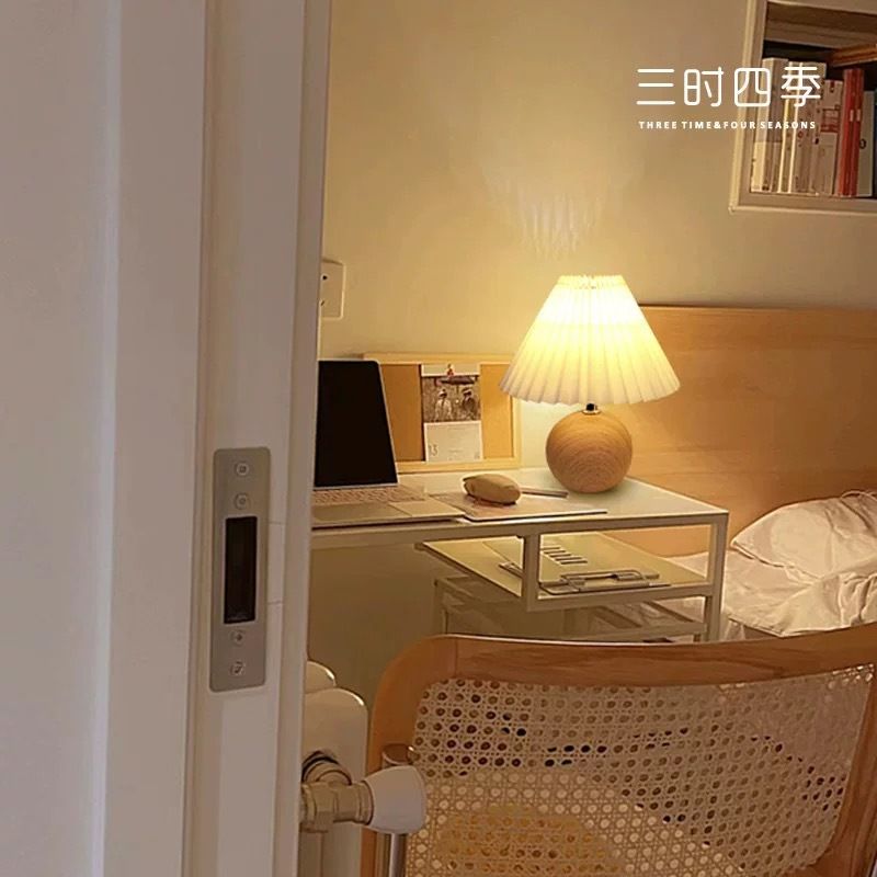 百褶台灯ins北欧陶瓷卧室床头灯温馨浪漫简约ins风少女心高级复古