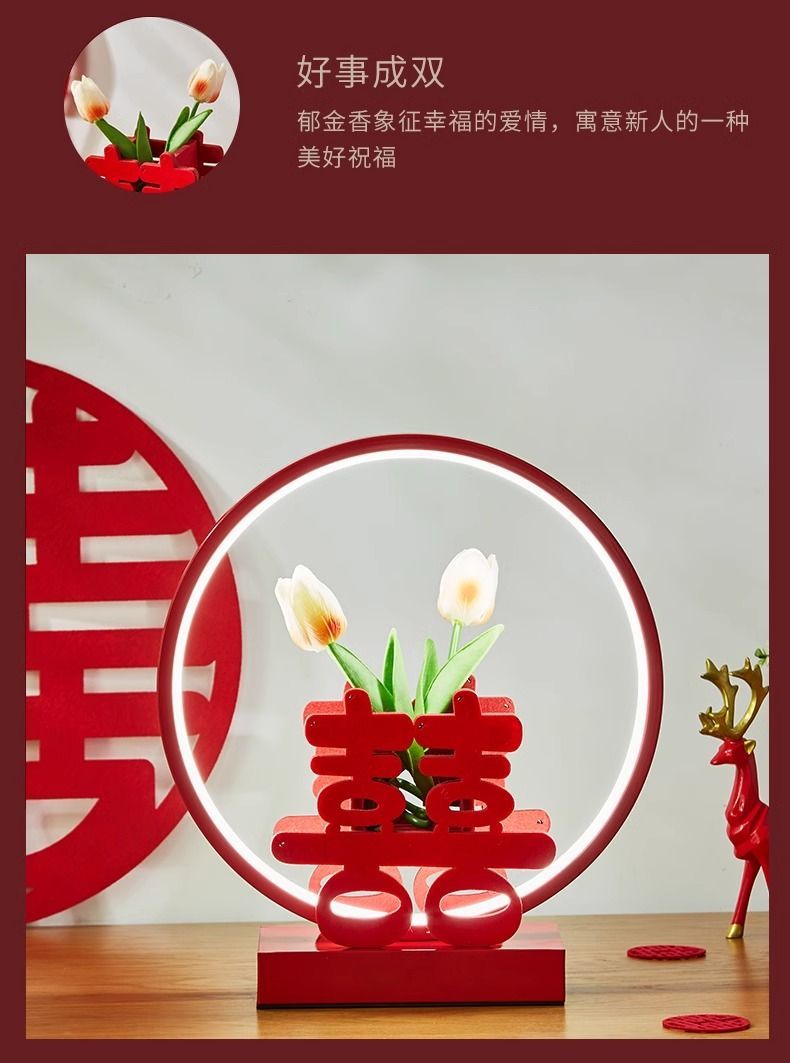 结婚台灯婚房卧室喜庆床头充电喜灯送新人新娘女方一对陪嫁长明灯