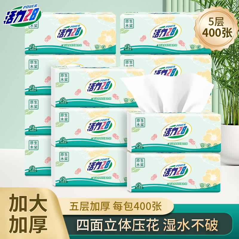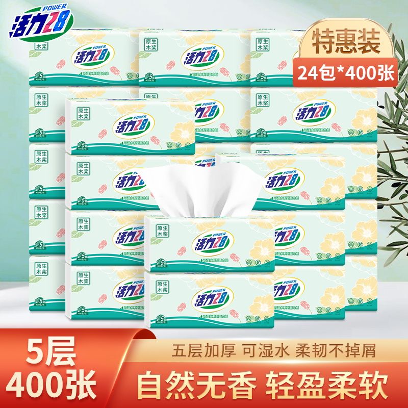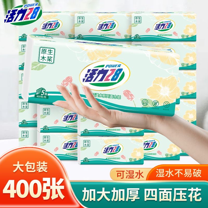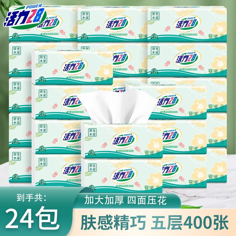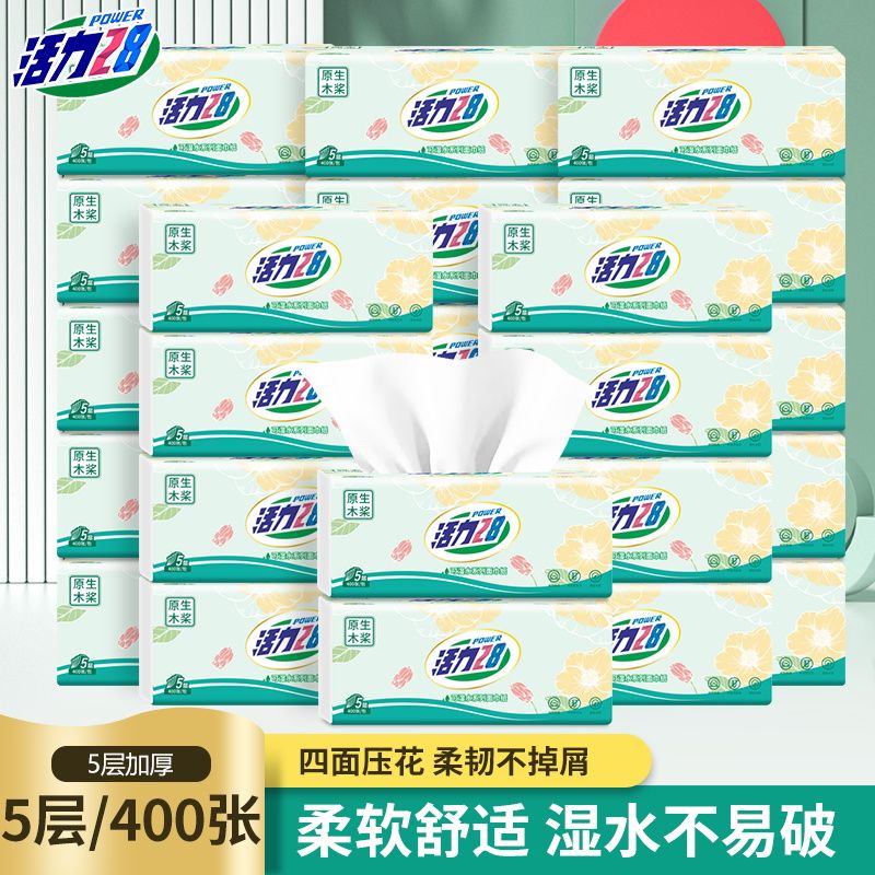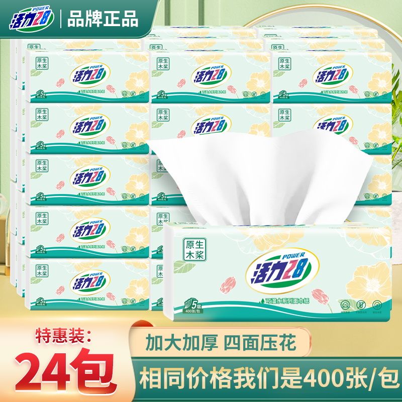 活力28抽纸原生木浆面巾纸餐巾纸加大加厚四面立体压花家用实惠装