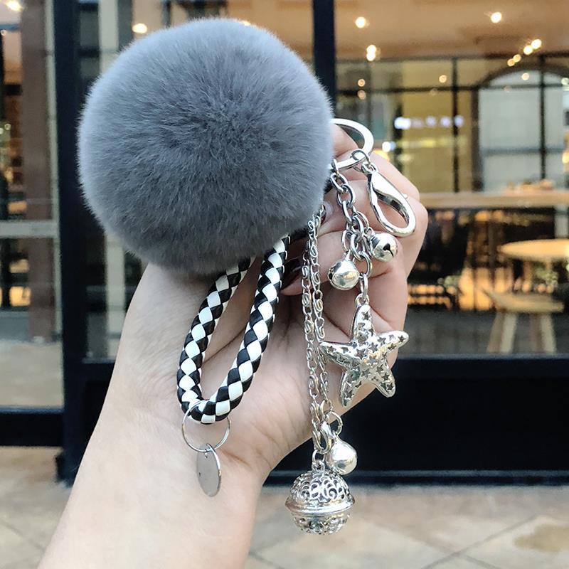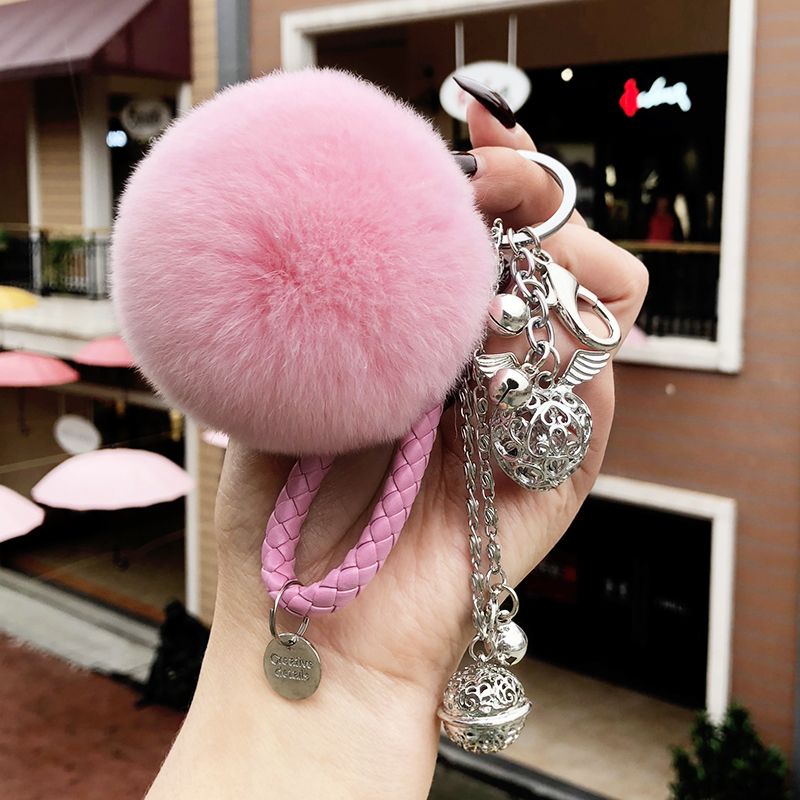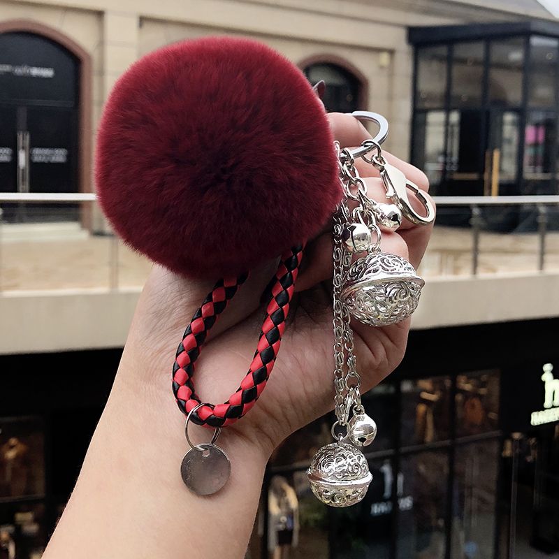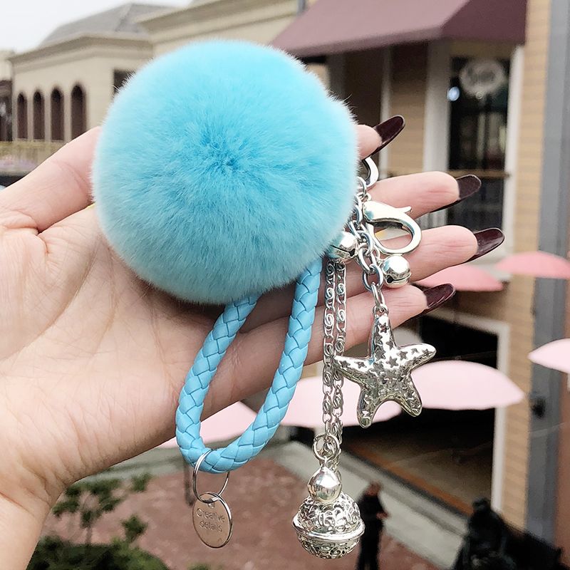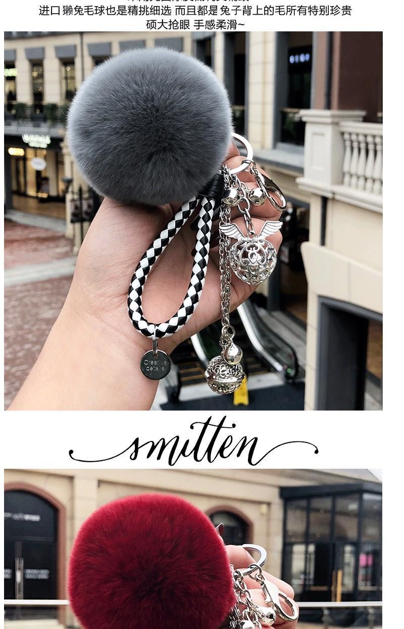 创意毛绒钥匙扣女韩国可爱獭兔毛球挂件毛绒汽车钥匙链女士包挂件