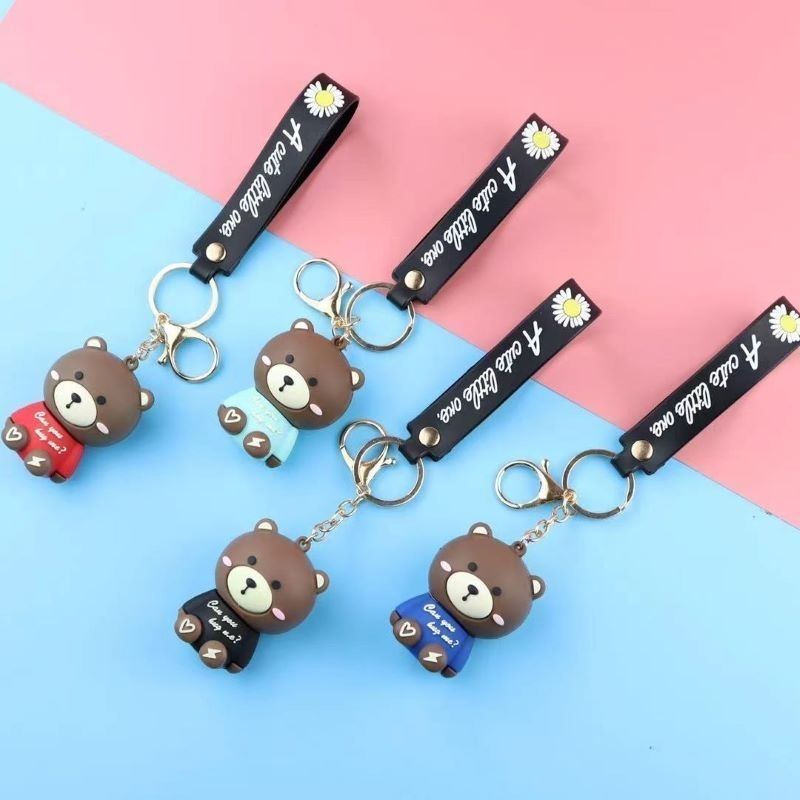 布郎熊网红爆款可爱卡通超萌电动车钥匙扣节日生日礼物挂饰