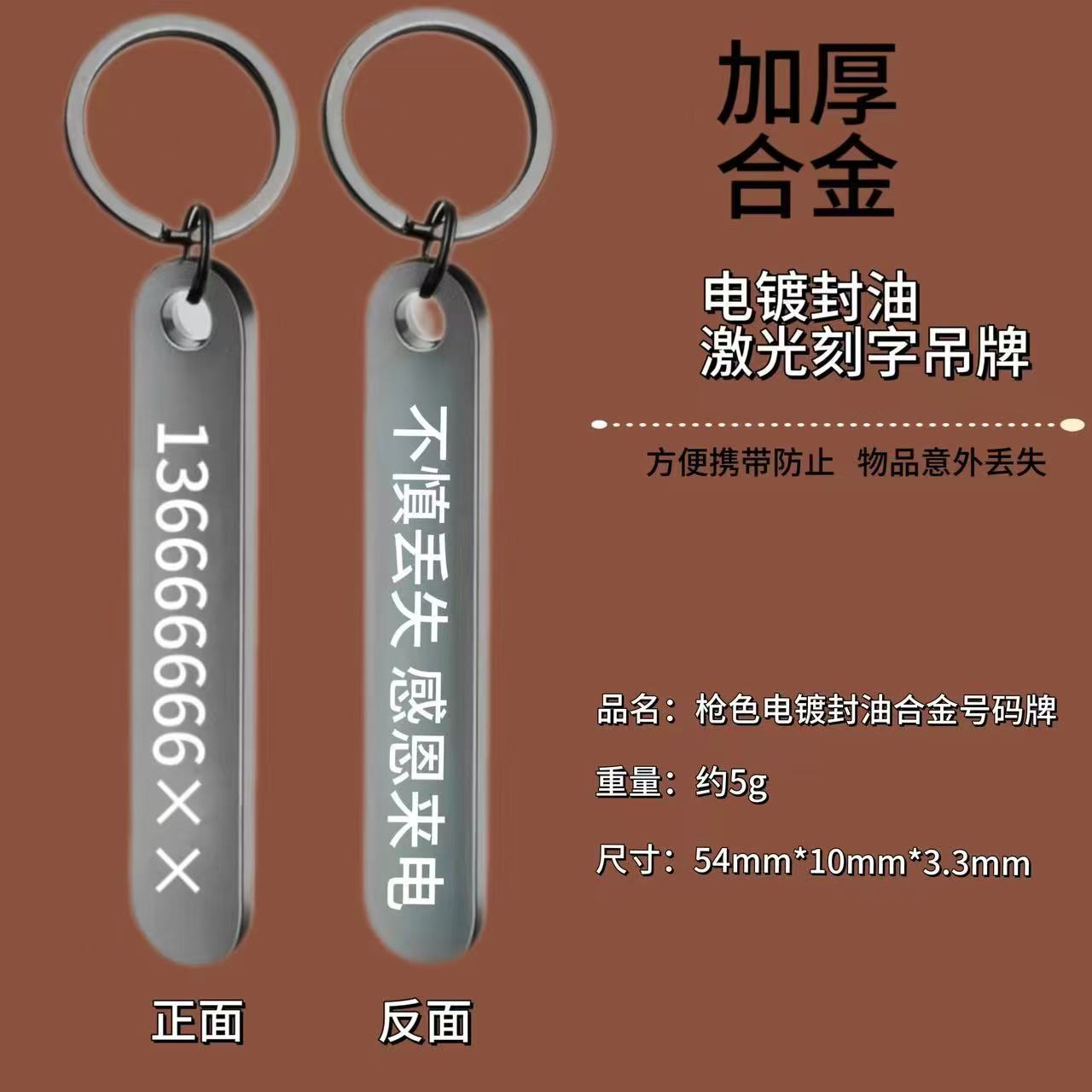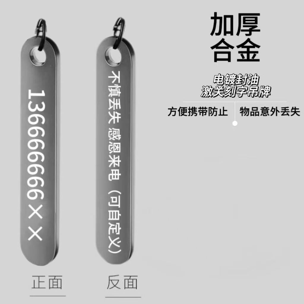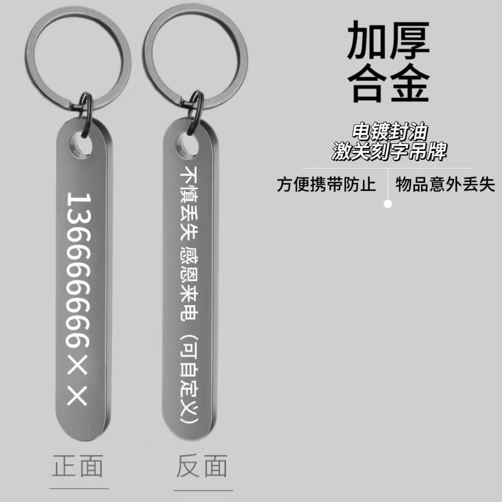 定制号码牌钥匙扣锌合金激光高级感挂件创意电话防丢号码牌刻字