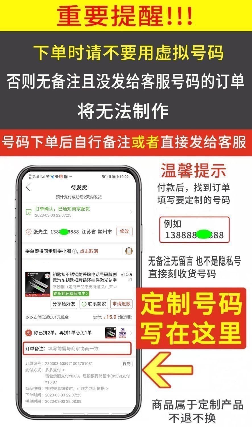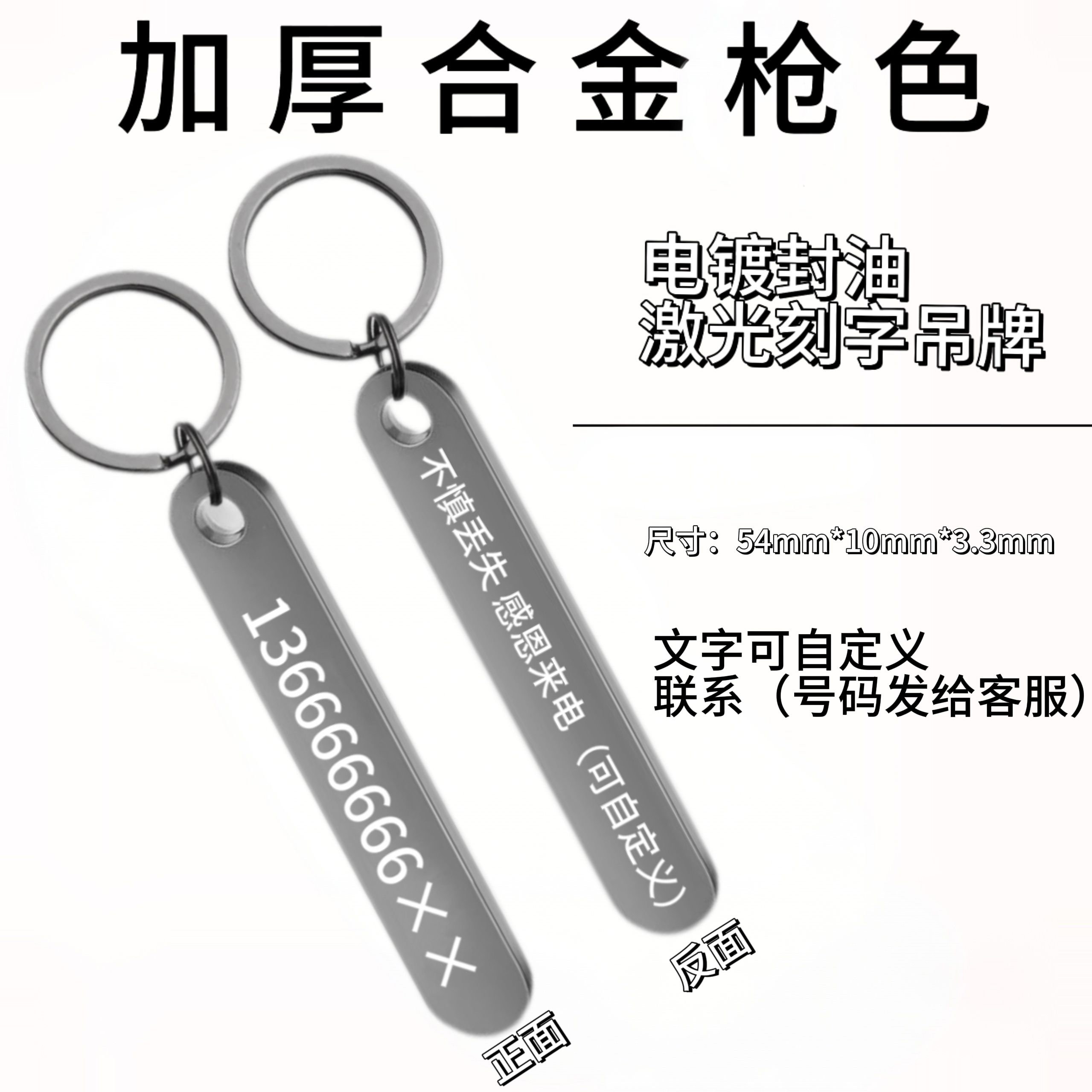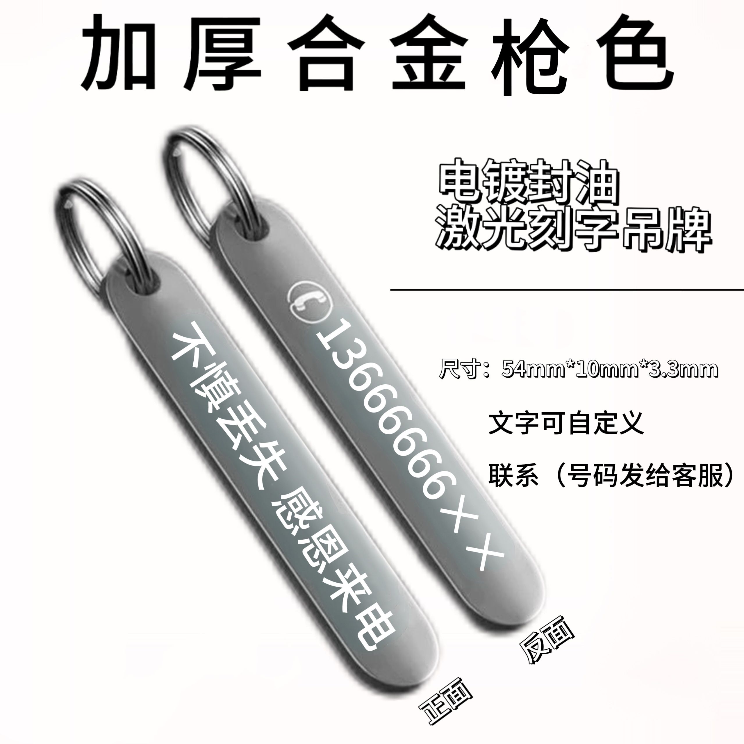 定制号码牌钥匙扣锌合金激光高级感挂件创意电话防丢号码牌刻字
