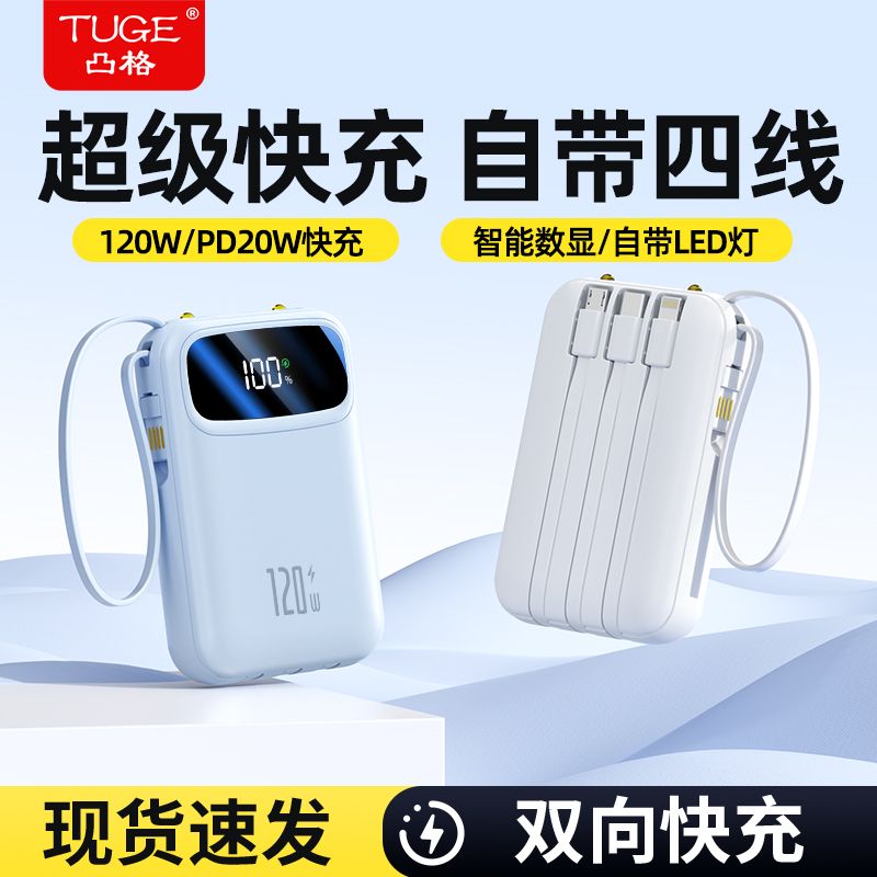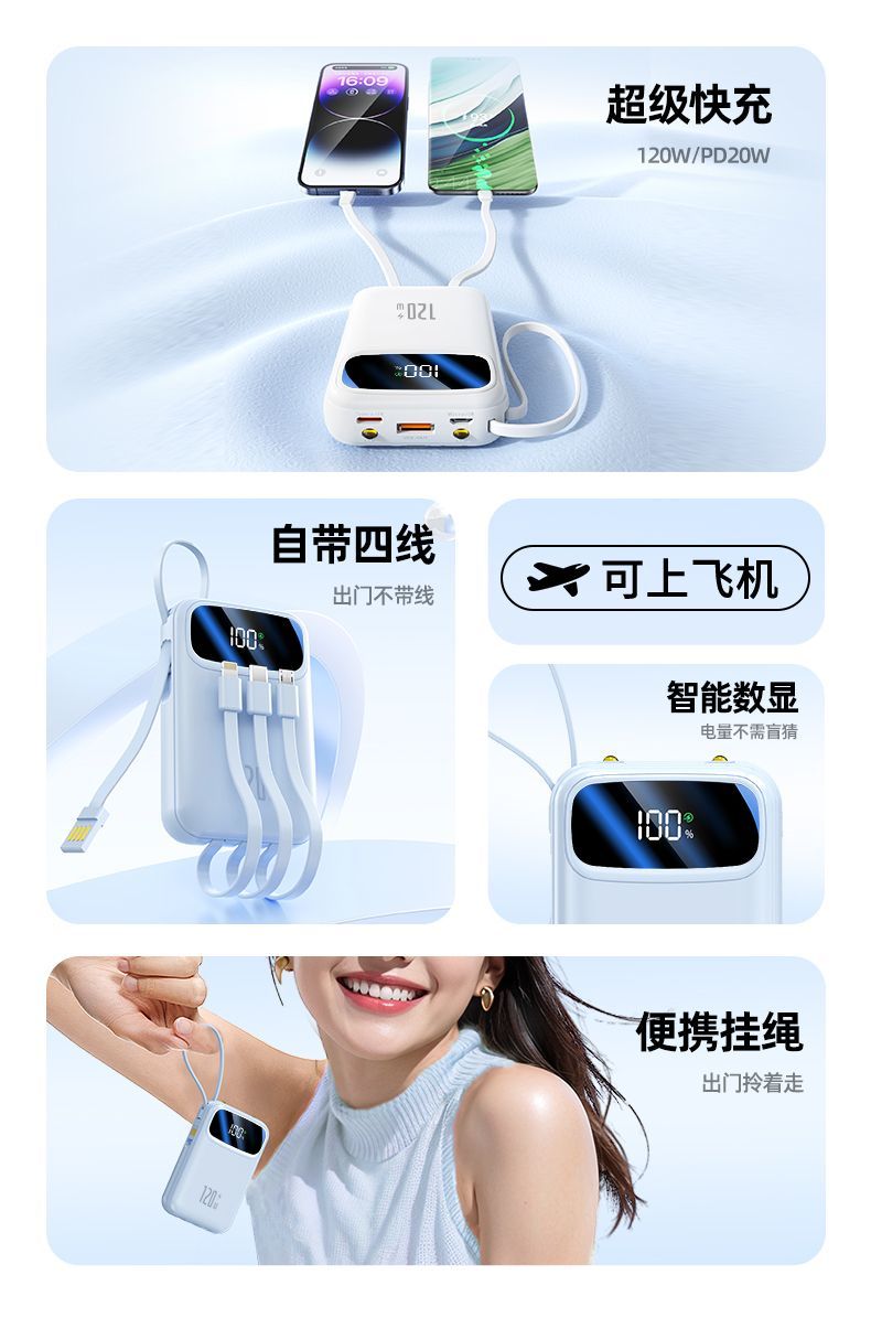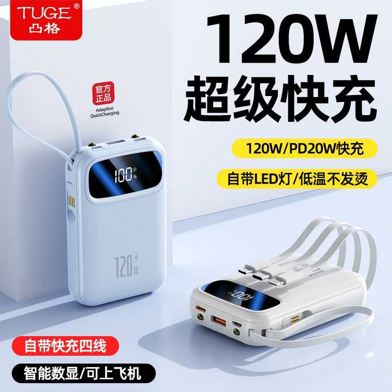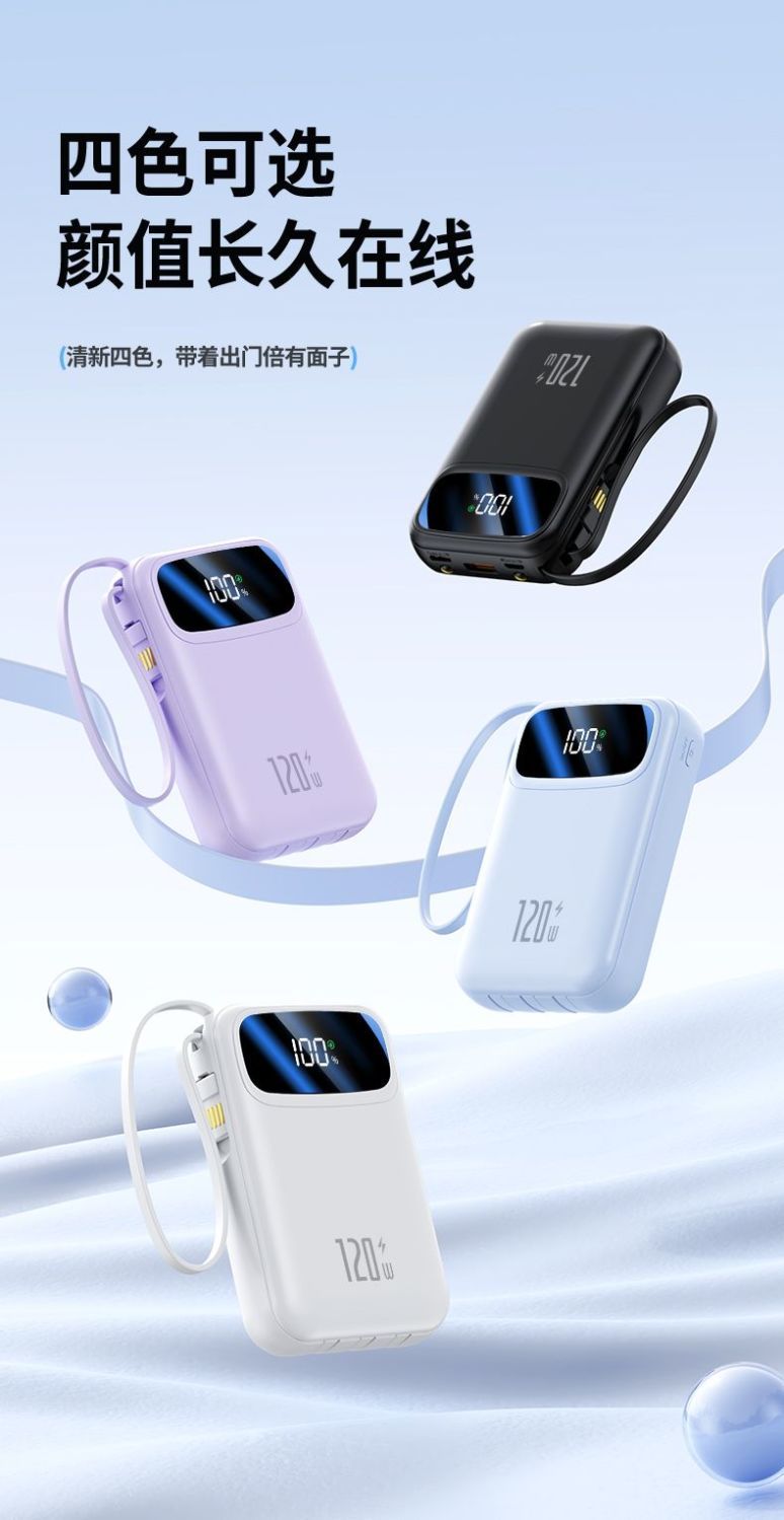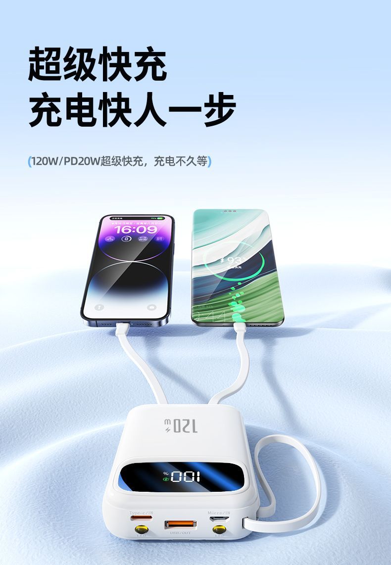 120W超级快充20000毫安充电宝大容量自带线适用华为安卓小米手机