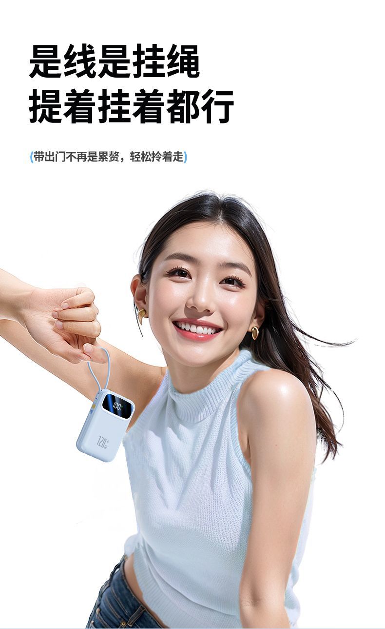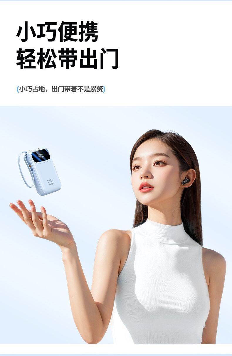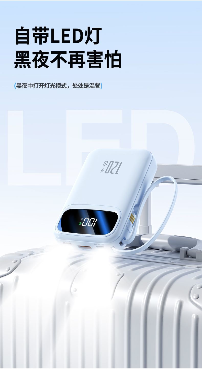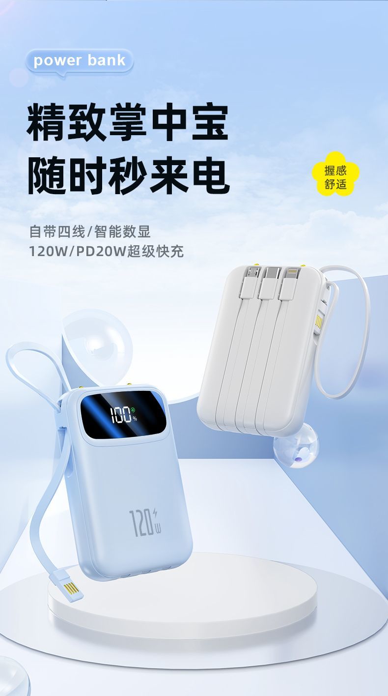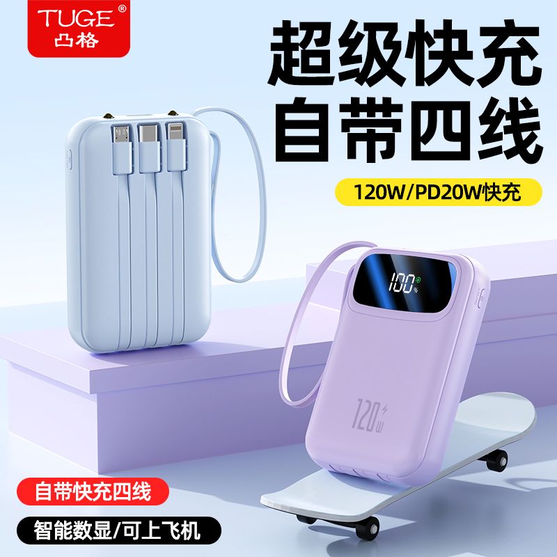 120W超级快充20000毫安充电宝大容量自带线适用华为安卓小米手机