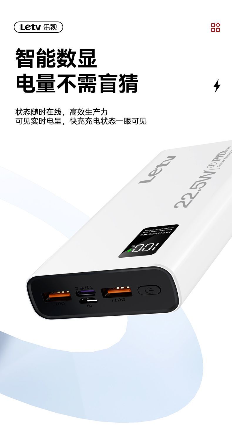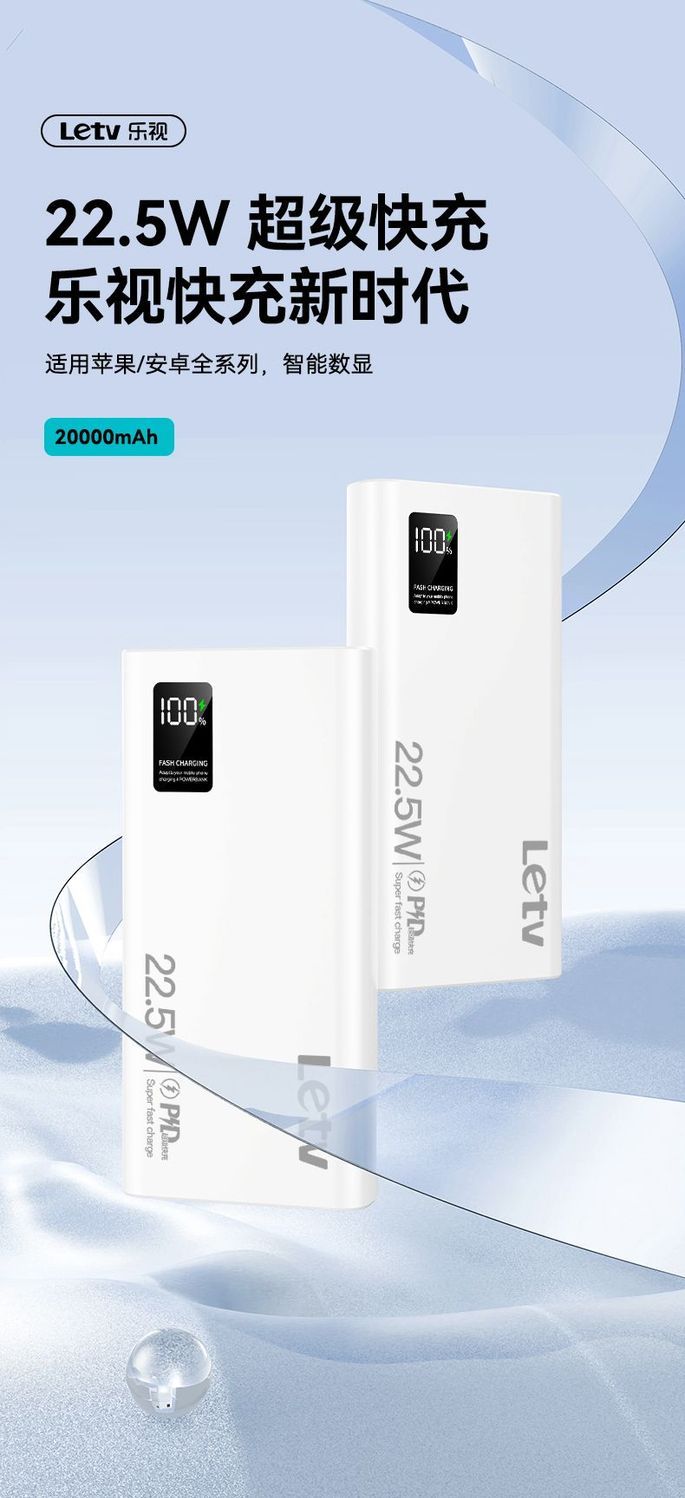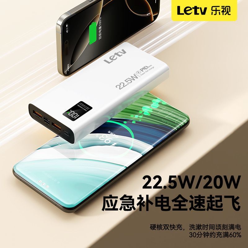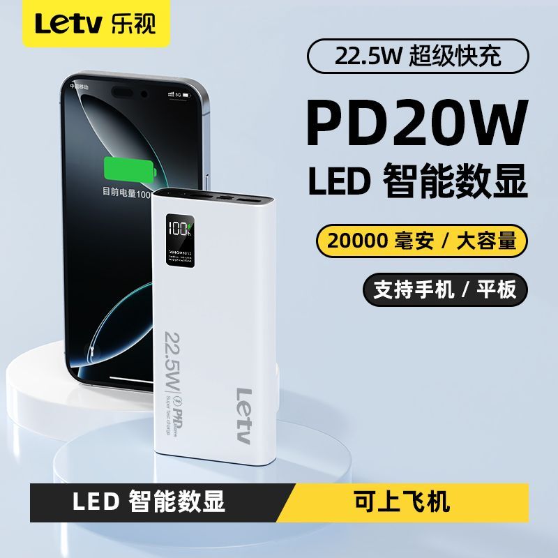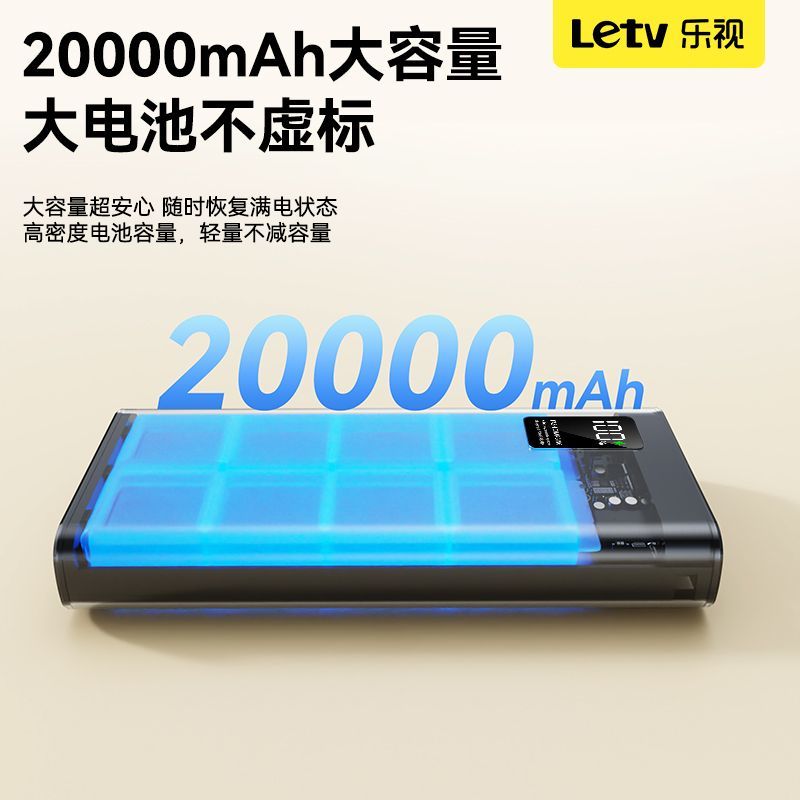 乐视大容量充电宝20000毫安22.5超级快充手机通用便携移动电源