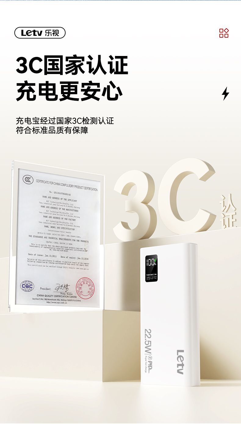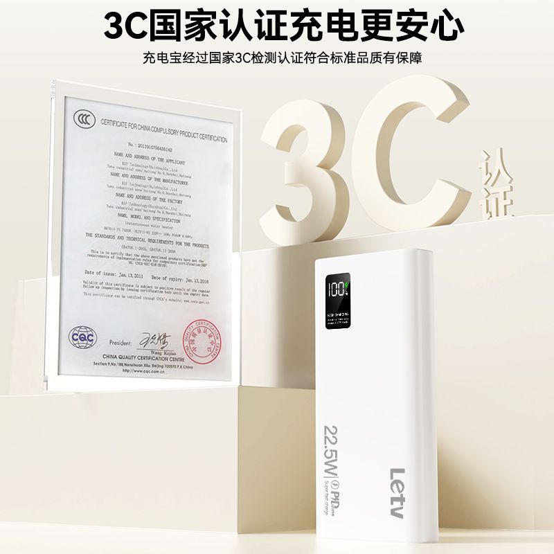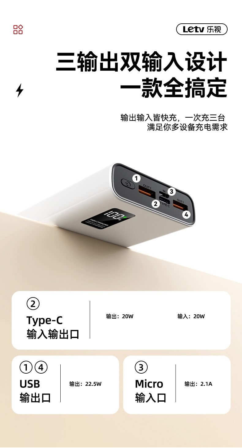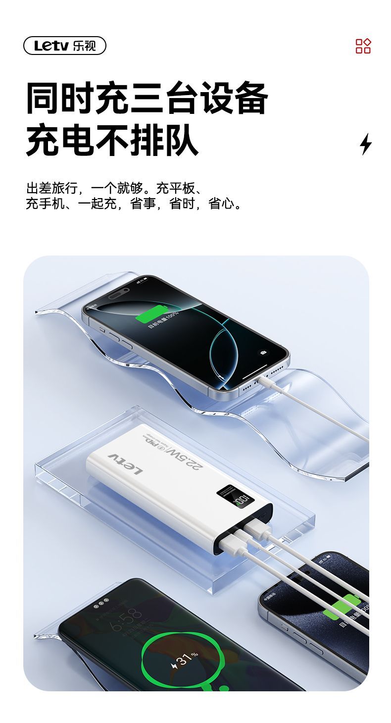 乐视大容量充电宝20000毫安22.5超级快充手机通用便携移动电源