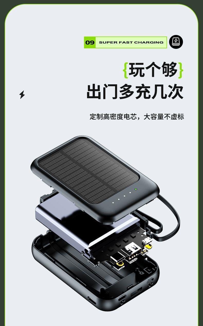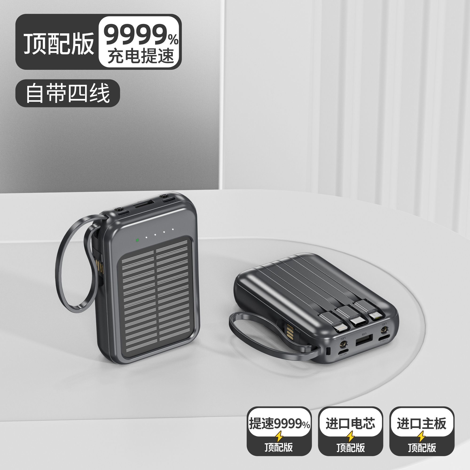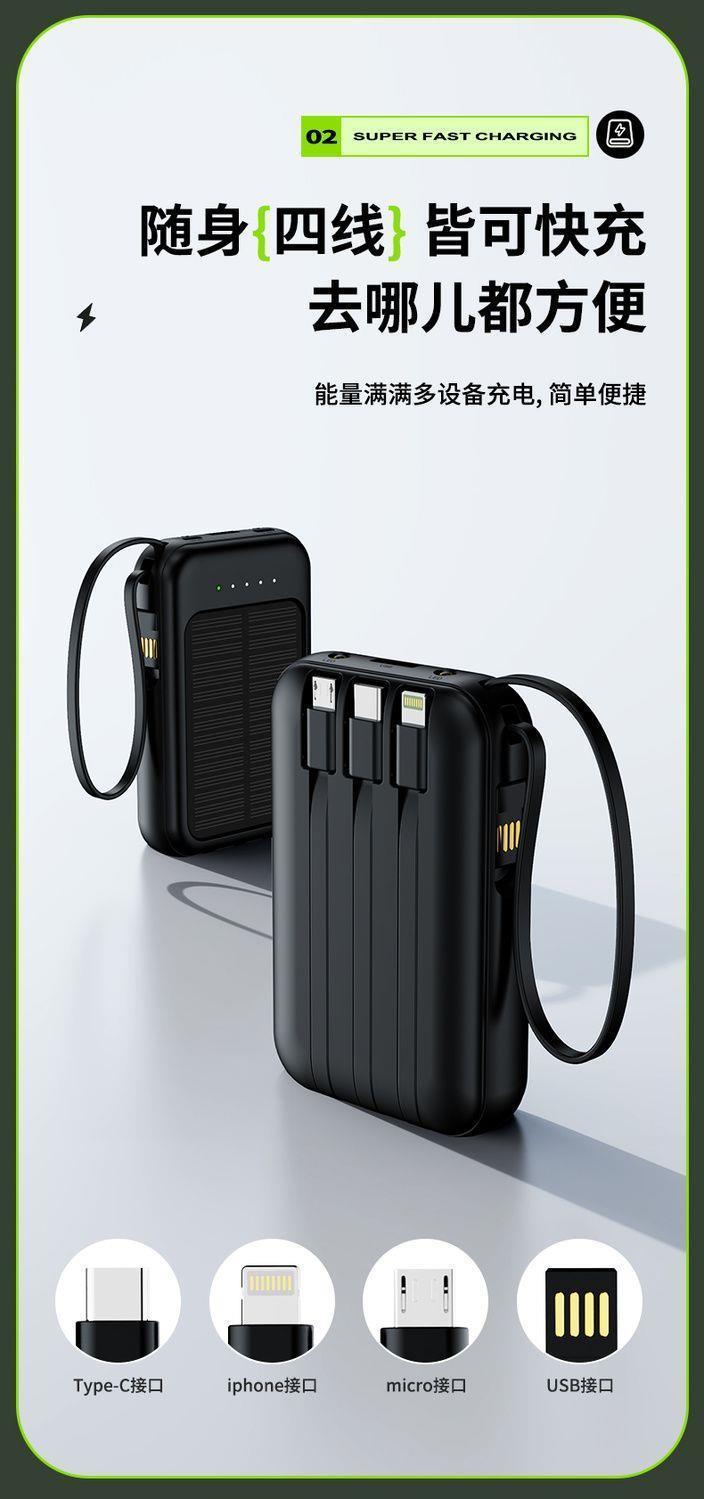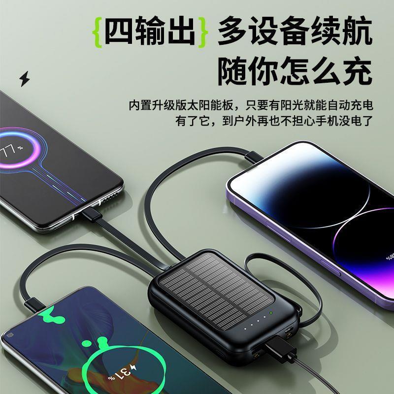 太阳能自带4线充电宝20000毫安迷你快充移动电源苹果华为小米通用