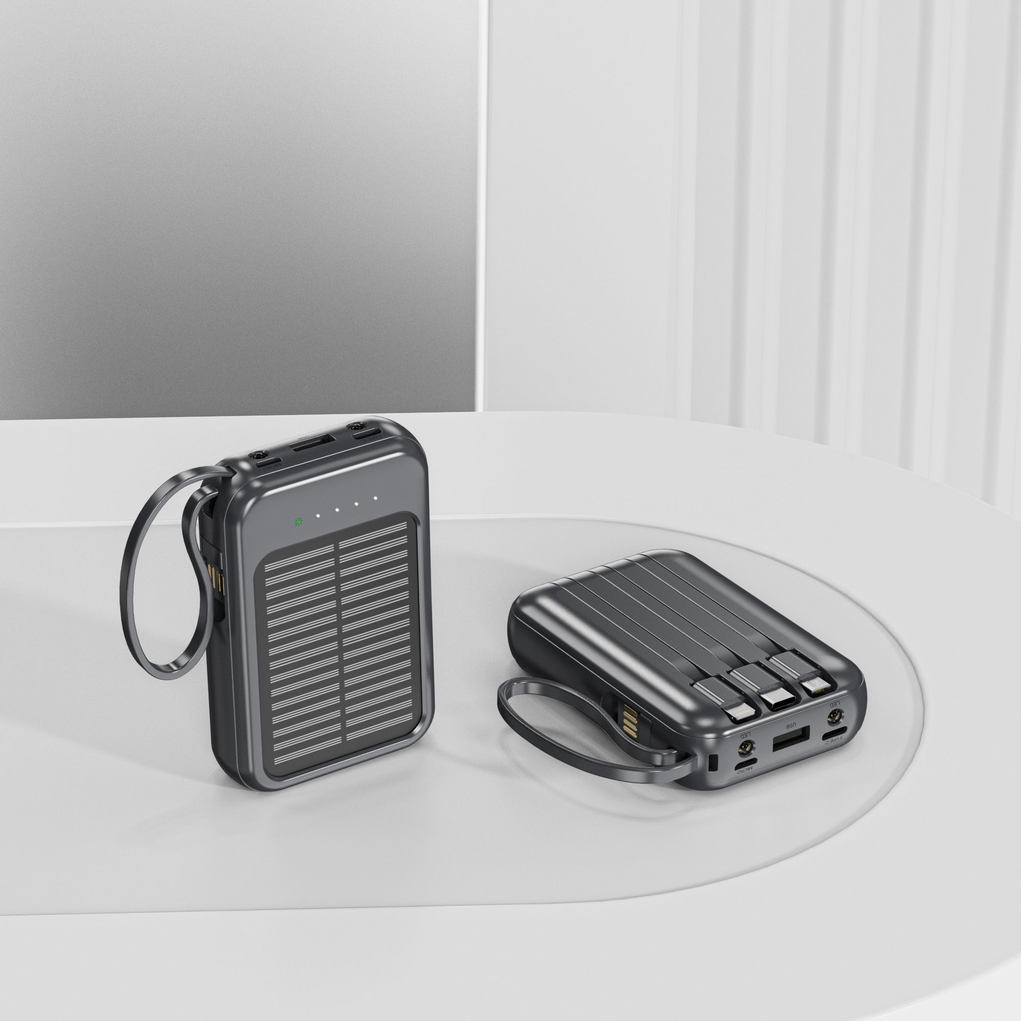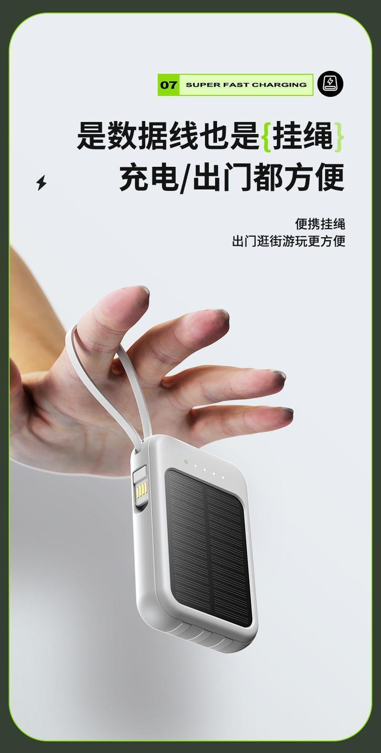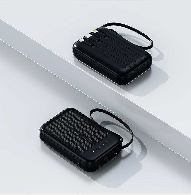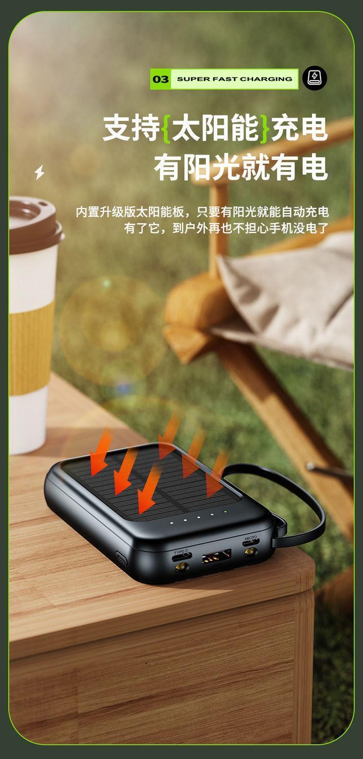 太阳能自带4线充电宝20000毫安迷你快充移动电源苹果华为小米通用