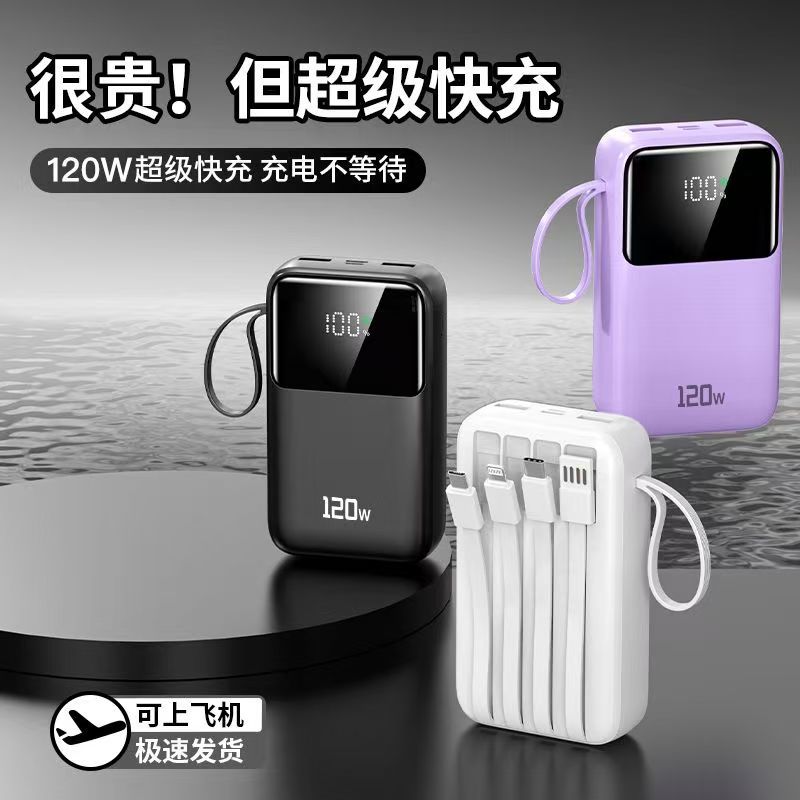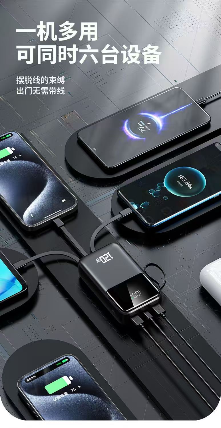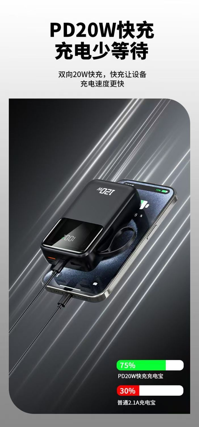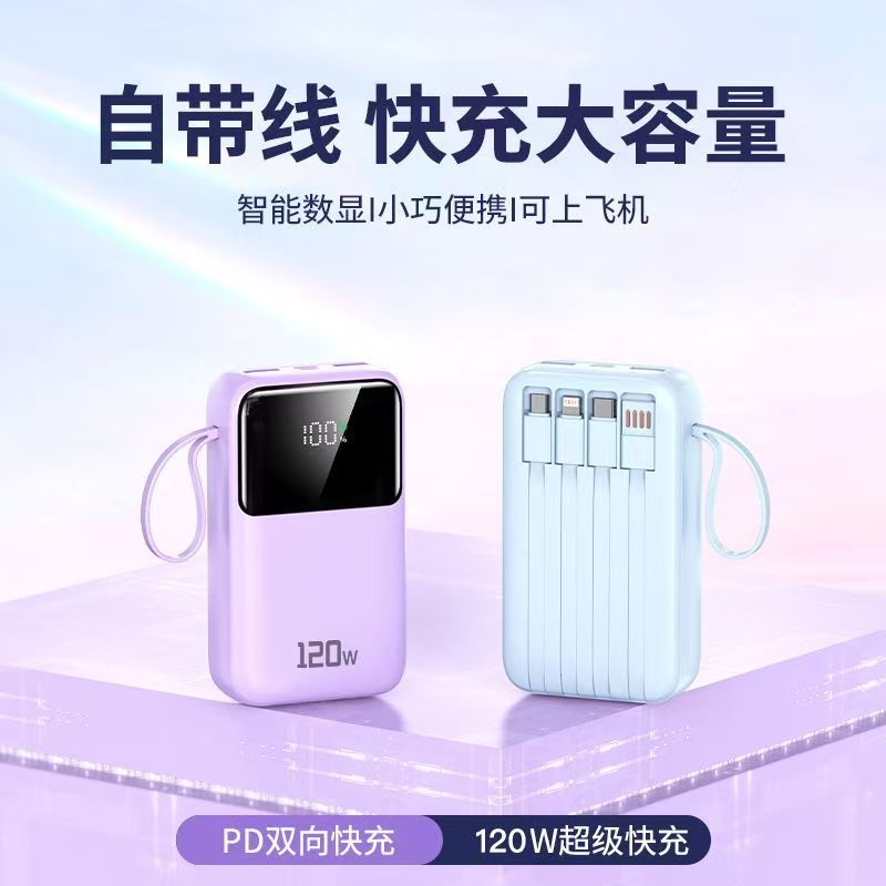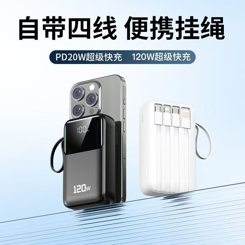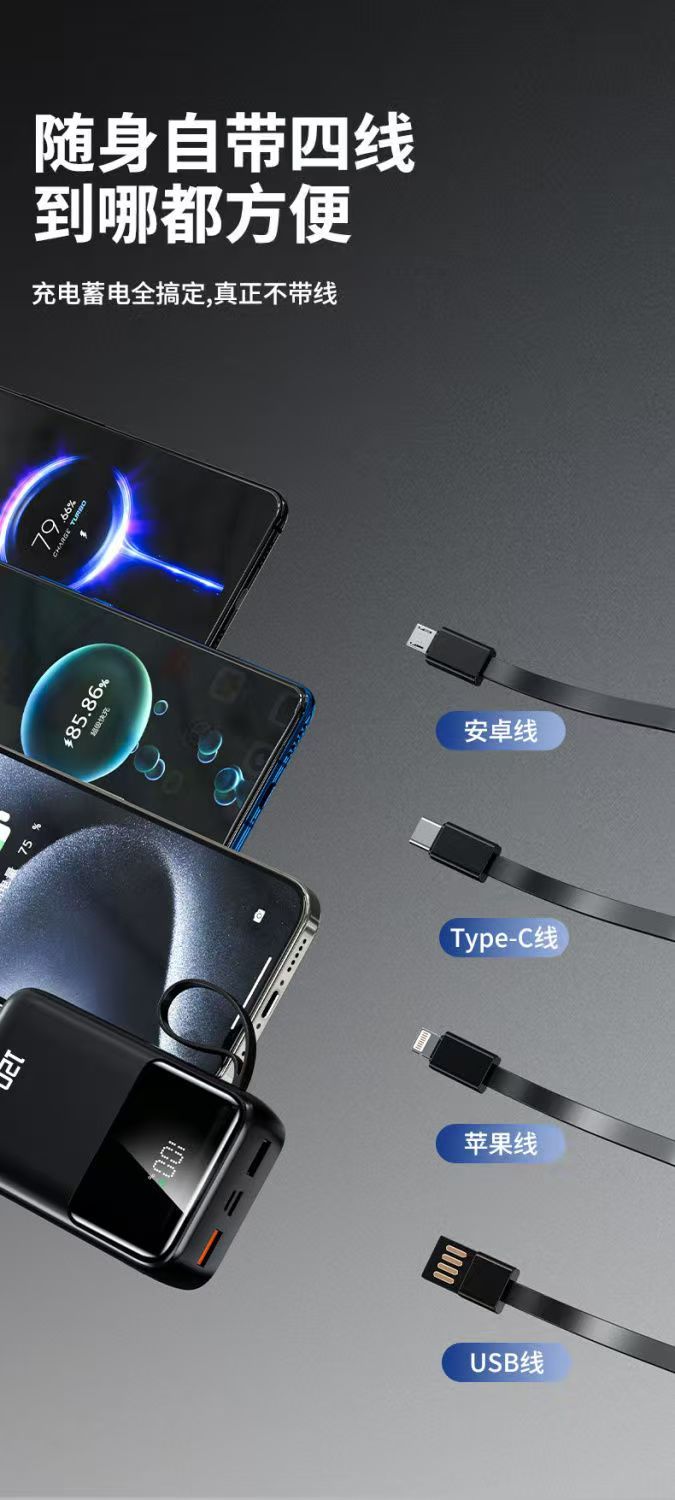20000毫安充电宝自带4线迷你小巧适用苹果安卓手机闪充PD移动电源