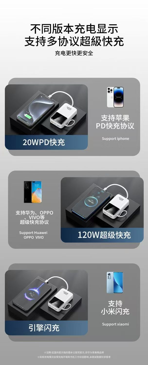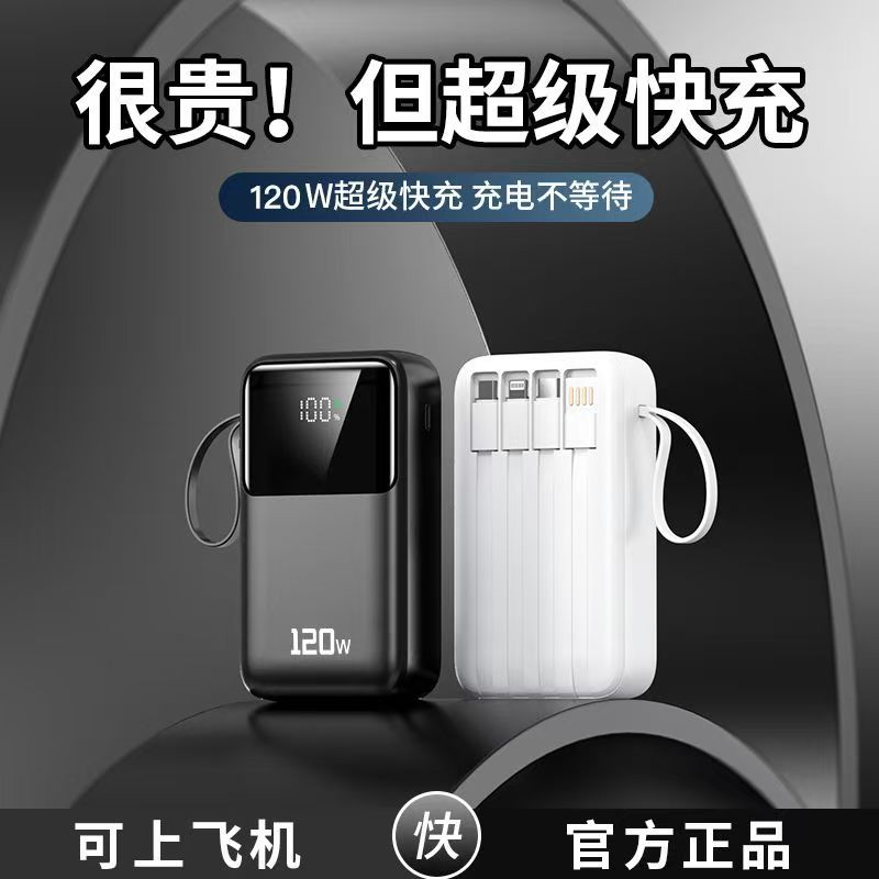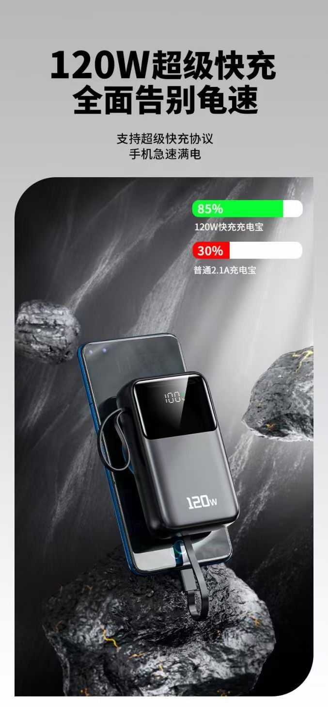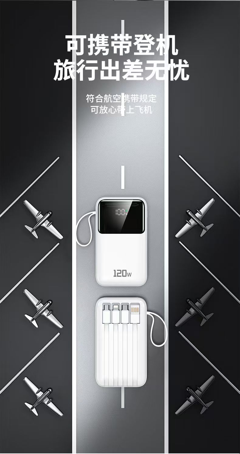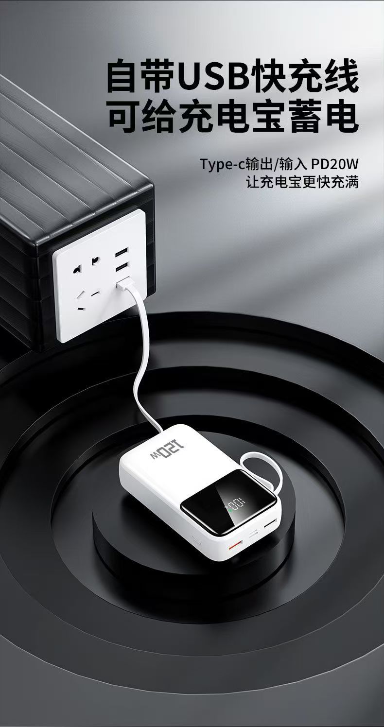 20000毫安充电宝自带4线迷你小巧适用苹果安卓手机闪充PD移动电源