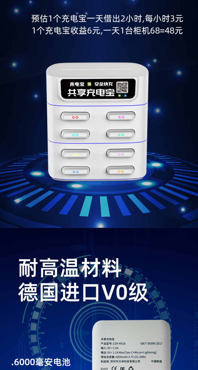共享充电宝商用快充扫码付费租借机柜美团怪兽网咖酒店用移动电源