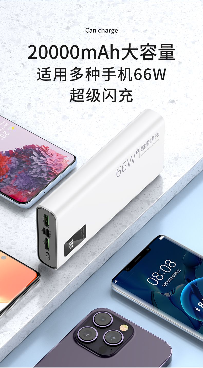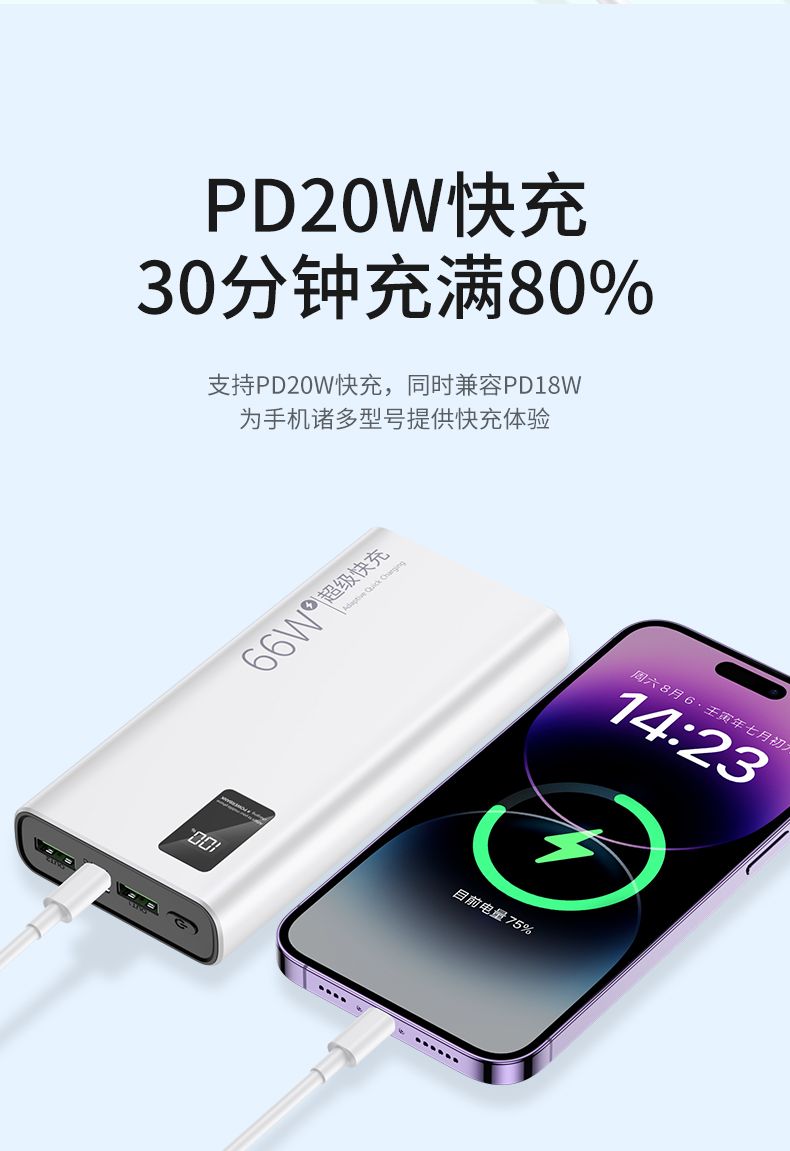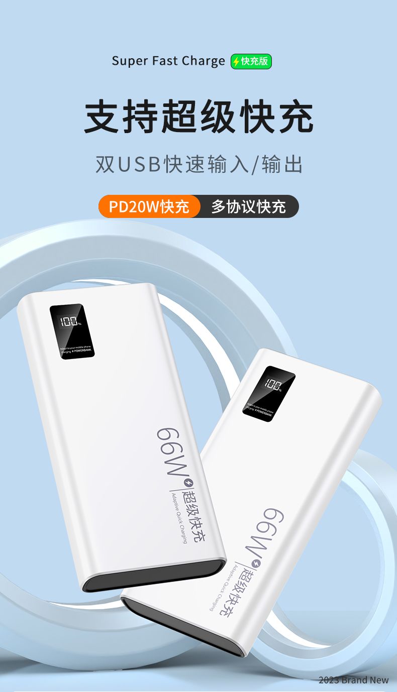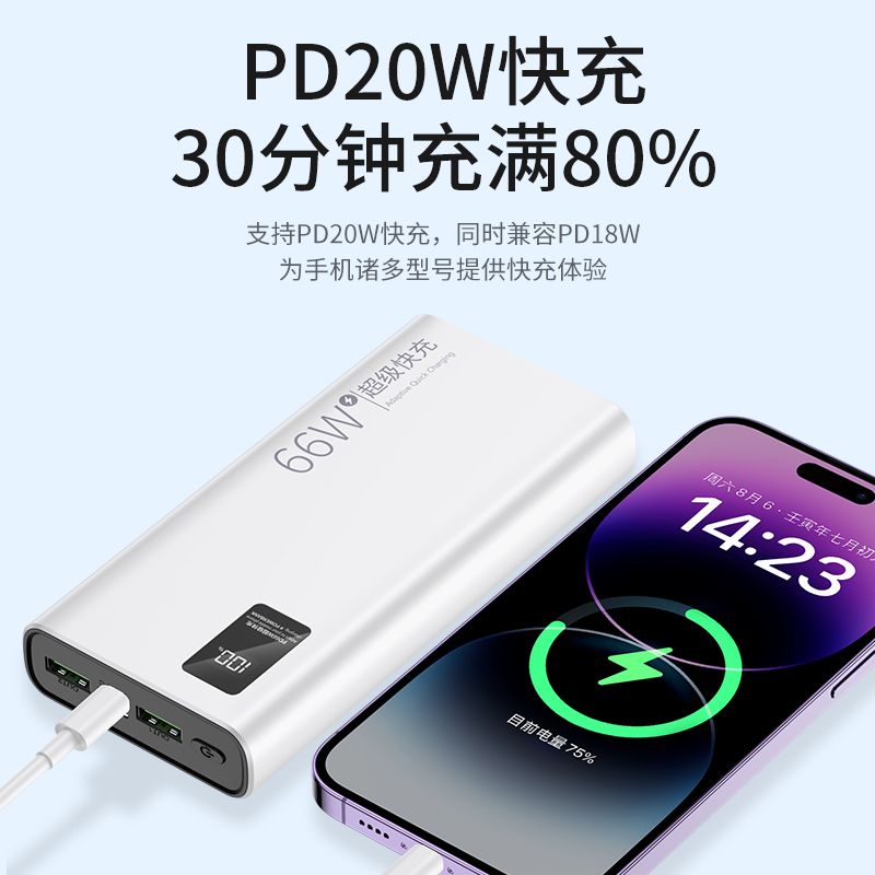 品牌充电宝66W超级快充大容量20000毫安PD手机通用便携移动电源