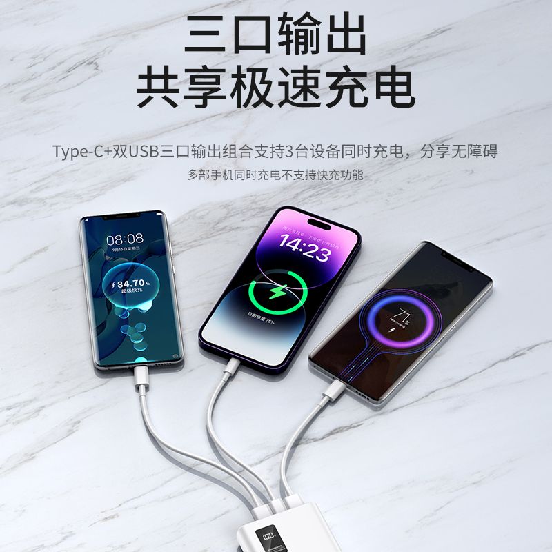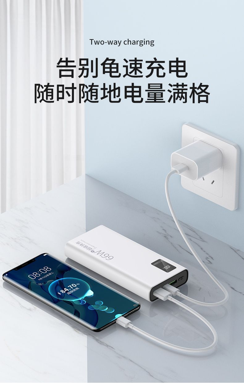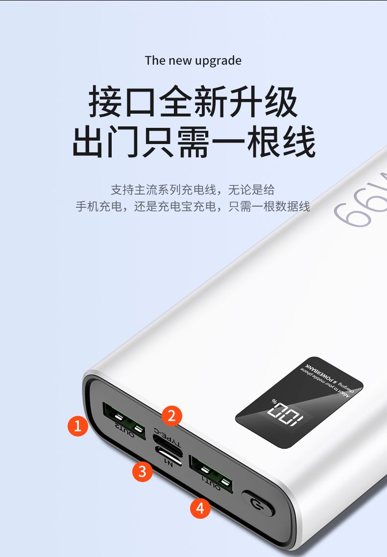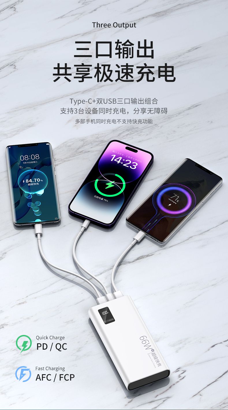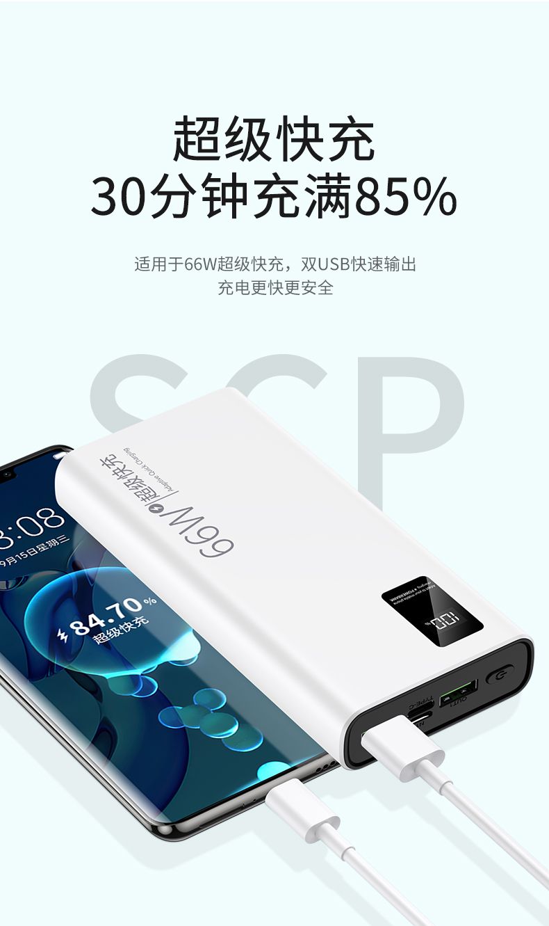品牌充电宝66W超级快充大容量20000毫安PD手机通用便携移动电源