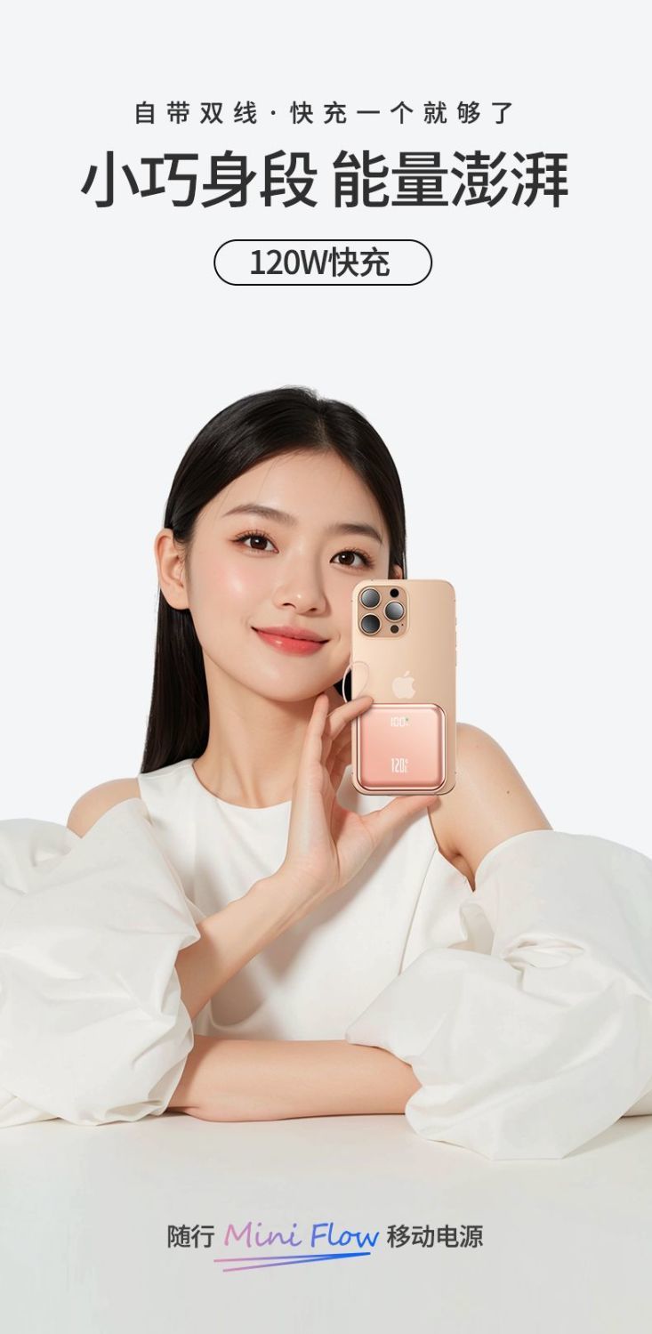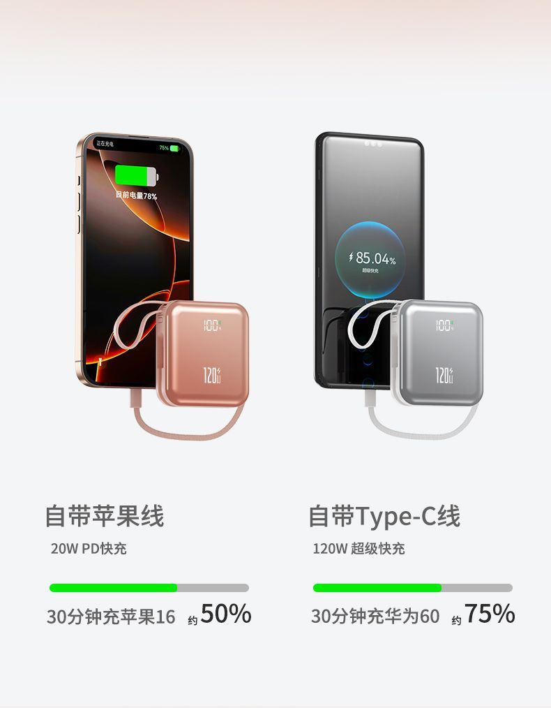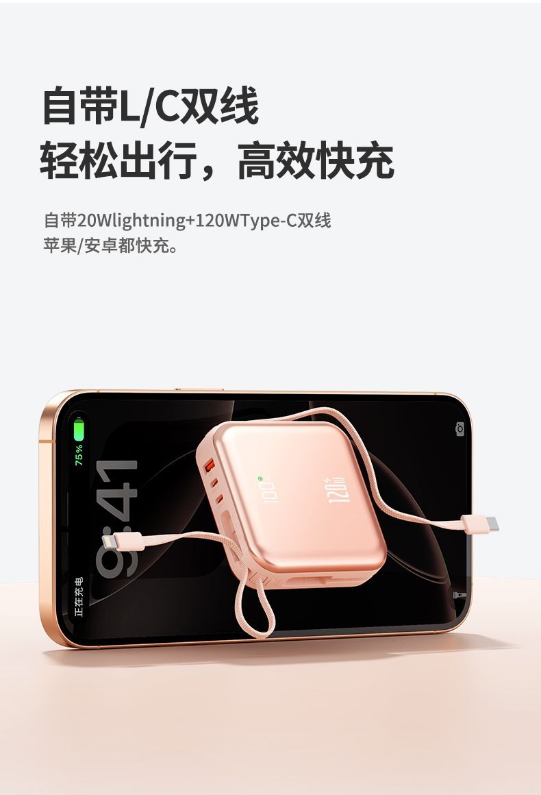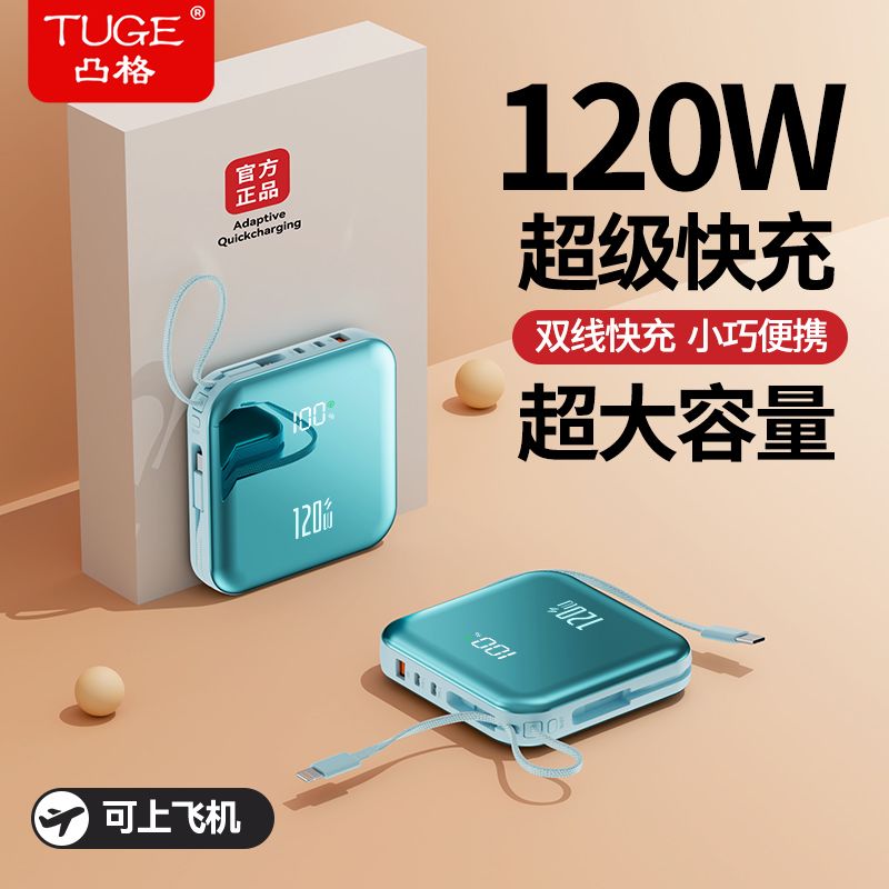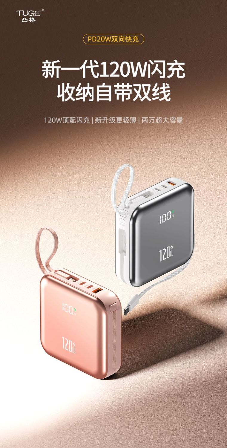 120W超级快充20000毫安充电宝小巧大容量移动电源安卓华为通用