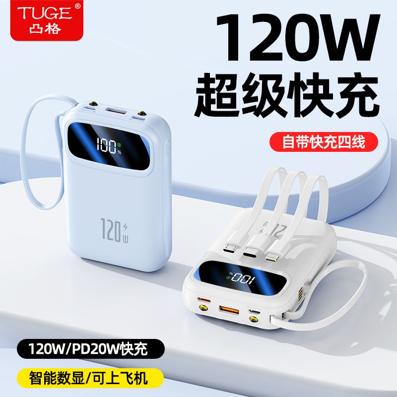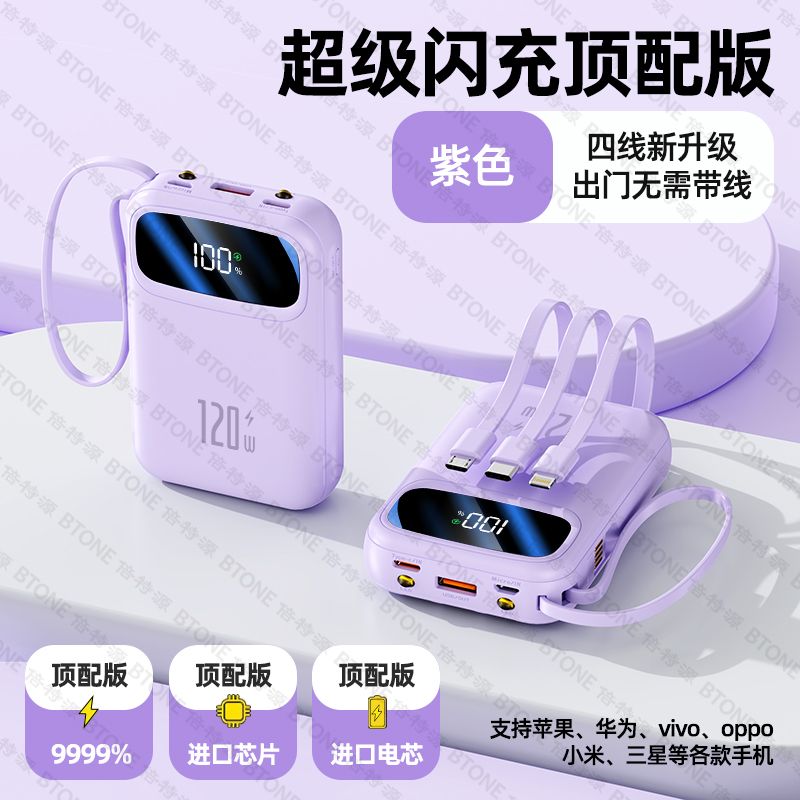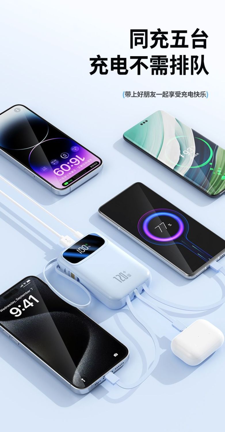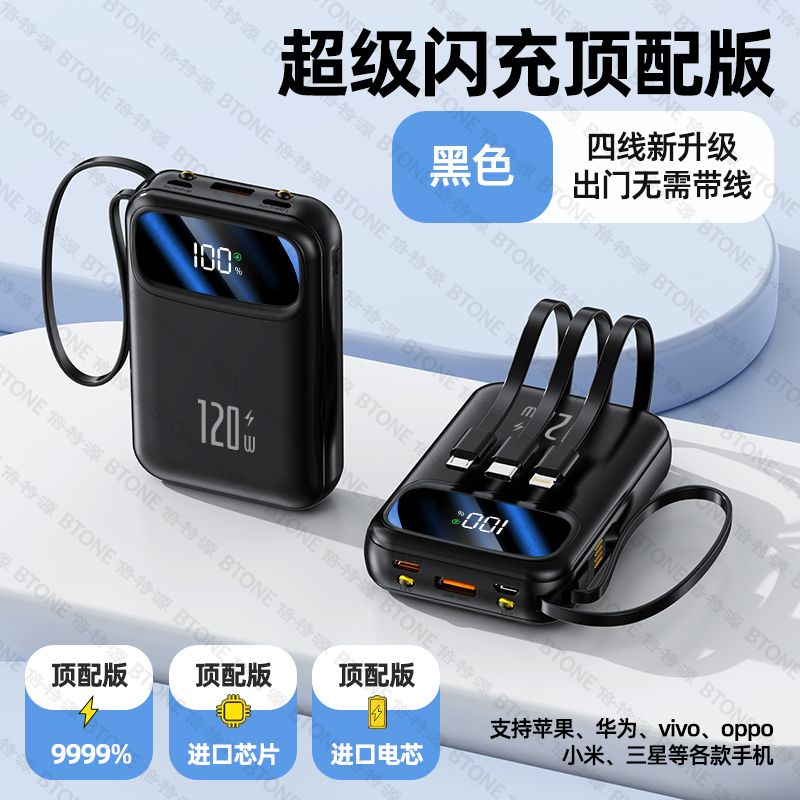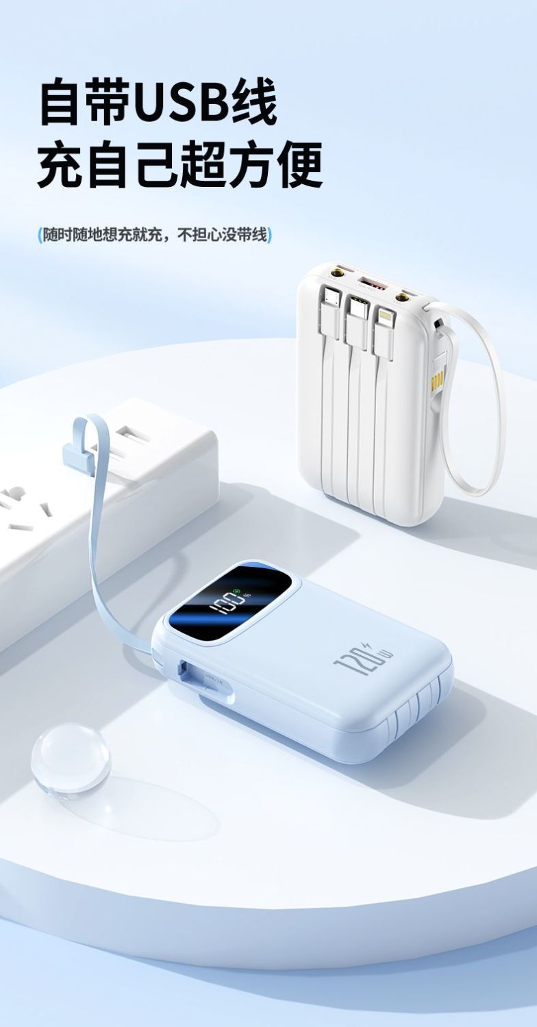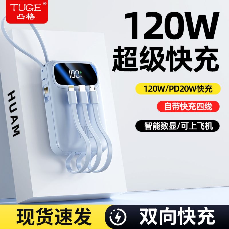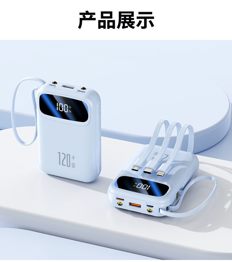 超级快充120W充电宝20000毫安自带线大容量适用苹果华为移动电源