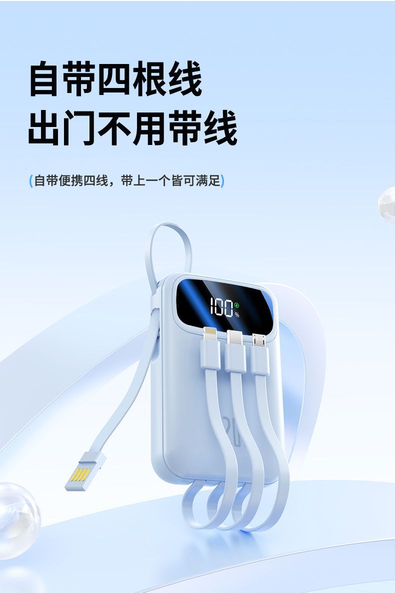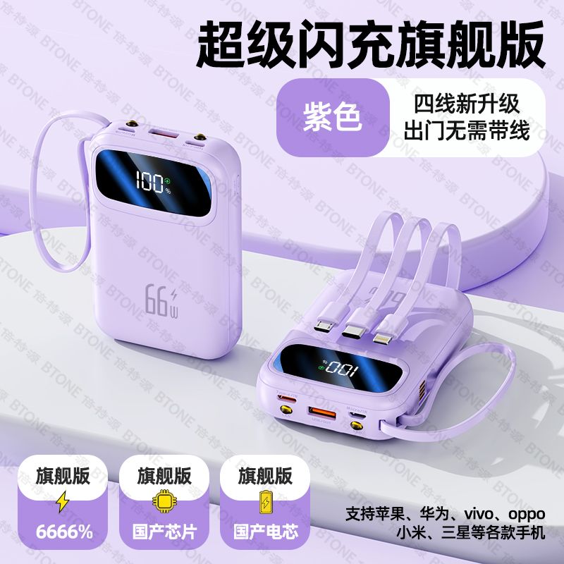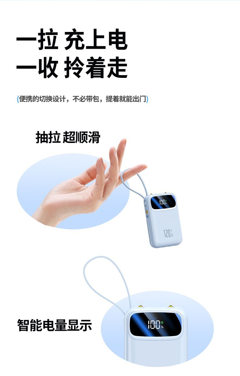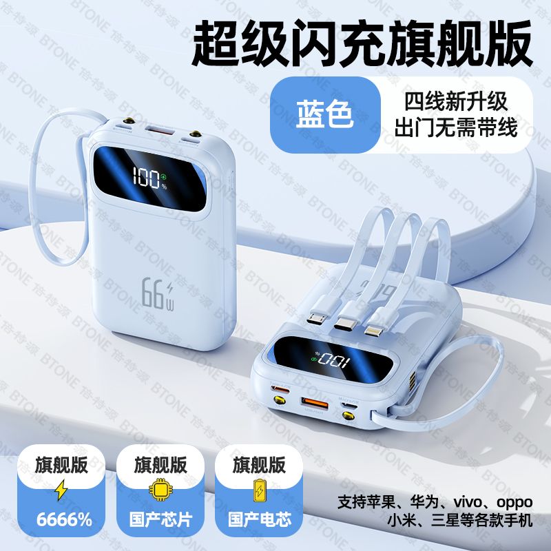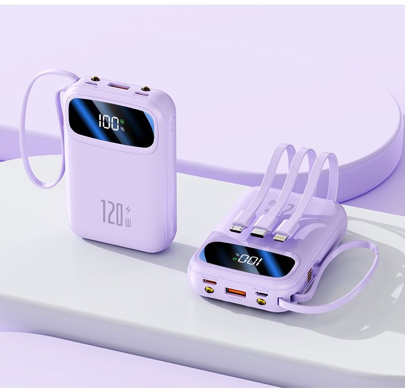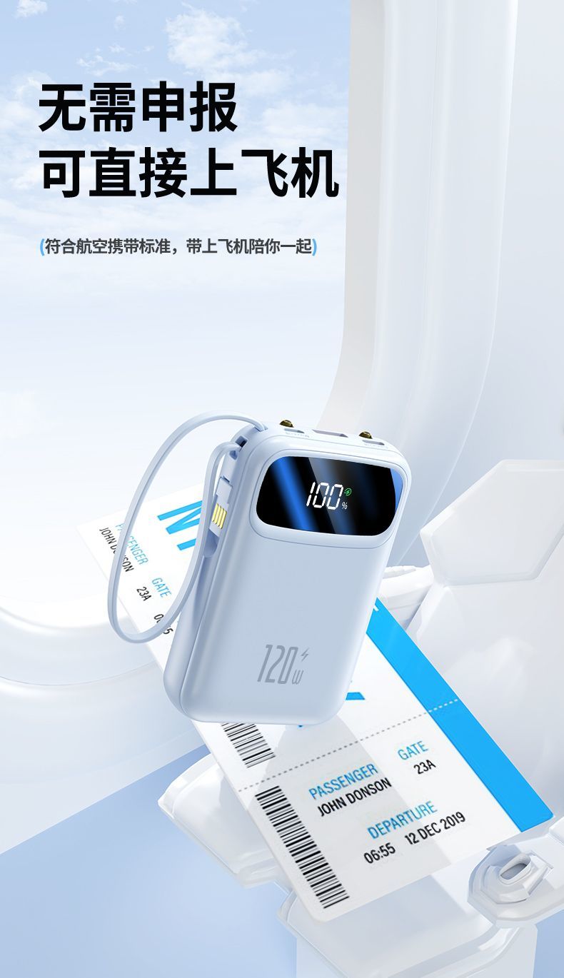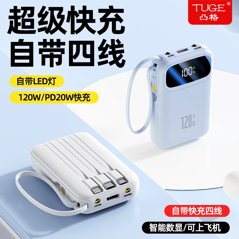 超级快充120W充电宝20000毫安自带线大容量适用苹果华为移动电源