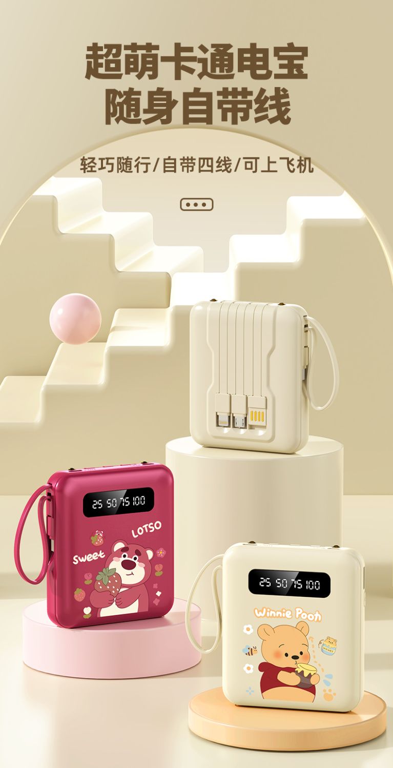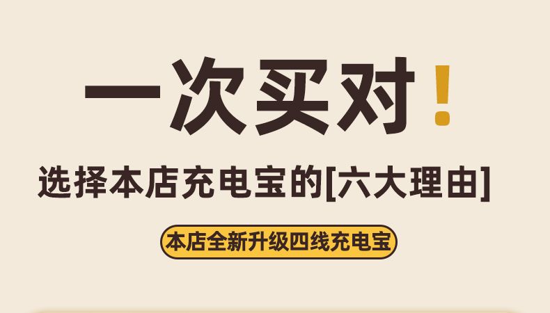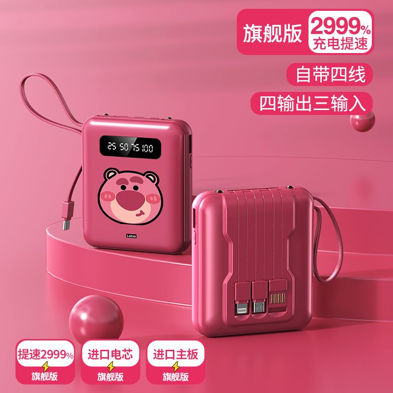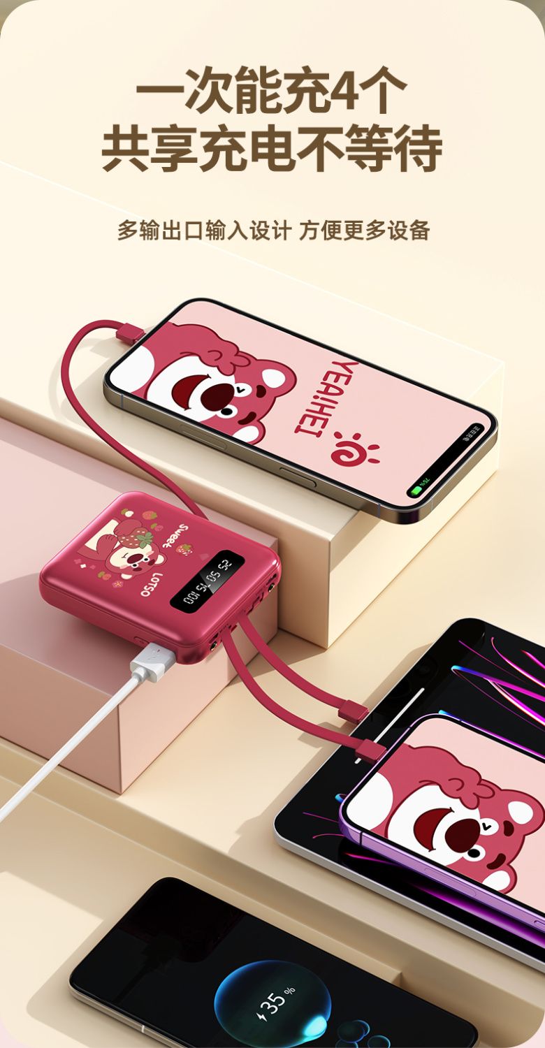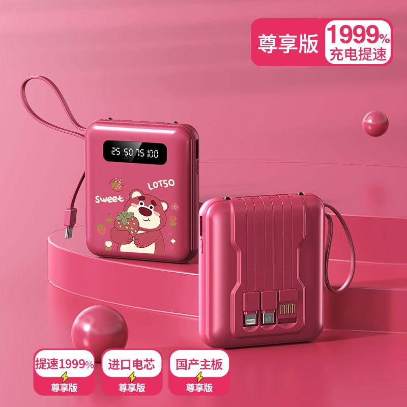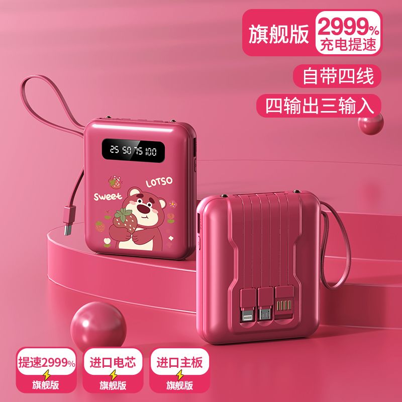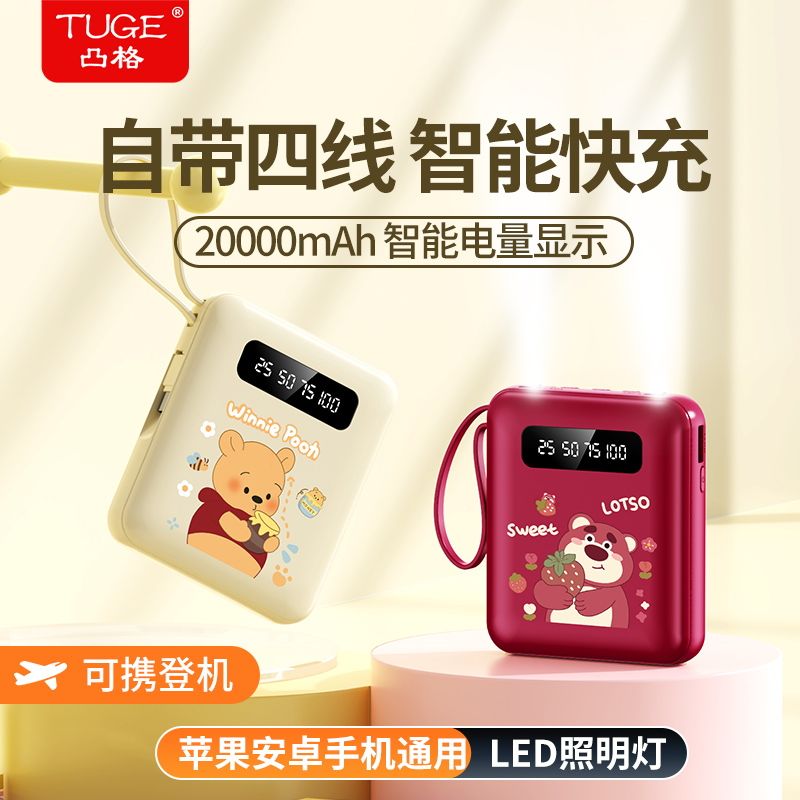 快充自带4线充电宝20000毫安大容量小巧适用苹果安卓小米华为手机