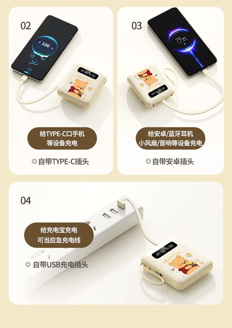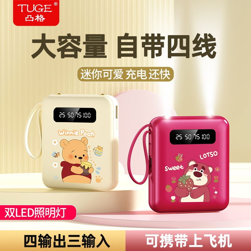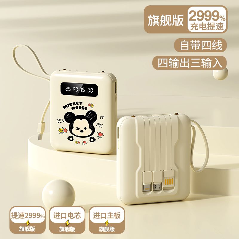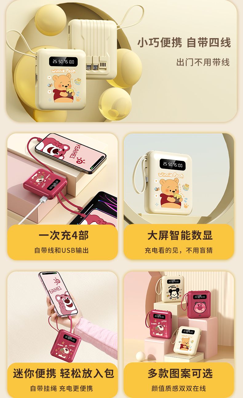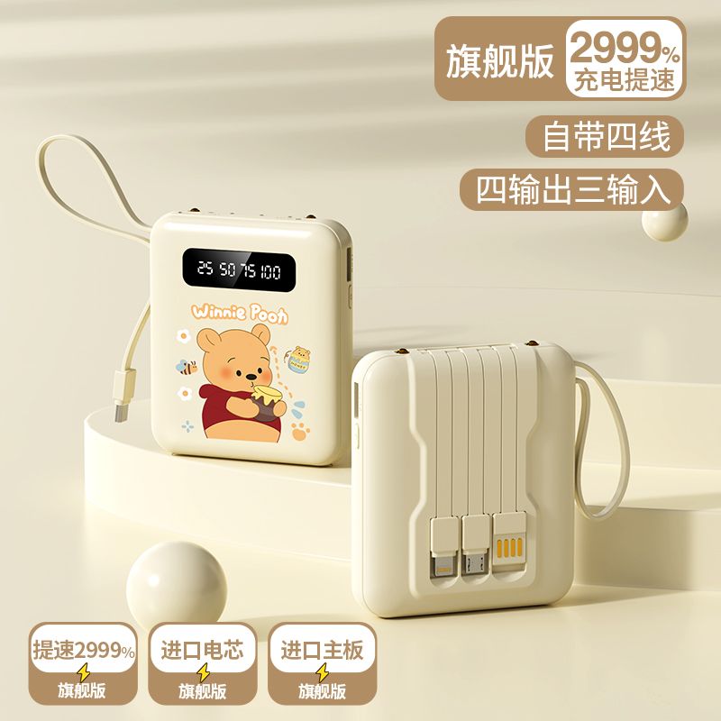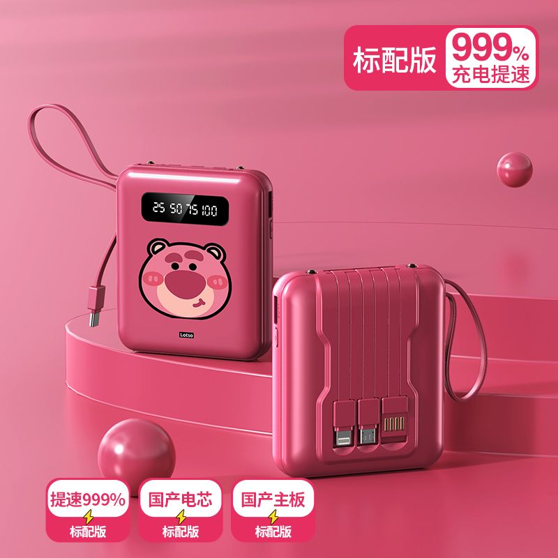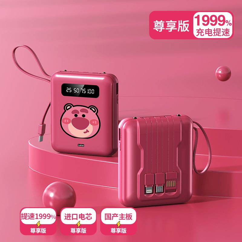 快充自带4线充电宝20000毫安大容量小巧适用苹果安卓小米华为手机