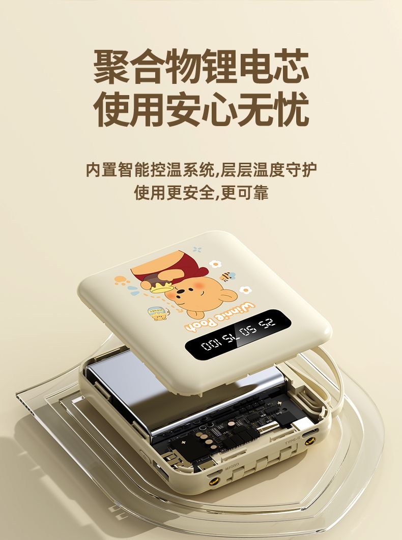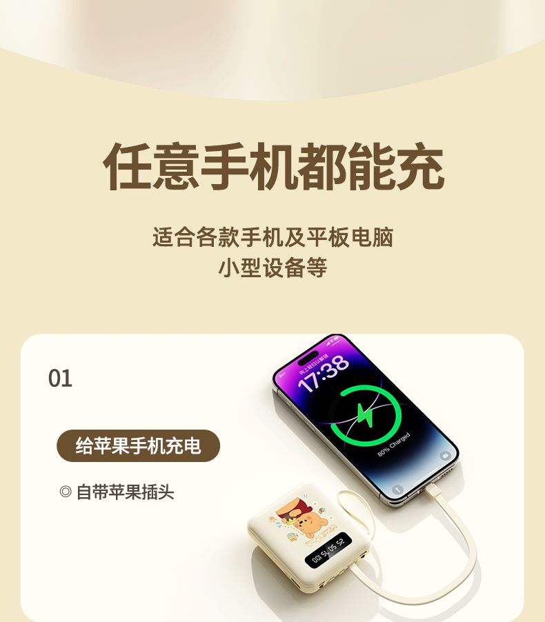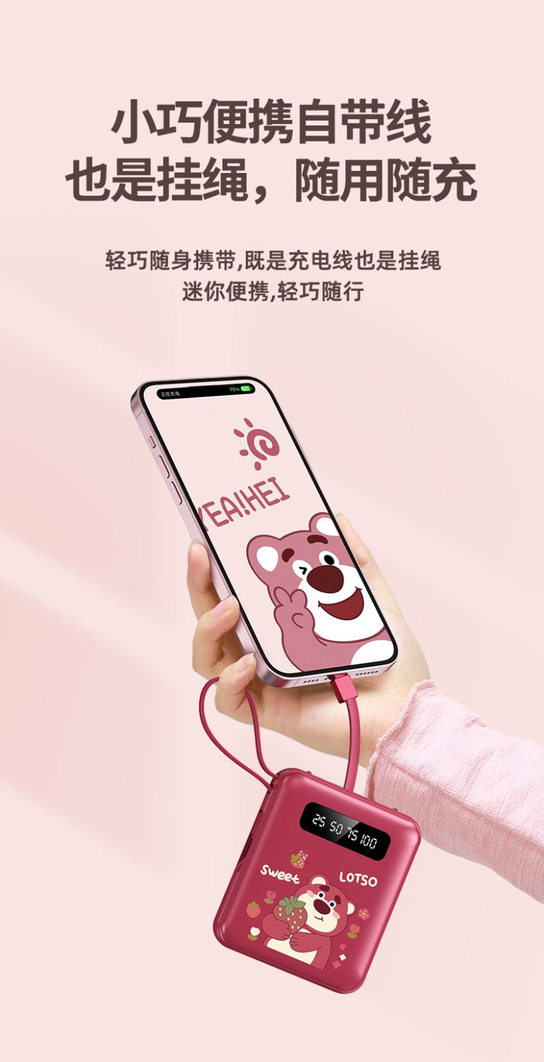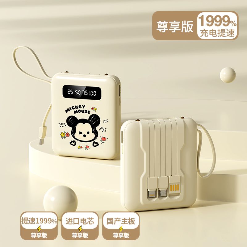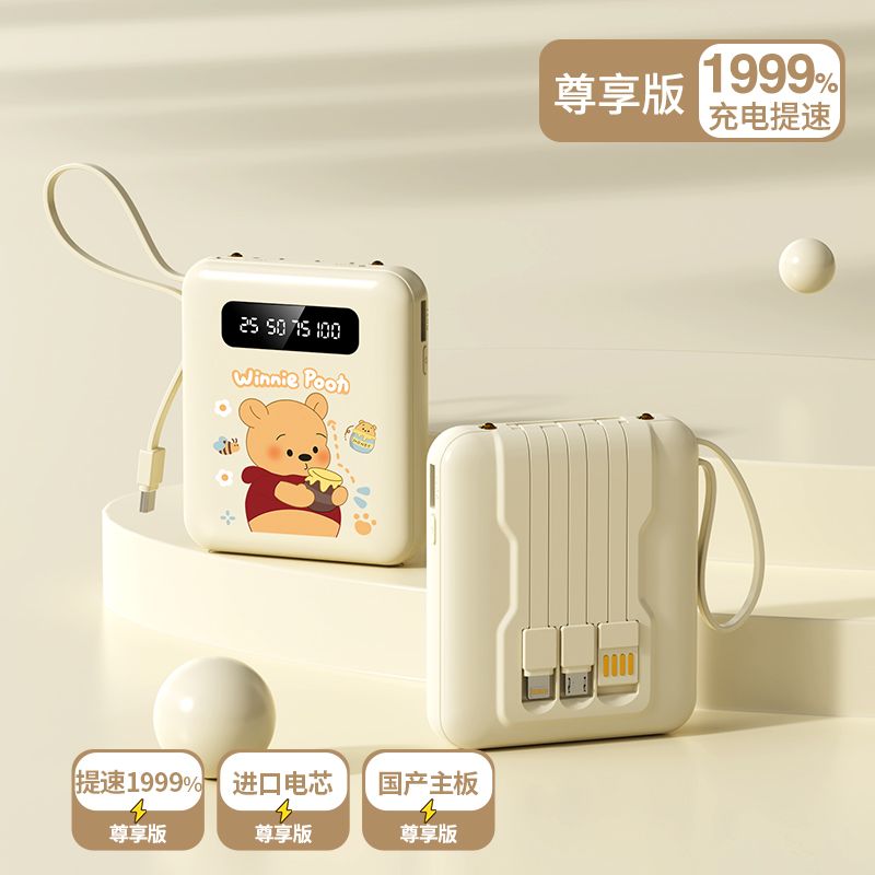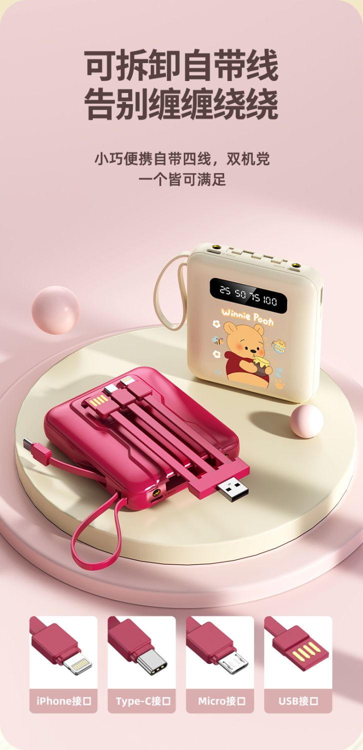 快充自带4线充电宝20000毫安大容量小巧适用苹果安卓小米华为手机