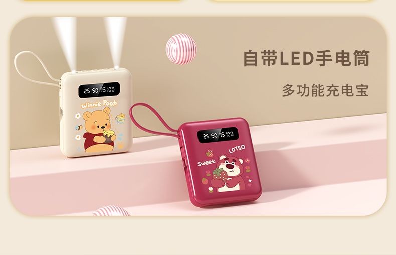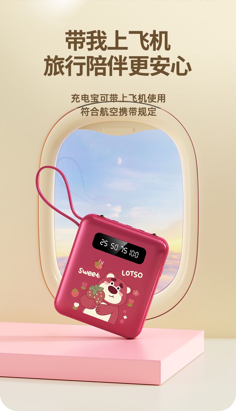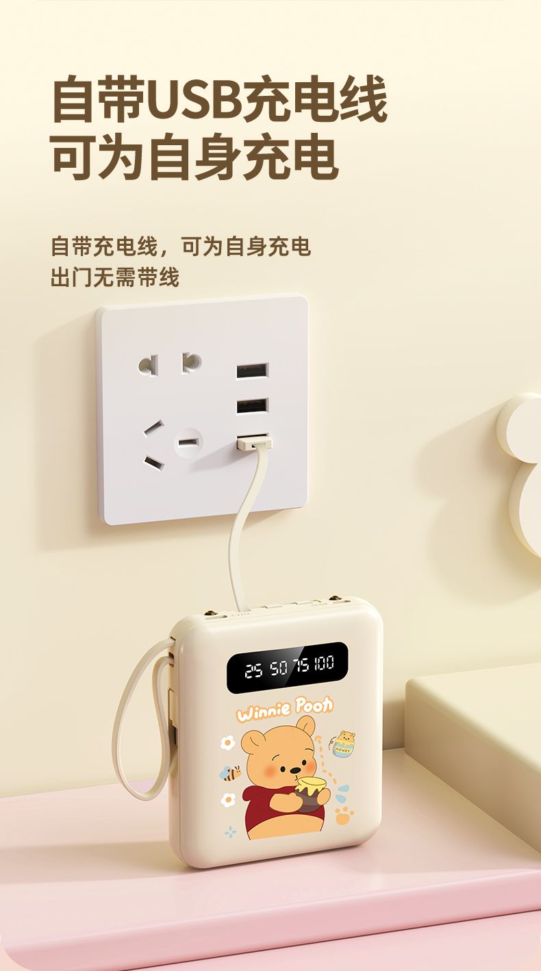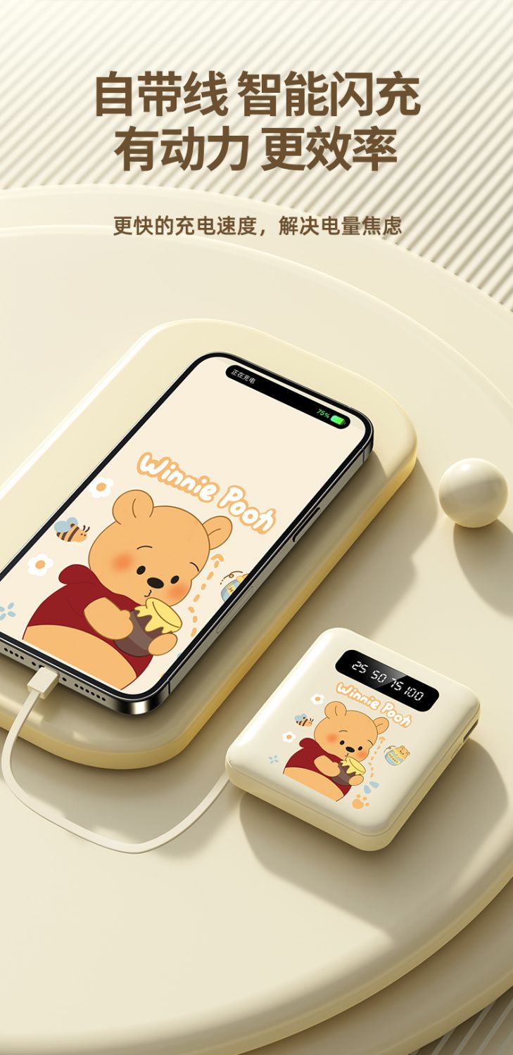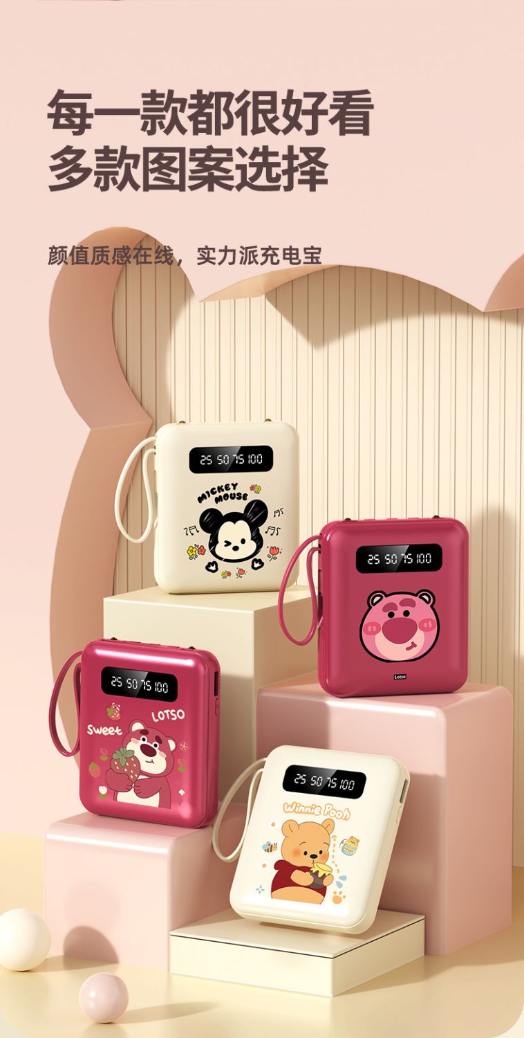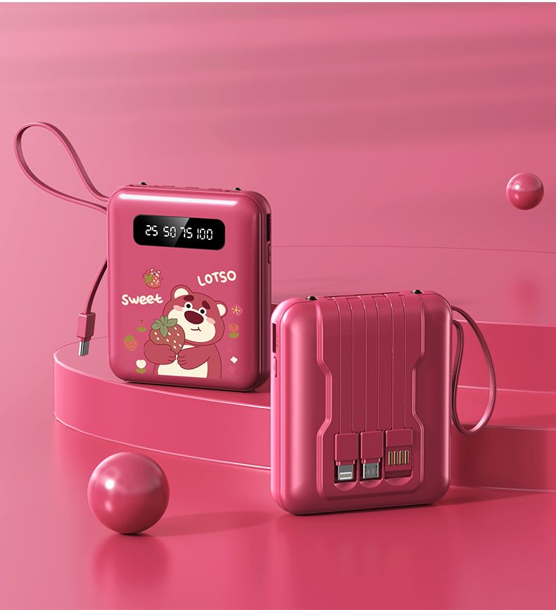 快充自带4线充电宝20000毫安大容量小巧适用苹果安卓小米华为手机