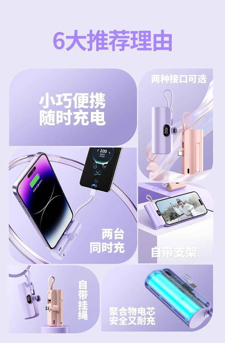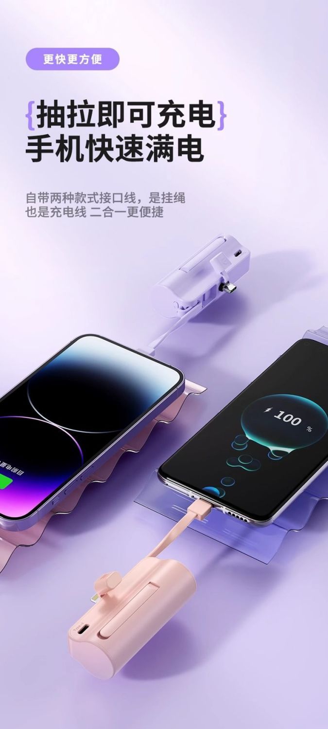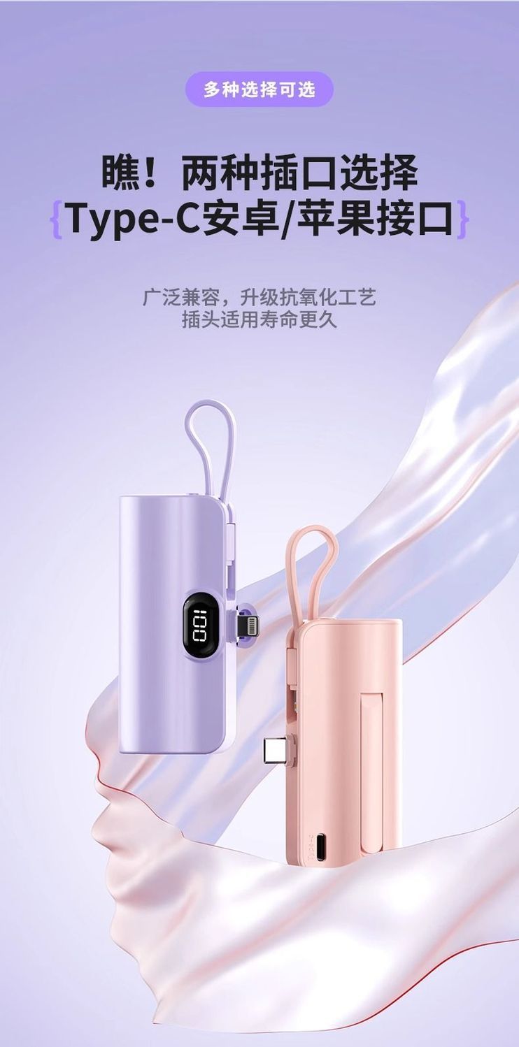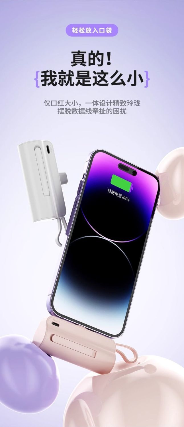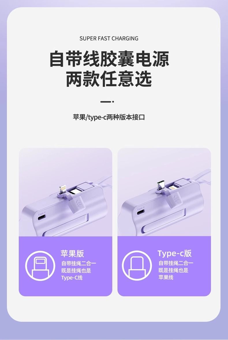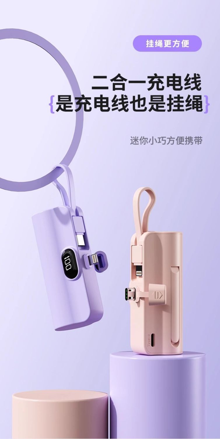 自带线胶囊充电宝便携迷你20000毫安适用于平果安卓手机Boso德国