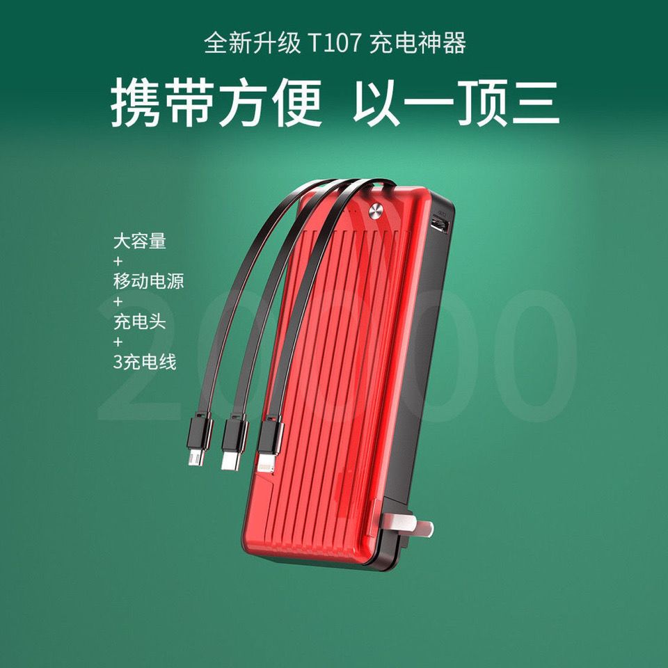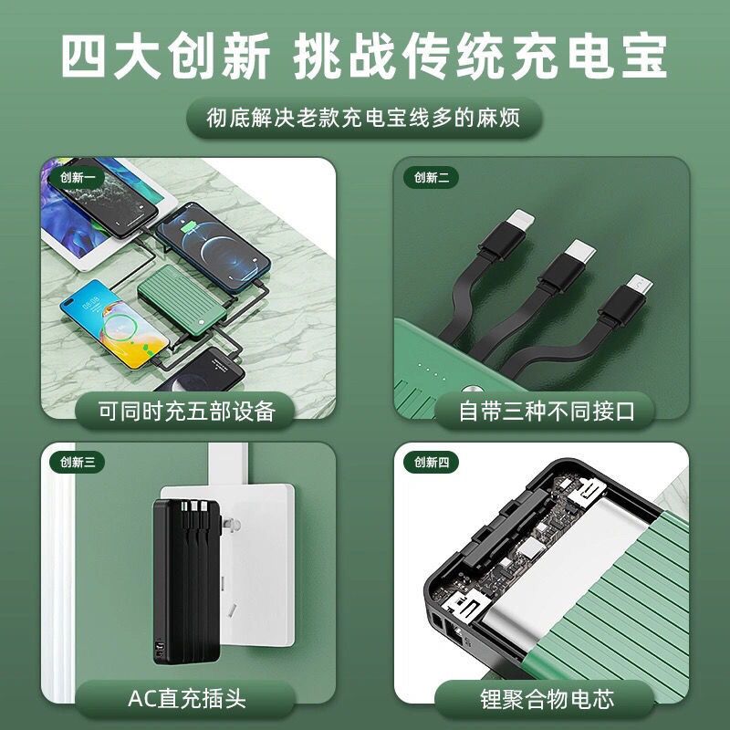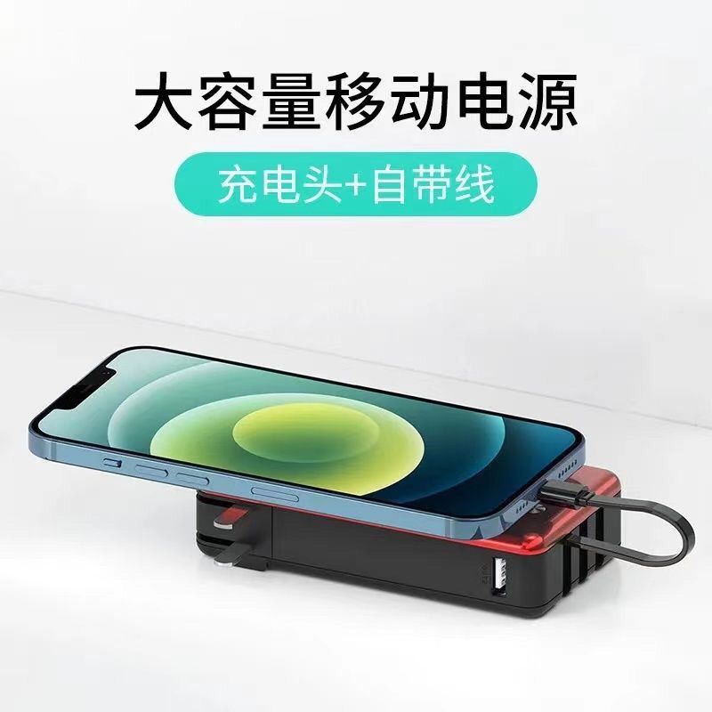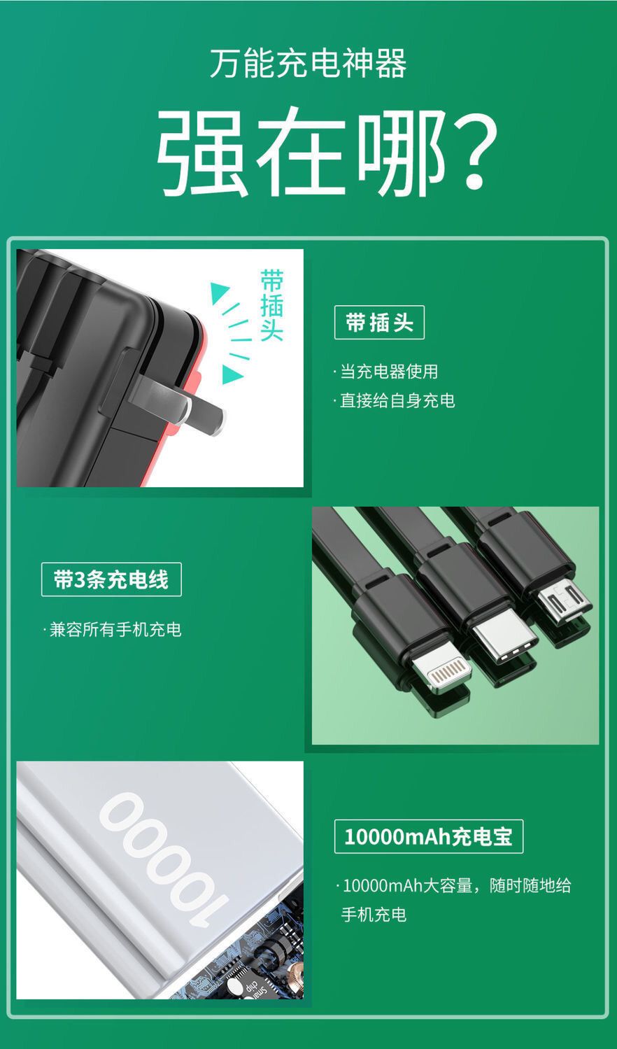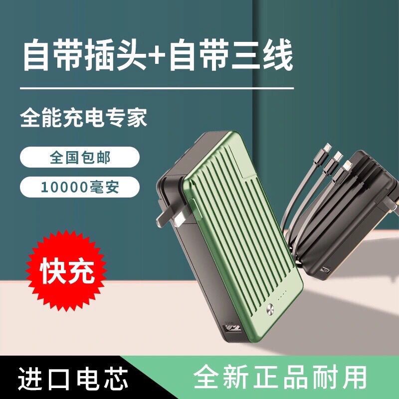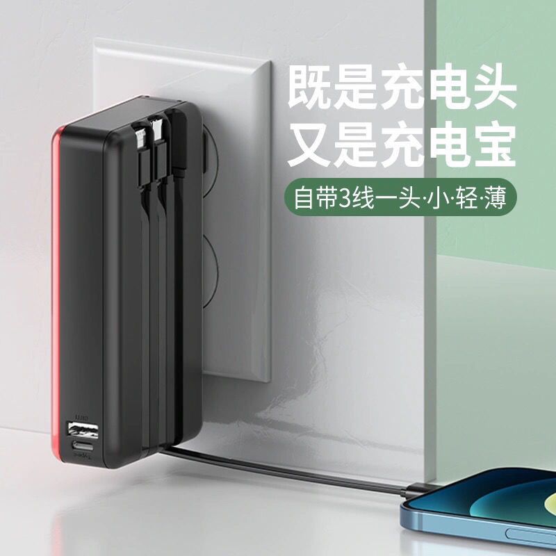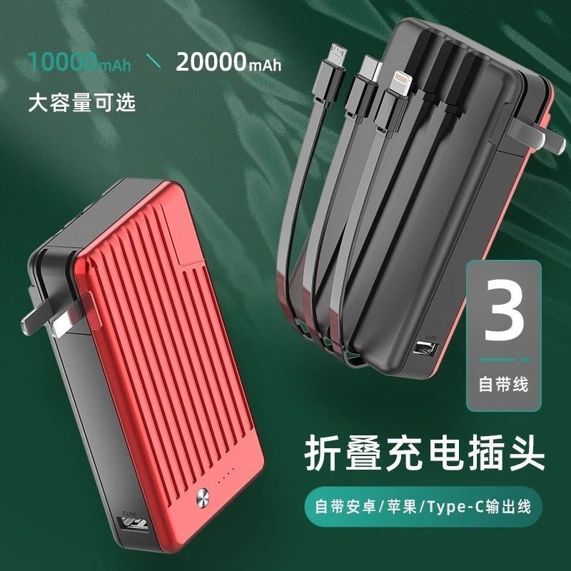 充电宝20000毫安充电插头三合一一体充电宝带线插头移动电源