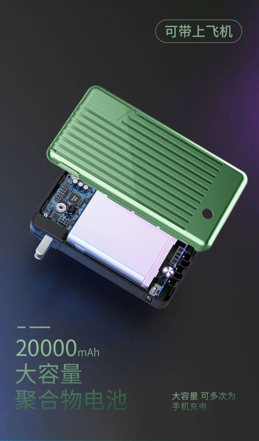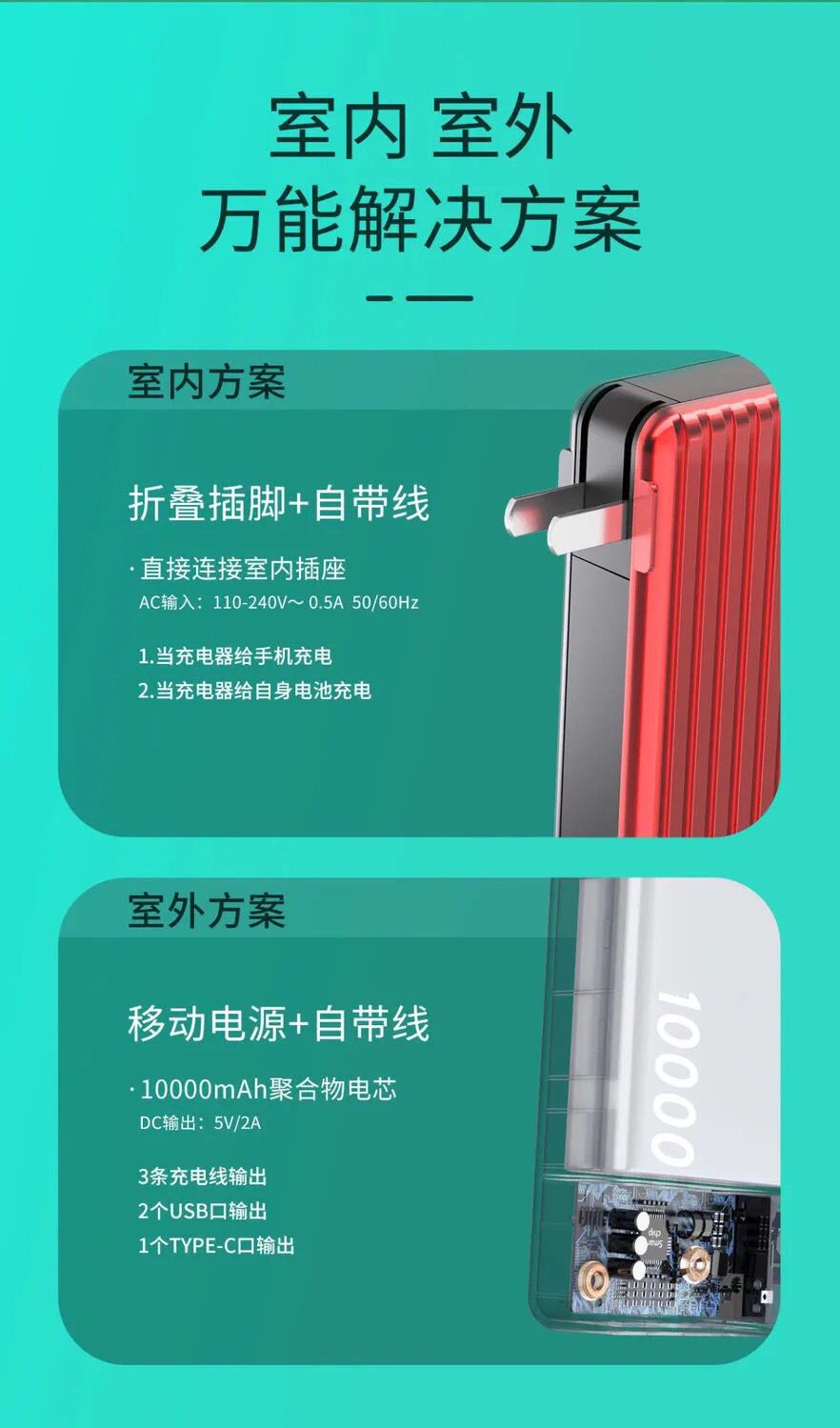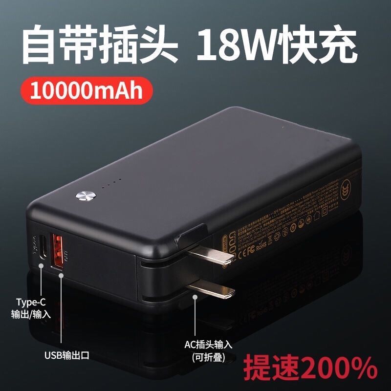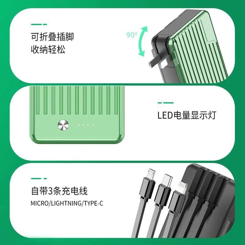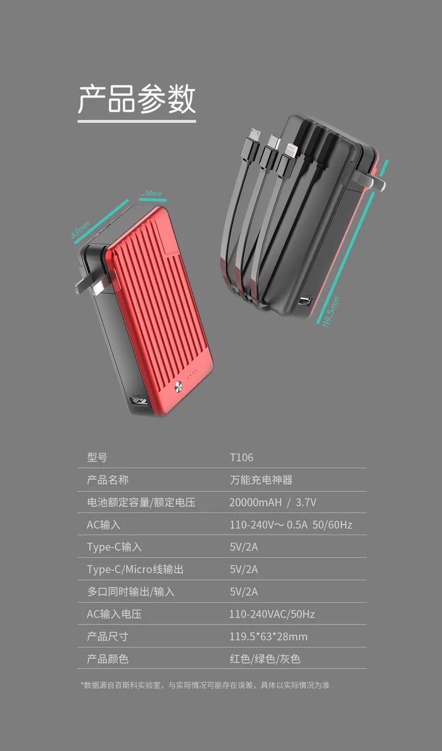 充电宝20000毫安充电插头三合一一体充电宝带线插头移动电源