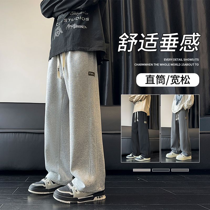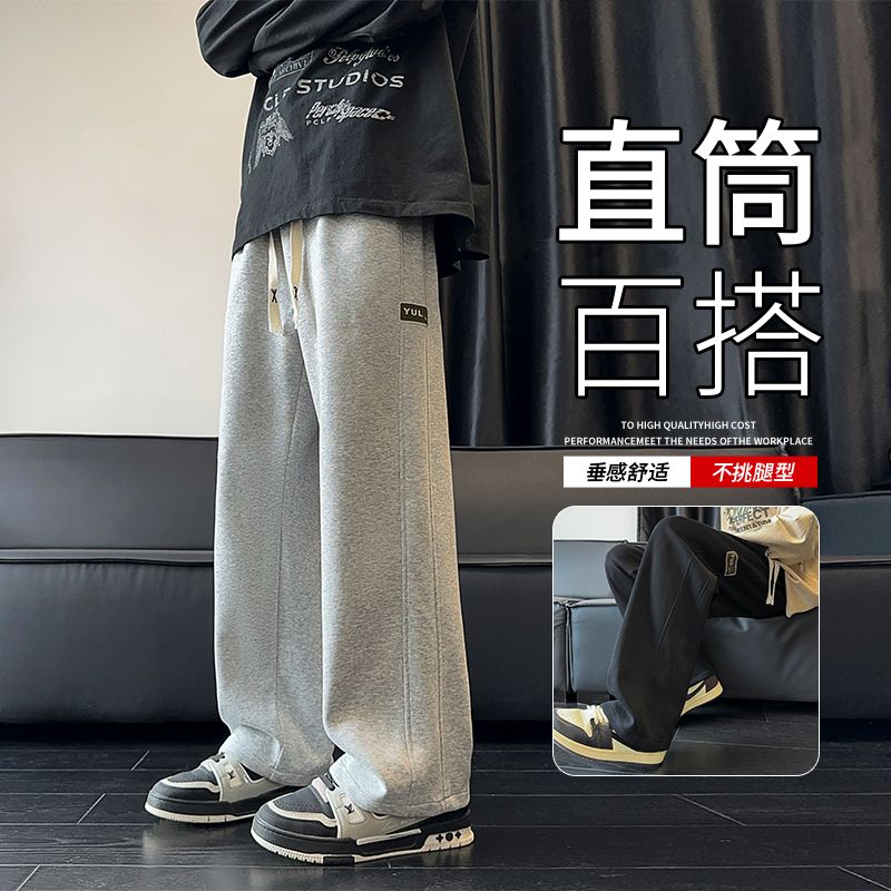 男士休闲裤子夏季新款潮流阔腿裤男生百搭宽松垂感运动裤直筒长裤