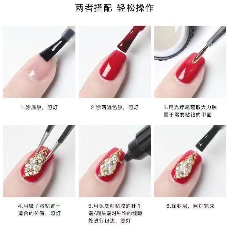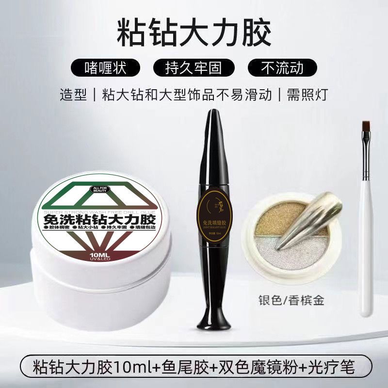 美甲粘钻胶饰品胶水指甲延长胶套装光疗钻石胶加固专用模型胶免洗