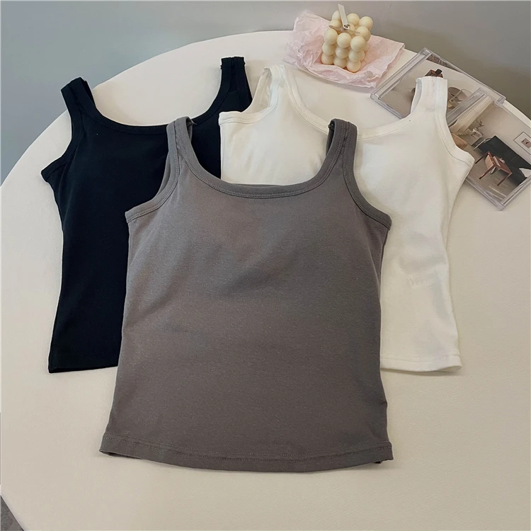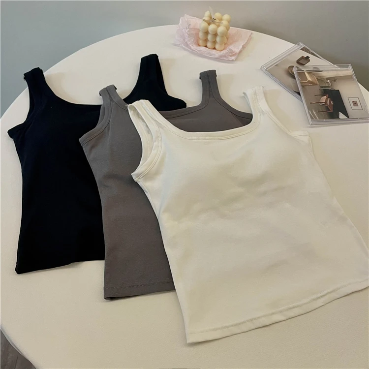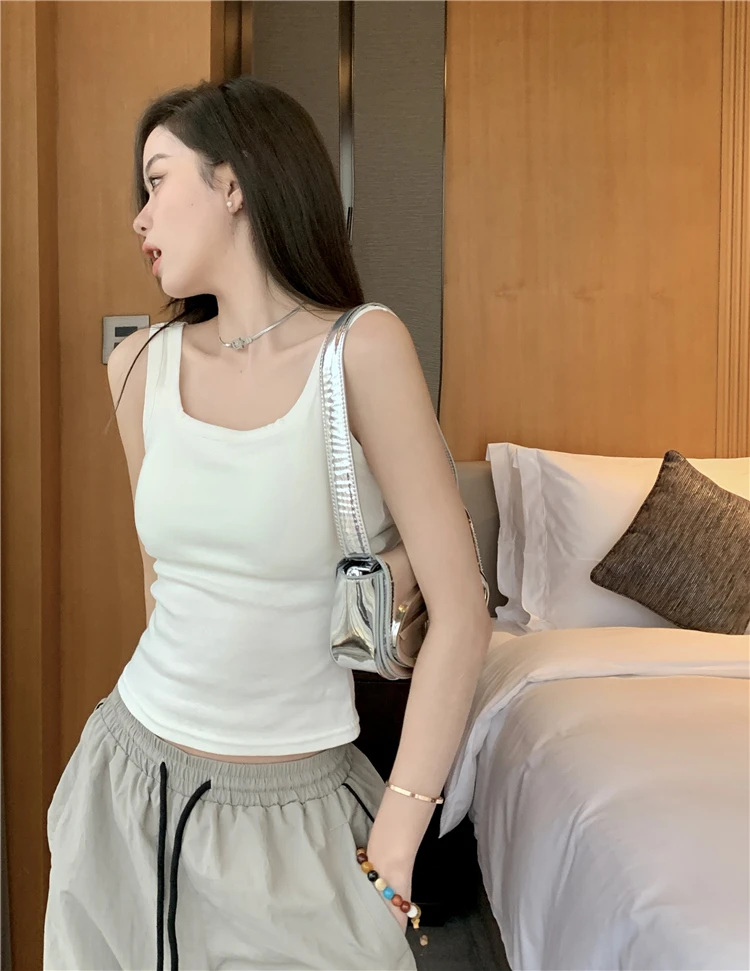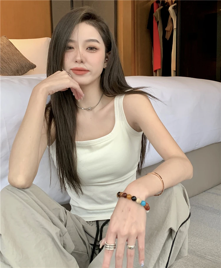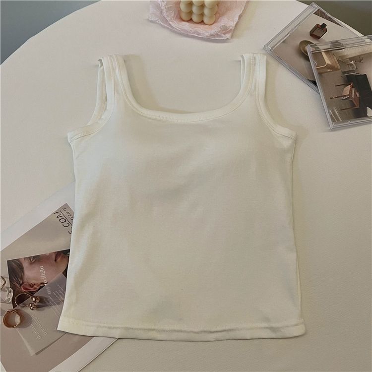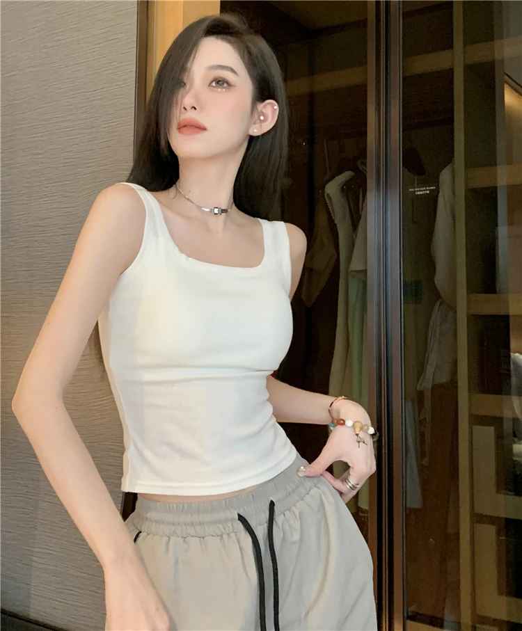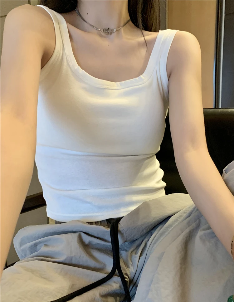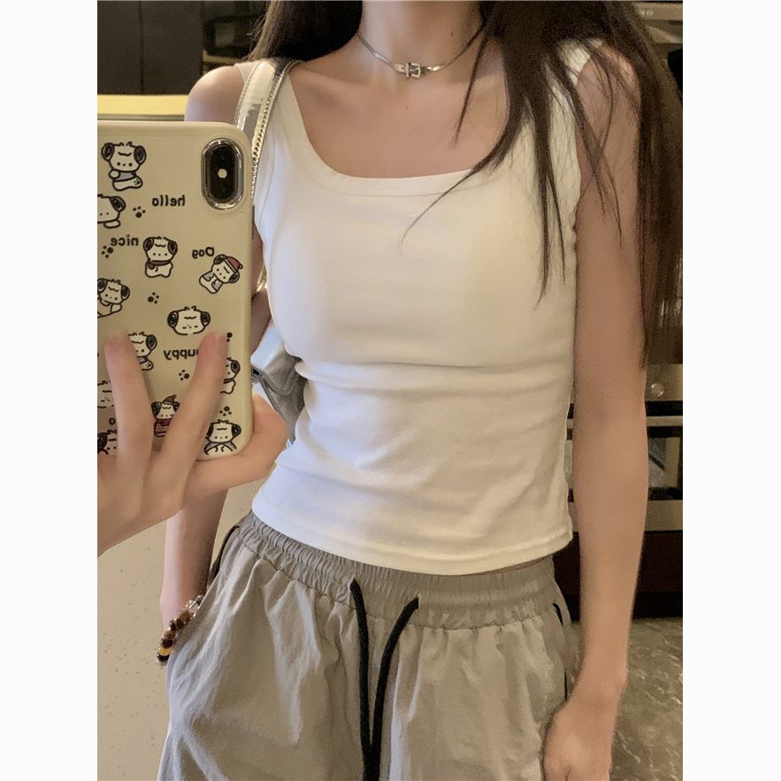 简约白色吊带背心女带胸垫一体修身纯色内搭外穿打底短款抹胸上衣