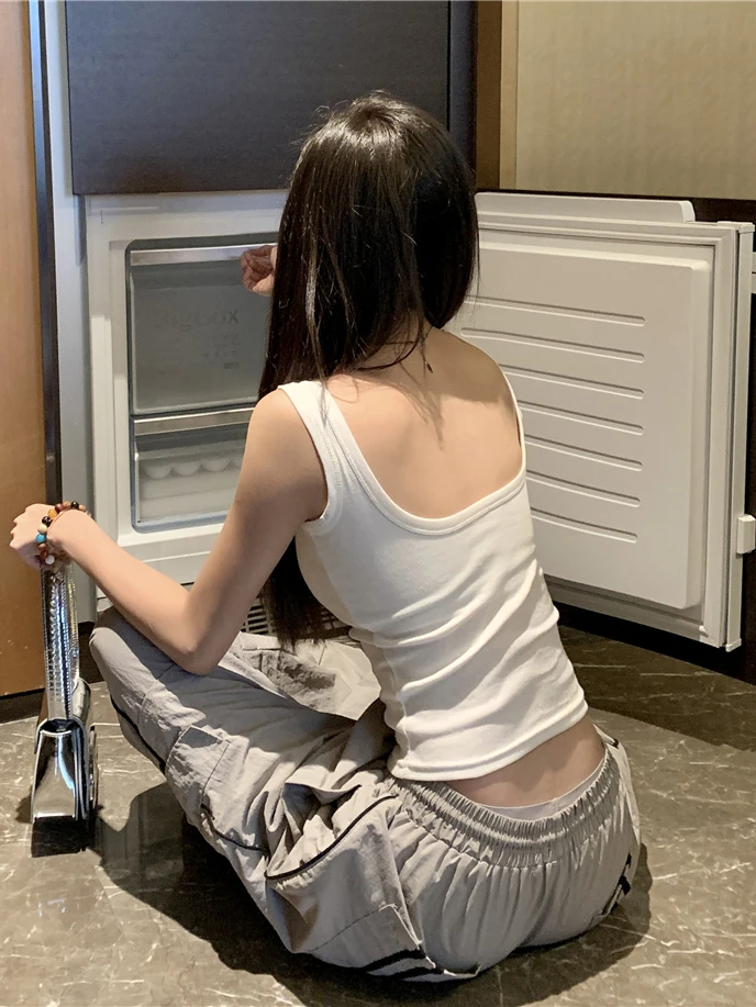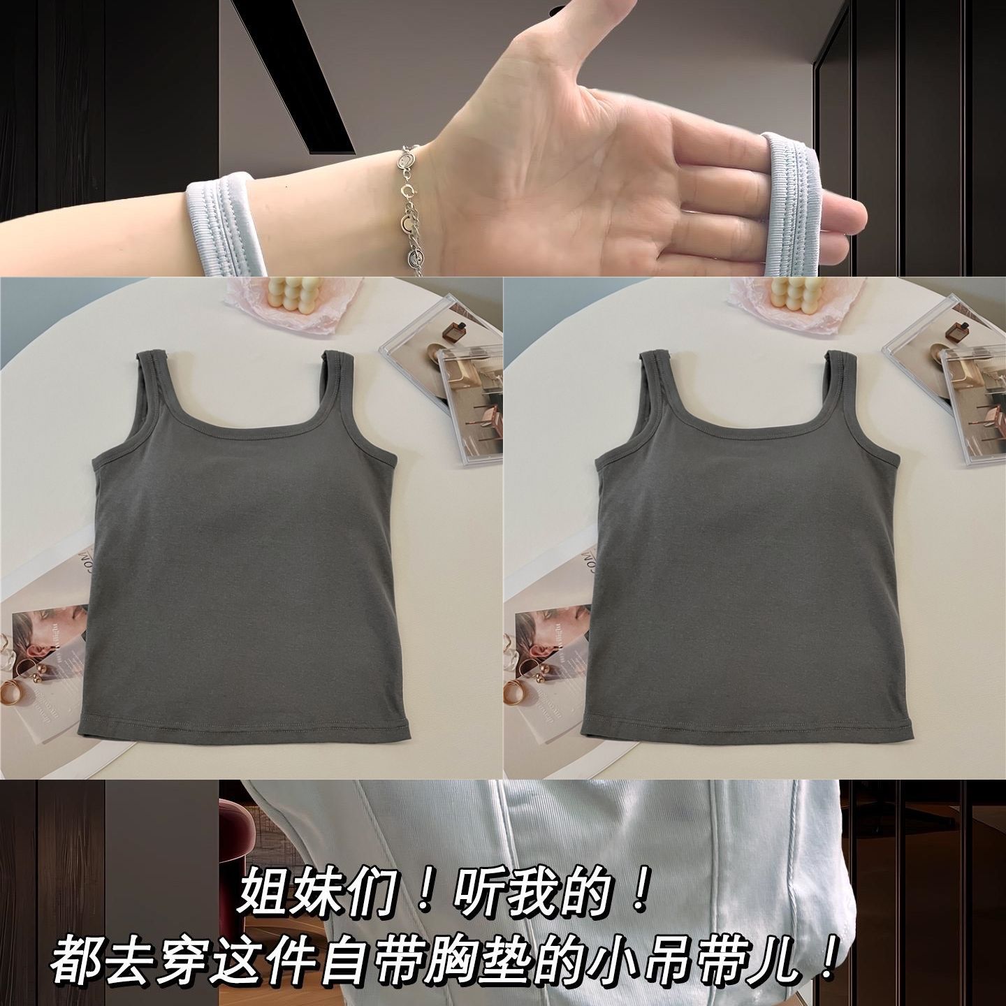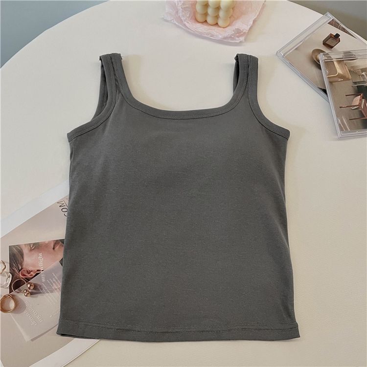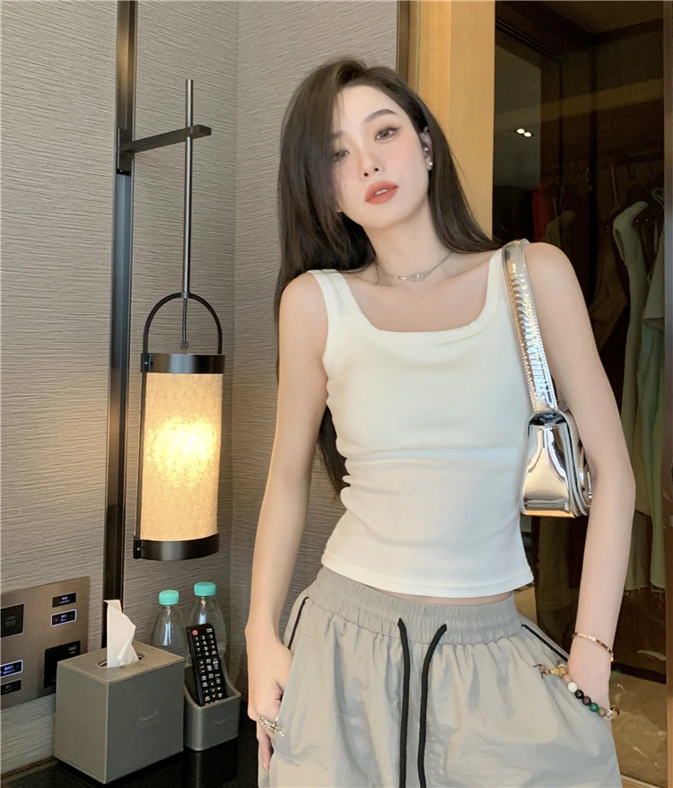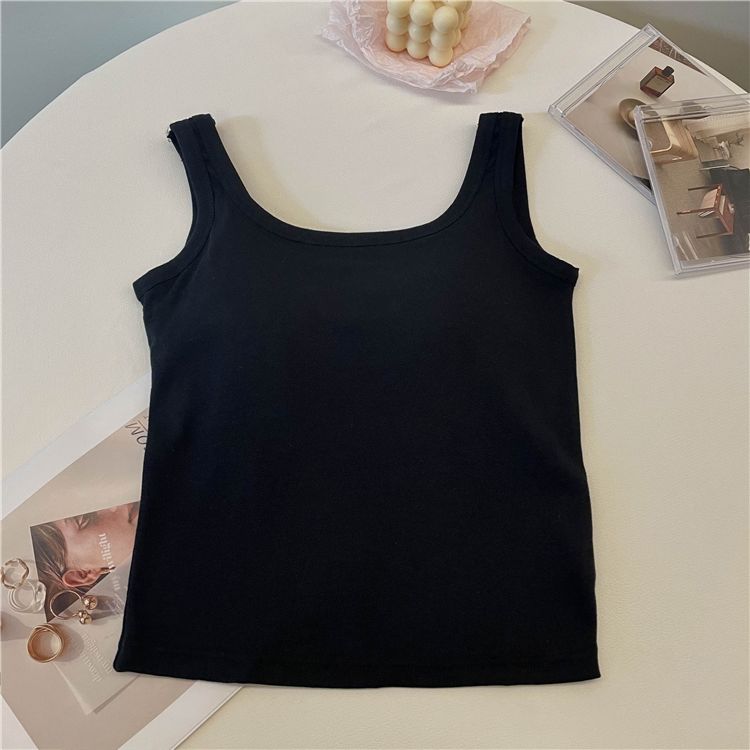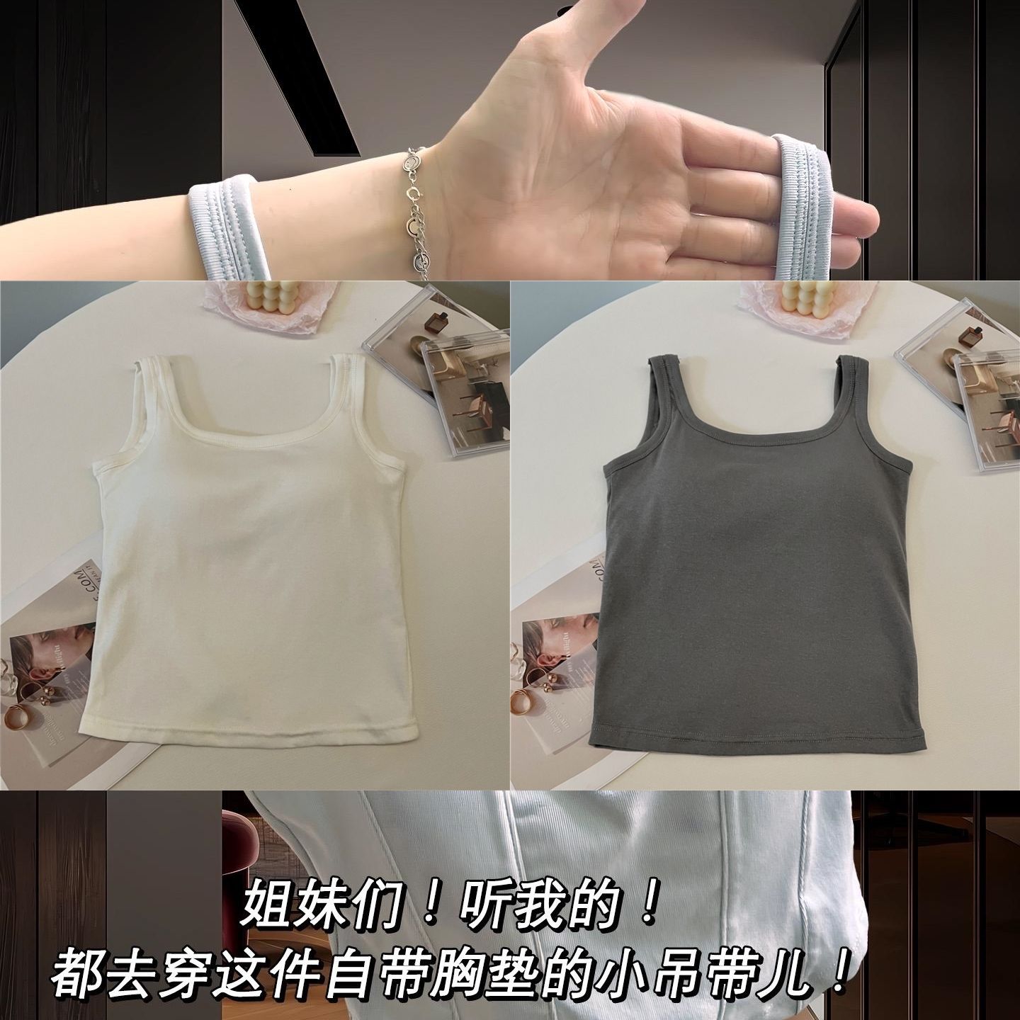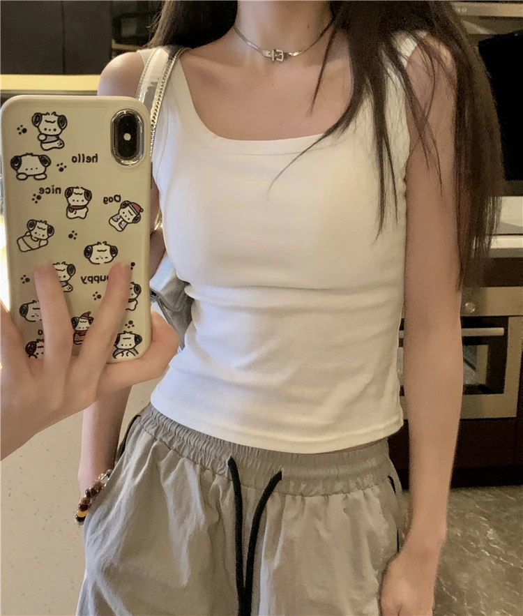 简约白色吊带背心女带胸垫一体修身纯色内搭外穿打底短款抹胸上衣