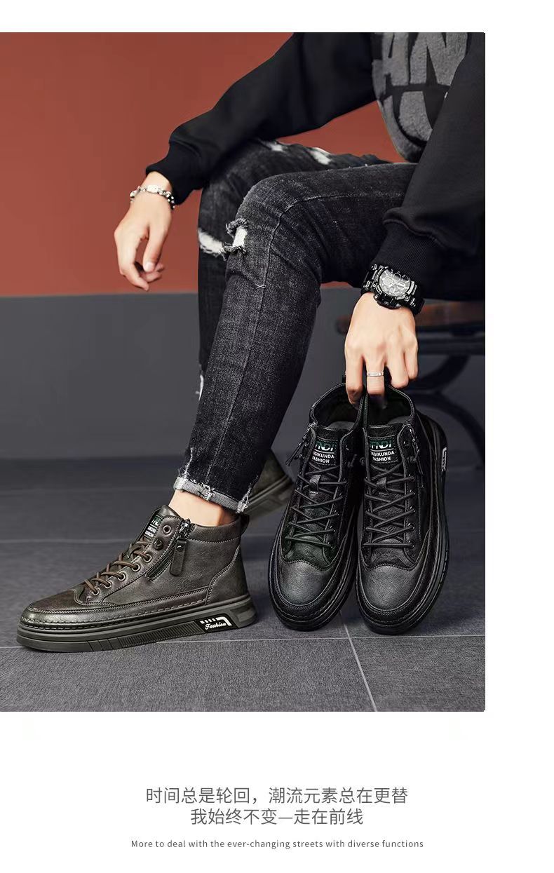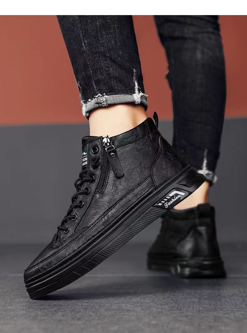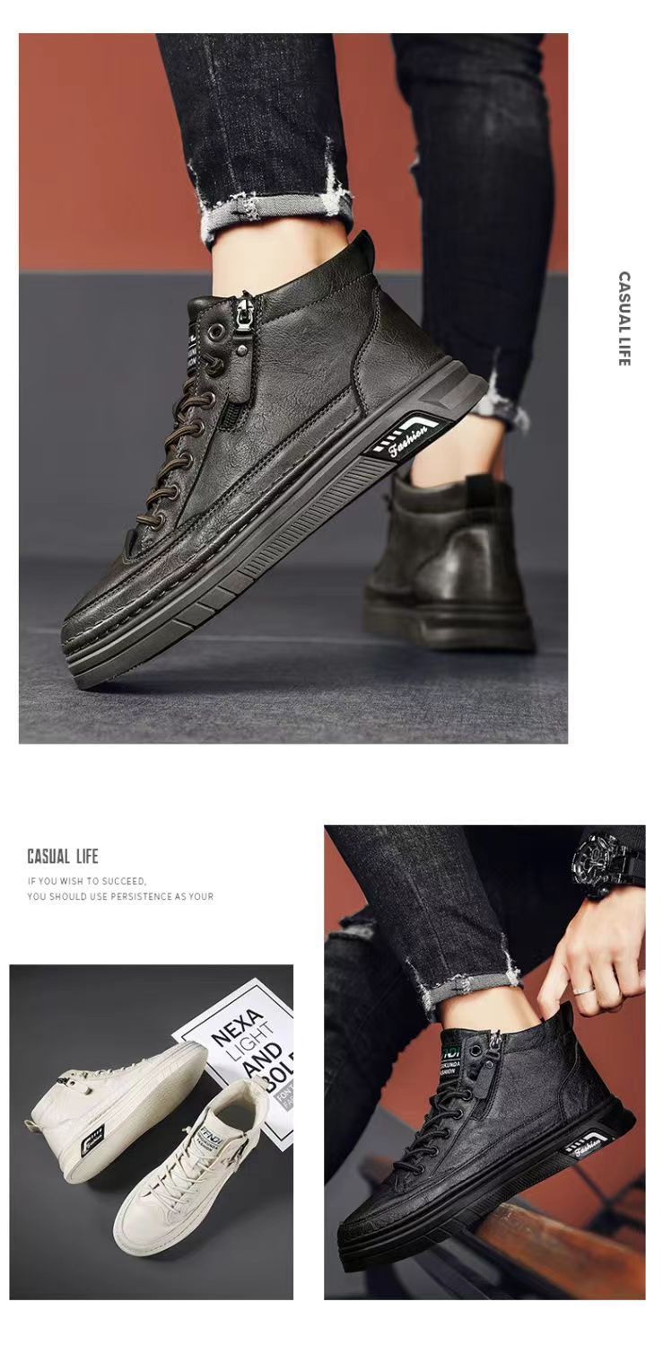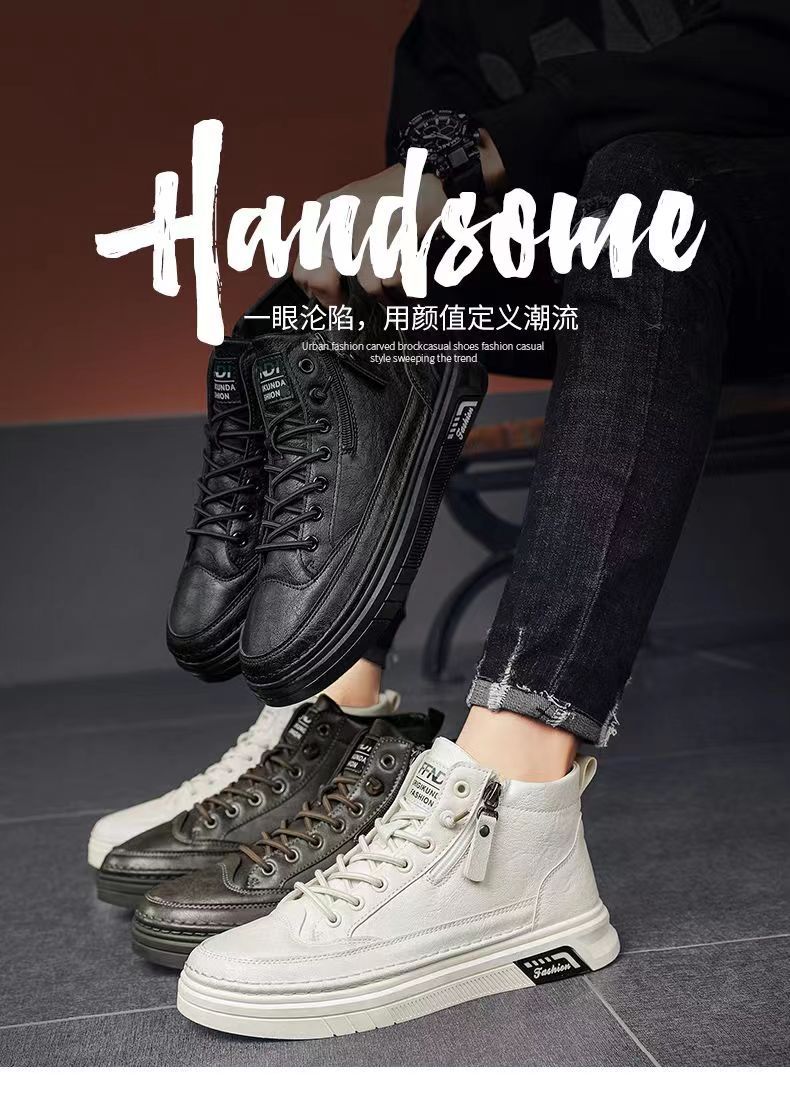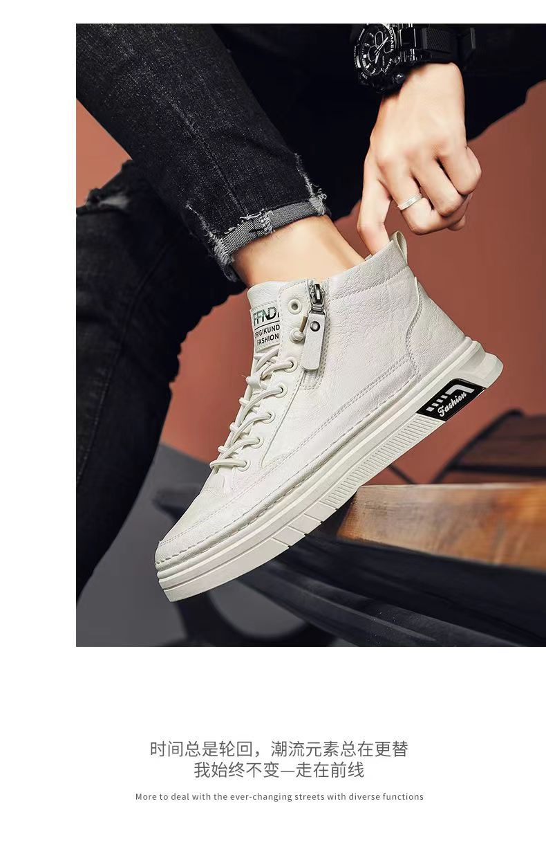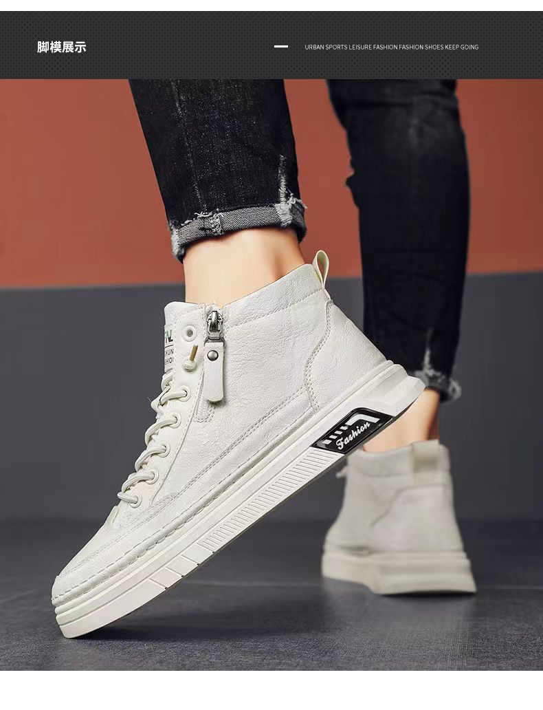 秋季男鞋2025新款英伦风高帮休闲皮鞋潮流百搭运动板鞋时尚小白鞋