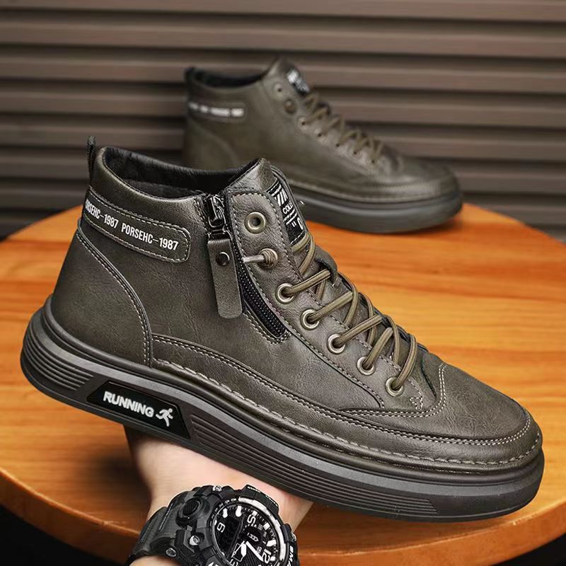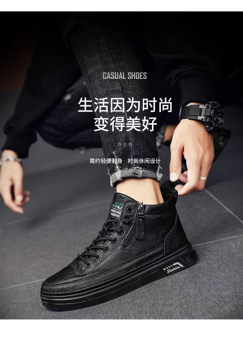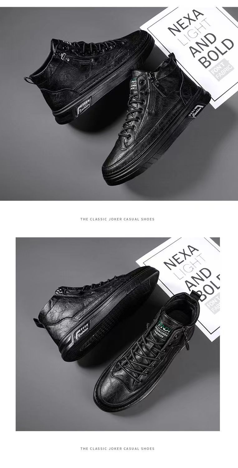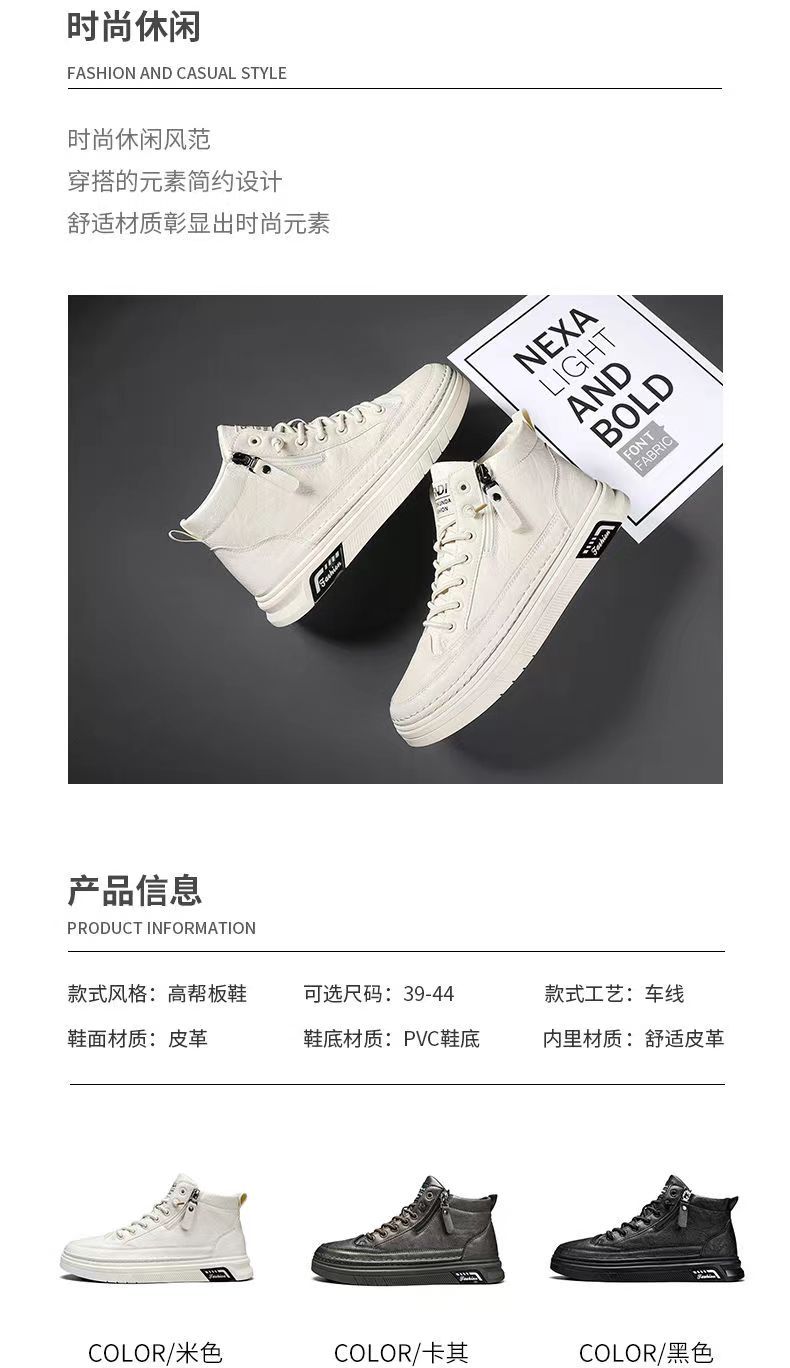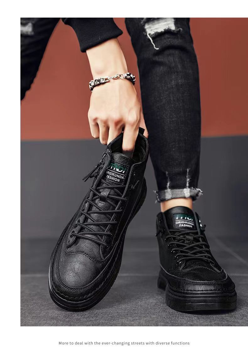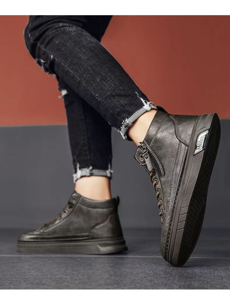 秋季男鞋2025新款英伦风高帮休闲皮鞋潮流百搭运动板鞋时尚小白鞋